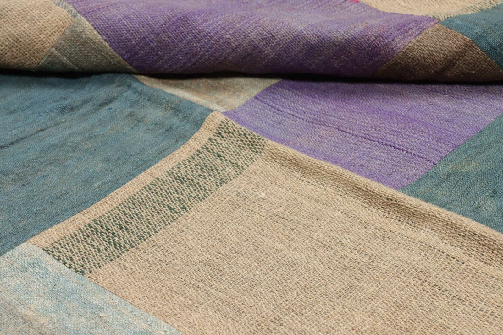Patchwork Teppich aus Schurwolle, handgeknüpft
