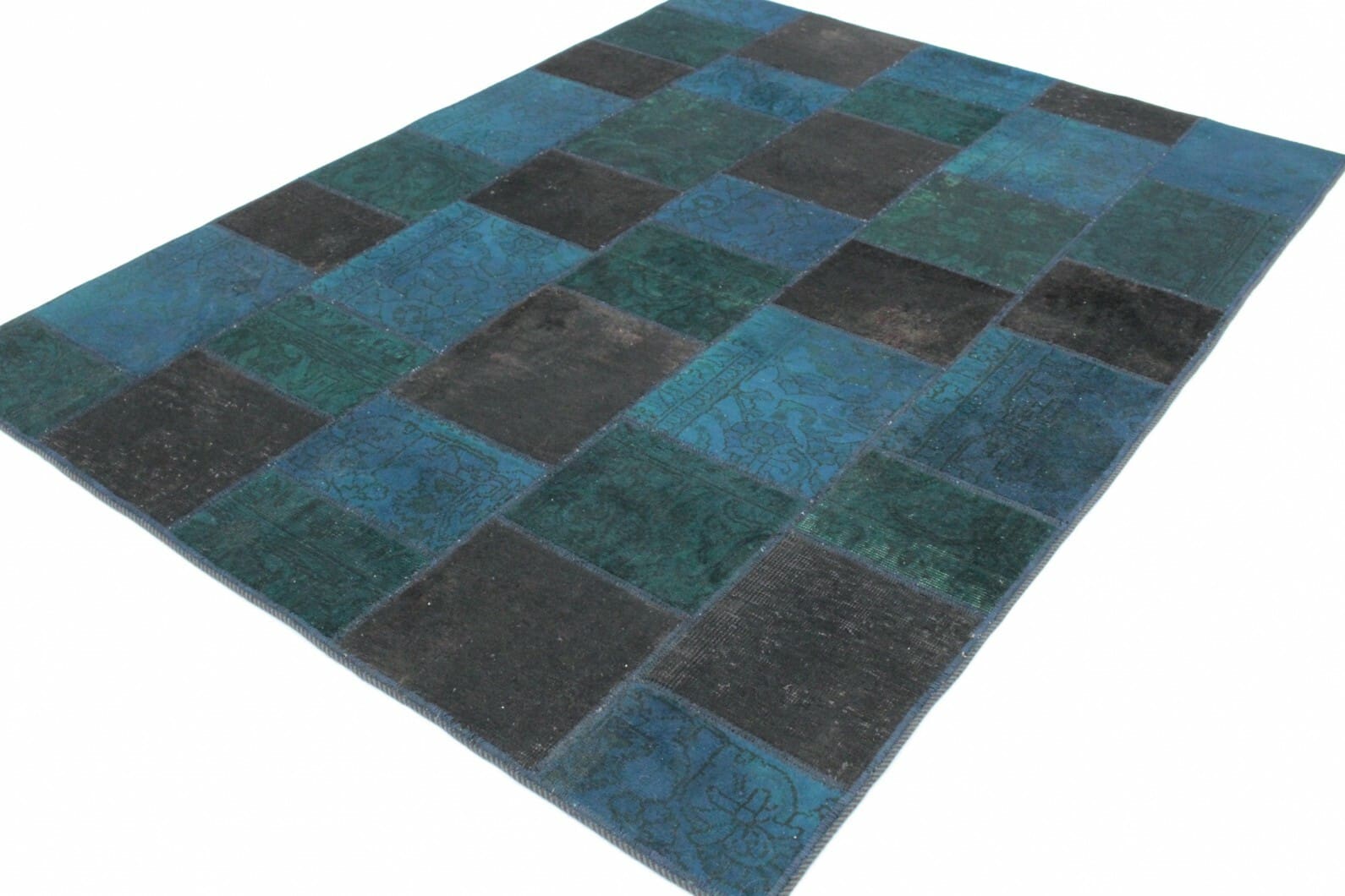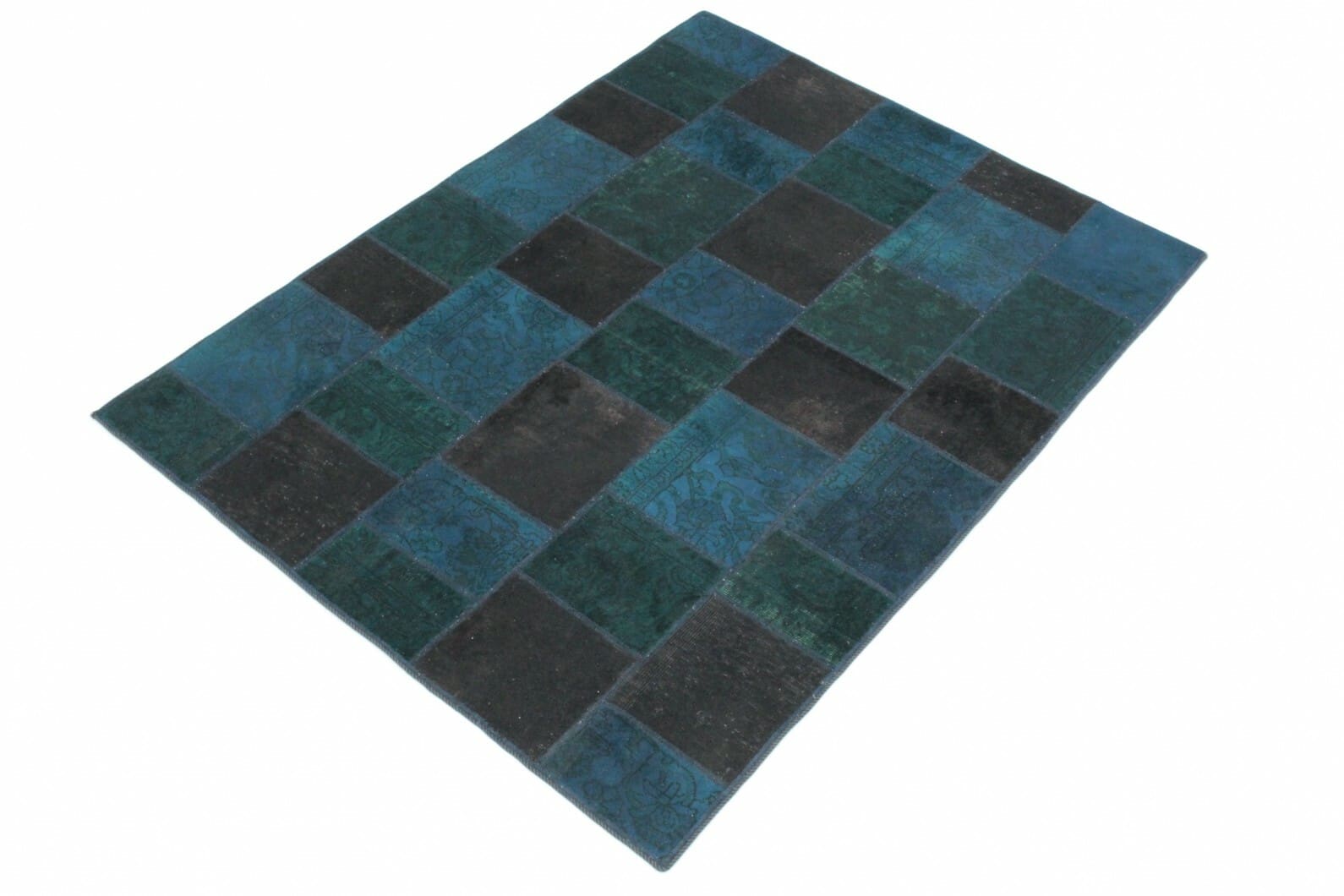 Patchwork Teppich Blau Türkis Braun – handgeknüpft