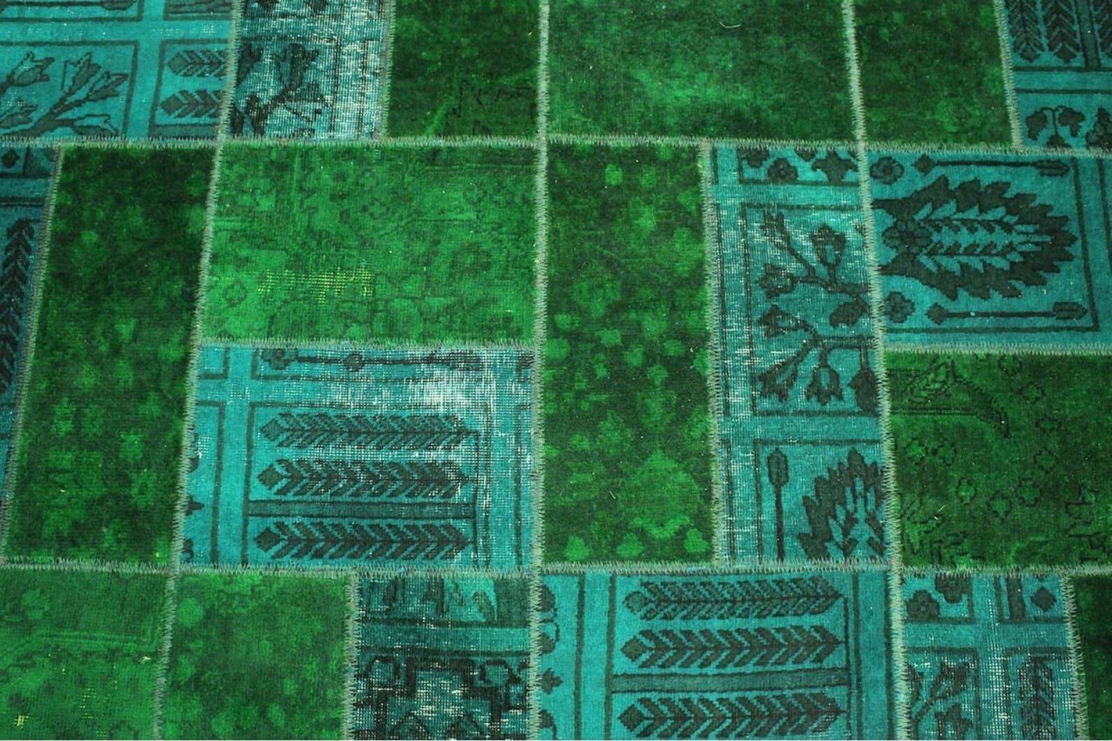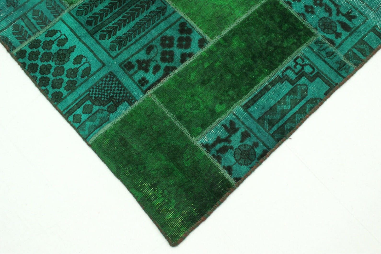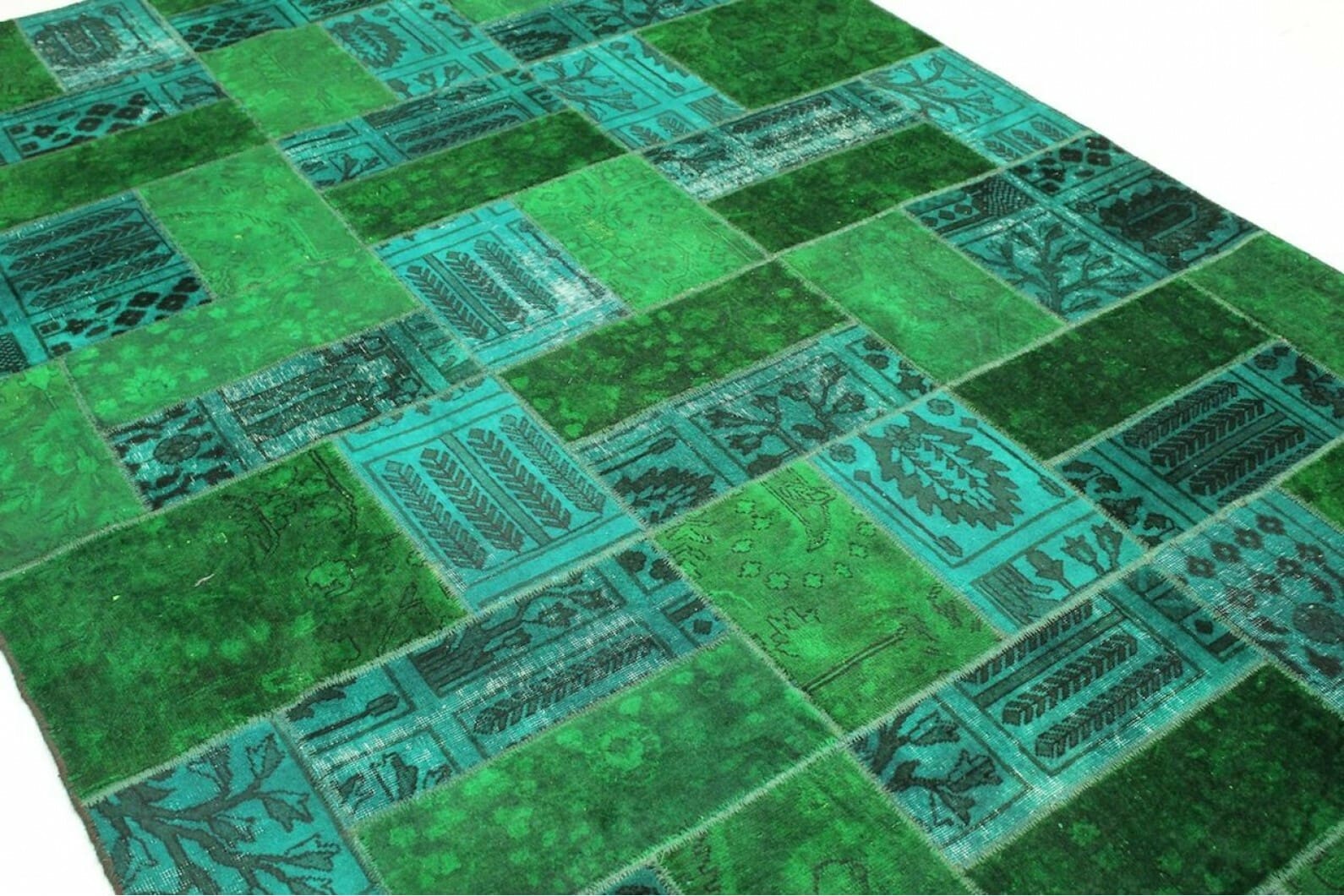Patchwork Teppich Grün Türkis – Handgeknüpft Orientteppich