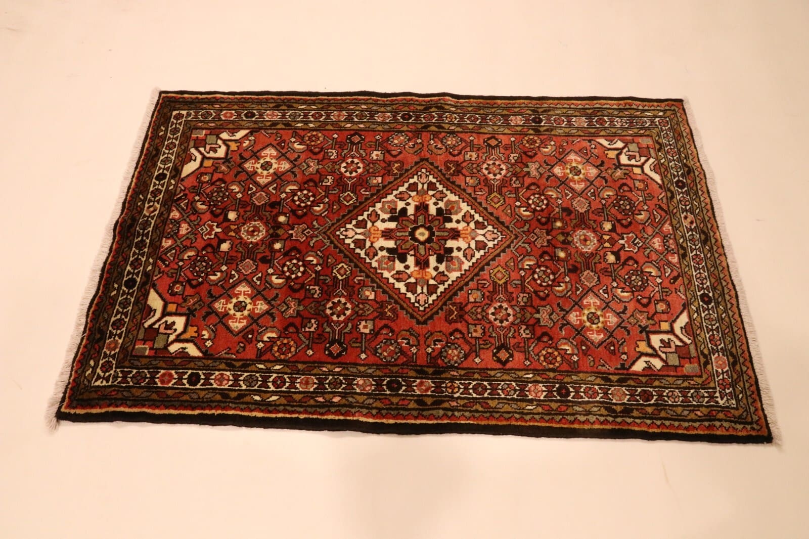 Handgeknüpfter Perser Teppich Hamadan | Knotendichte: ca. 160.000 Knoten/m² | Material: 100% Schurwolle im Flor, 100% Baumwolle in der Kette | Größe: 167 x 108 cm | Zustand: Neu und unbenutzt | Herkunft: Persien | Dicke: 8 mm | Verarbeitung: Handgeknüpft | Besonderheit: Für Fußbodenheizung geeignet | Stil: Traditionell Orientalisch/Persisch
