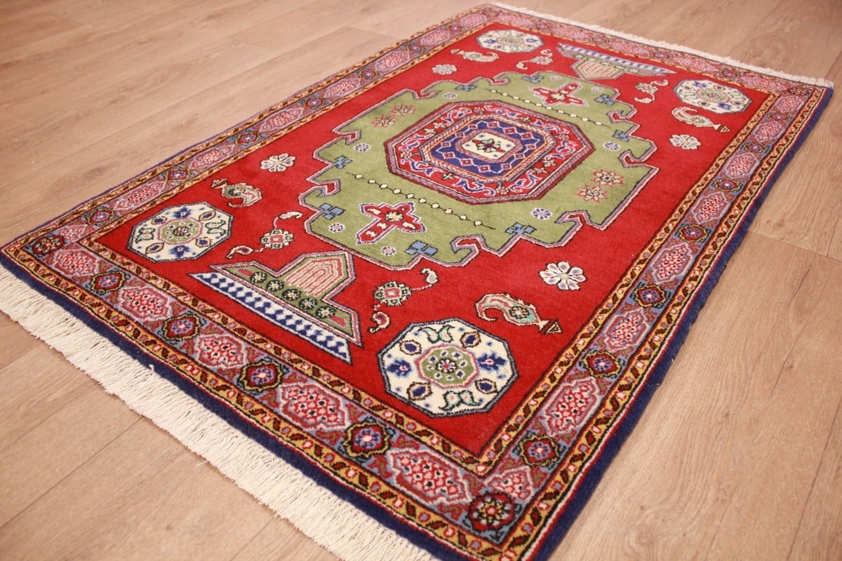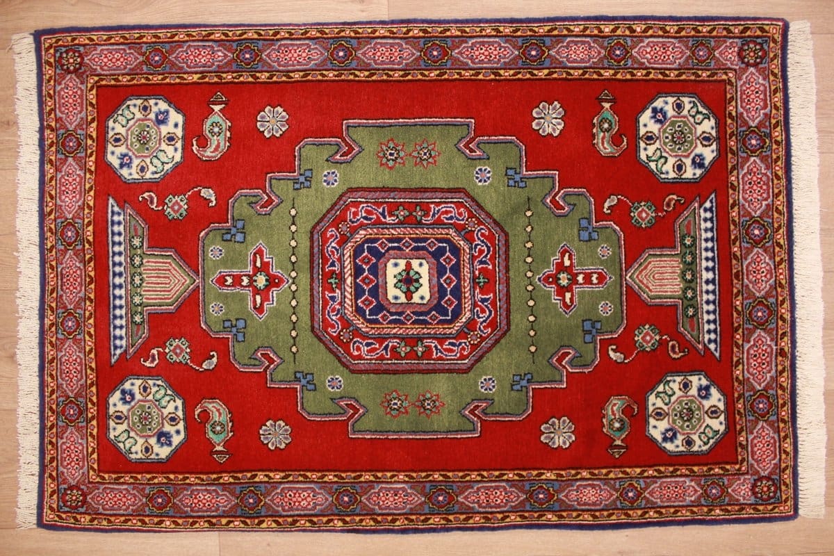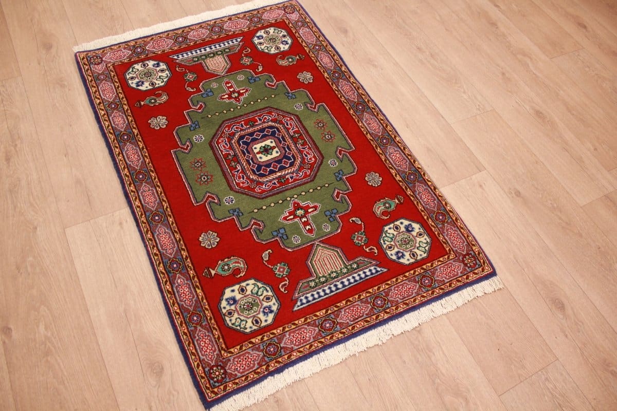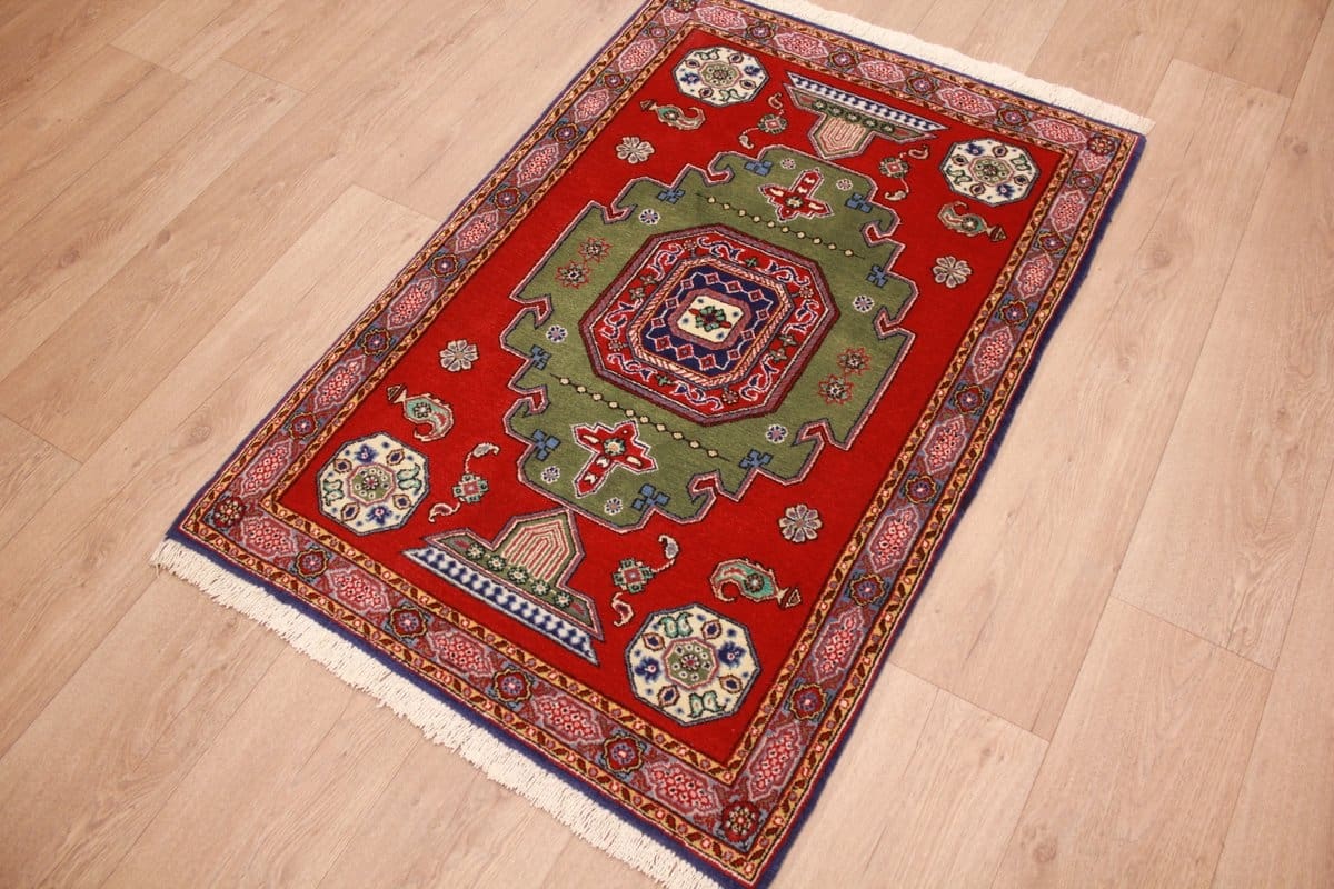 Perser Teppich Ghom 126×84 cm Rot, Wolle, handgeknüpft