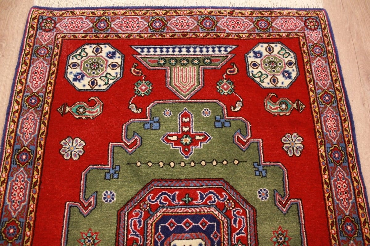 • Perser Teppich Ghom | Knotendichte: 300.000 Knoten/m² | Material: Hochwertige Wolle | Größe: 126×84 cm | Farbe: Sattes Rot mit Türkis | Muster: Quadratisch unterteilte Gartenteppiche, Vasenmuster, zentrale Medaillons | Zustand: Sehr gut | Ursprung: Iran