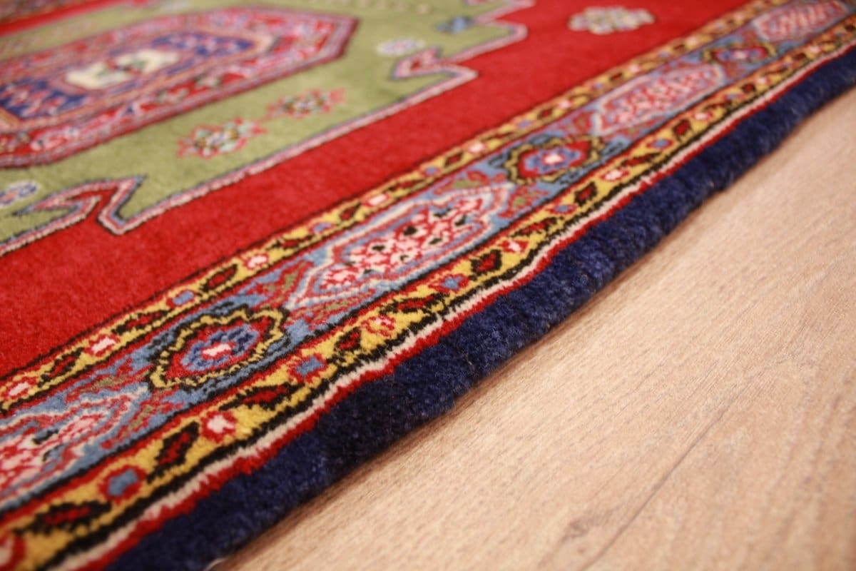 Der handgeknüpfte Perser Teppich Ghom in einem tiefen Rot ist ein wahres Kunstwerk und bringt Eleganz sowie Tradition in jeden Raum. Hergestellt aus hochwertiger Wolle, überzeugt dieser Teppich nicht nur durch seine erstklassige Qualität, sondern auch durch die Detailverliebe, die in die jahrhundertealte Knüpfkunst eingeflossen ist.