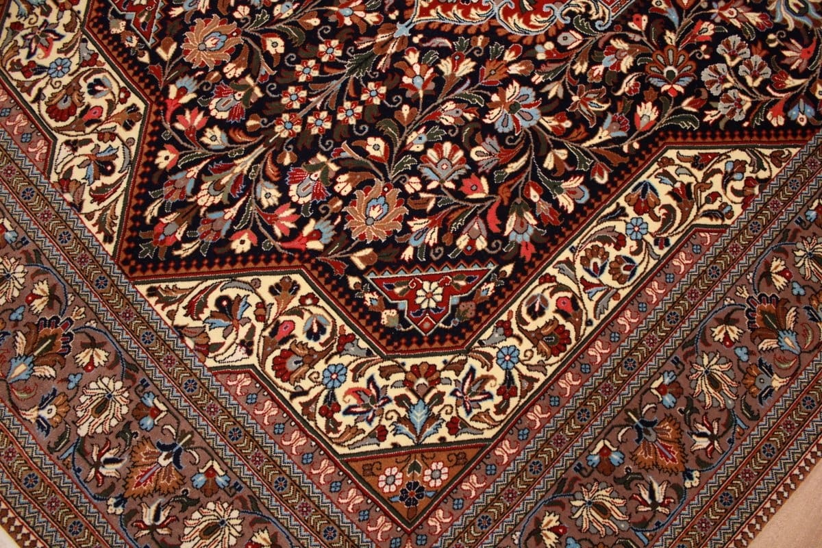 Das Design des Teppichs ist geprägt von traditioneller iranischer Kunst und symbolisiert oft Elemente aus der Natur, wie Blumen und geometrische Muster. Dunkelblau ist eine der klassischsten Farben in der Teppichkunst, die häufig mit Ruhe und Eleganz assoziiert wird. Die Muster, die auf diesem Teppich zu finden sind, sind sowohl zeitlos als auch modern und machen ihn zu einer hervorragenden Wahl für verschiedenste Einrichtungsstile. Ob klassisch oder zeitgenössisch, der Teppich fügt sich nahtlos in jede Umgebung ein und hebt das Gesamtbild Ihres Raumes hervor.