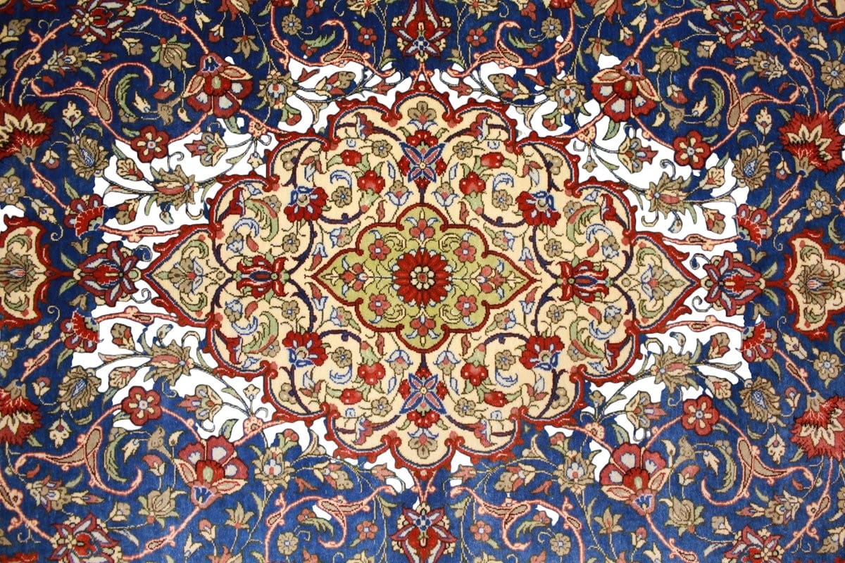 Ein weiterer herausragender Aspekt des Ghom Seidenteppichs ist seine vielseitige Einsetzbarkeit. Ob als edler Teppich im Wohnbereich oder als stilvolles Element in einem Schlafzimmer, dieser Teppich fügt sich nahtlos in verschiedene Einrichtungsstile ein. Darüber hinaus ist die pflegeleichte Seide geeignet für Menschen mit Allergien, da sie weniger Staubpartikel anzieht und leicht zu reinigen ist. Der Teppich hält auch hohen Beanspruchungen stand, solange er richtig gepflegt wird. Es wird empfohlen, den Teppich regelmäßig zu reinigen und vor direkter Sonneneinstrahlung zu schützen, um seine Farben und die hochwertige Seide zu erhalten.