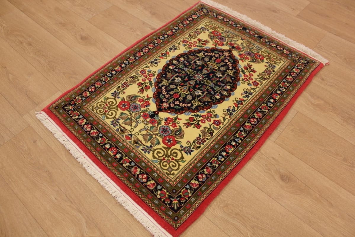 • Perser Teppich „Gom“ | Knotendichte: 300.000 Knoten/m² | Material: Hochwertige Wolle und Naturfarben | Größe: 110×81 cm | Zustand: Ausgezeichnet | Ursprung: Traditionelle Handarbeit