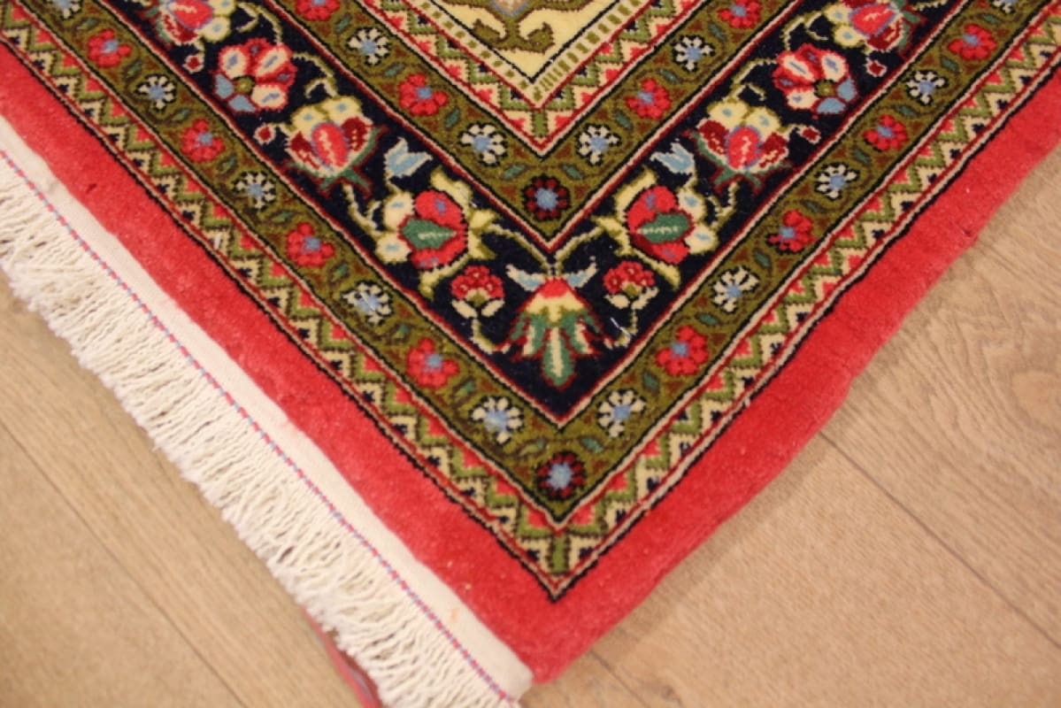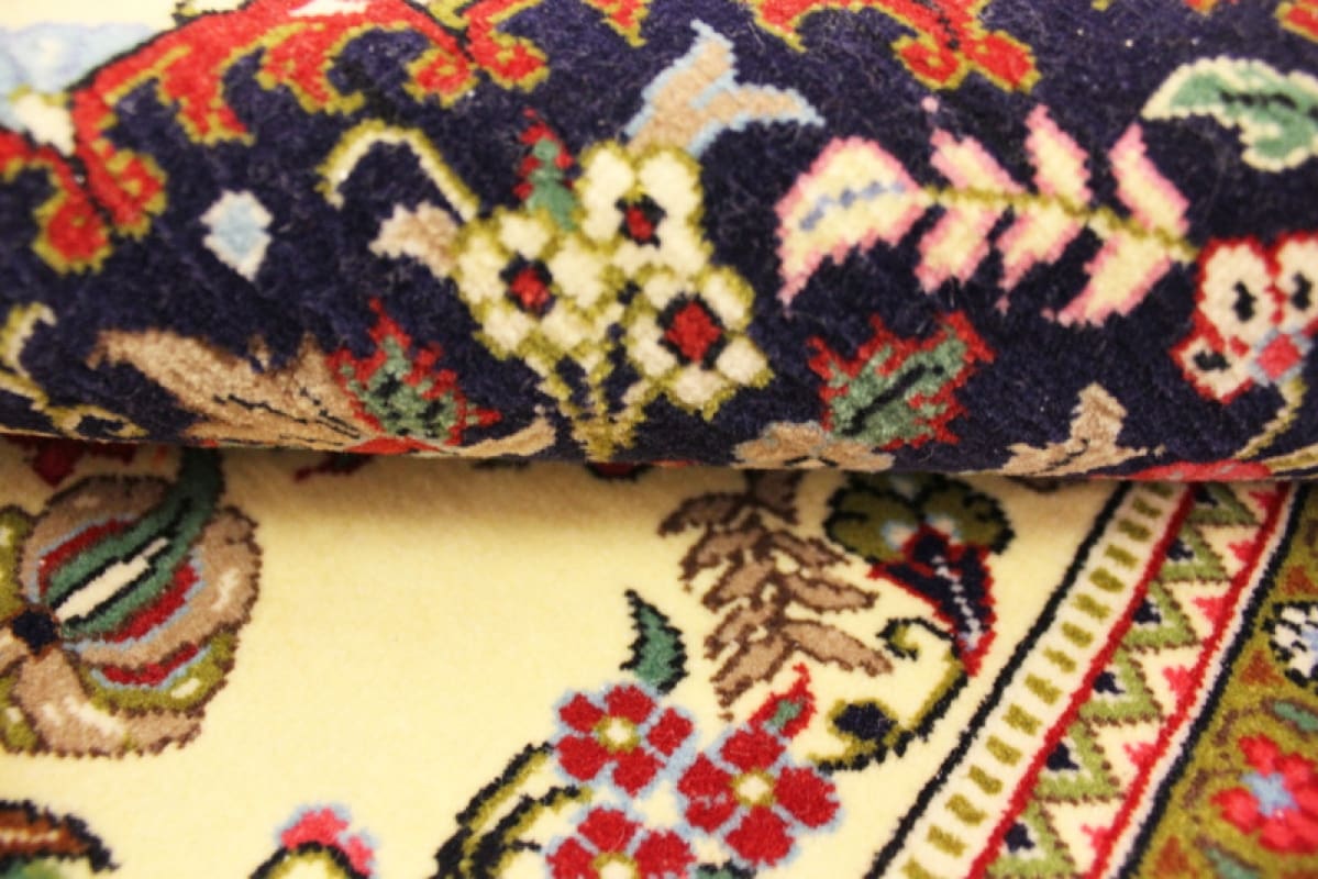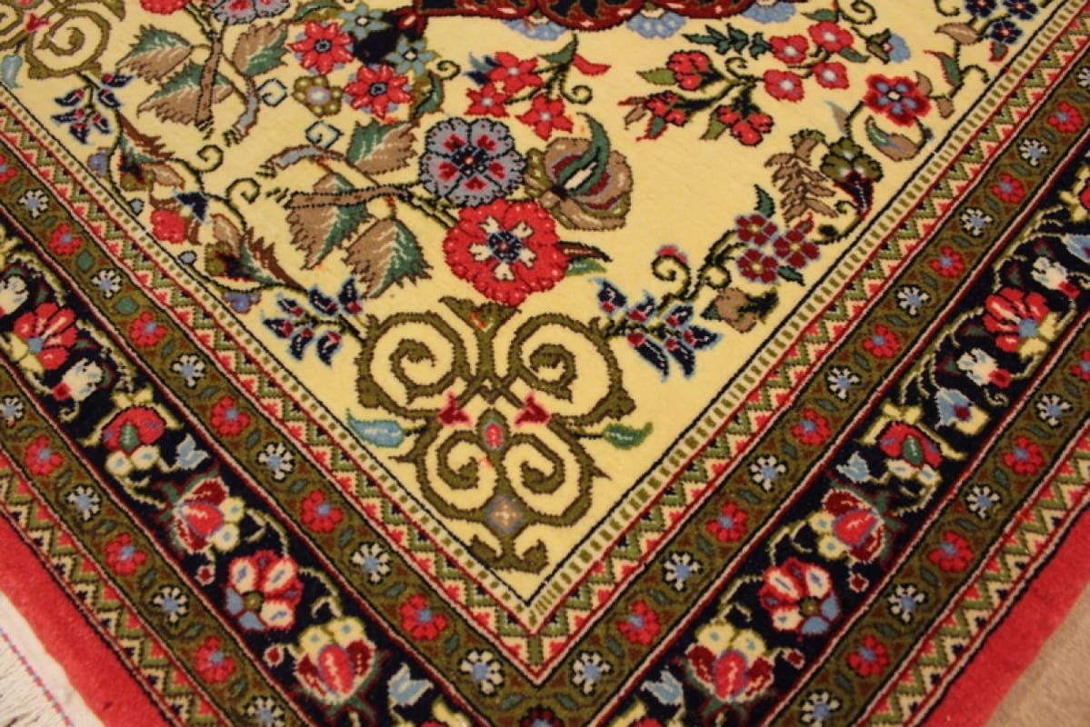 Ein weiterer Vorteil dieses handgeknüpften Teppichs ist seine Pflegeleichtigkeit. Bei entsprechender Pflege und regelmäßiger Reinigung behält er sein strahlendes Aussehen über Jahrzehnte hinweg. Perserteppiche sind auch für ihre Fähigkeit bekannt, den Wert über die Jahre zu steigern, was sie zu einer lohnenden Investition macht.