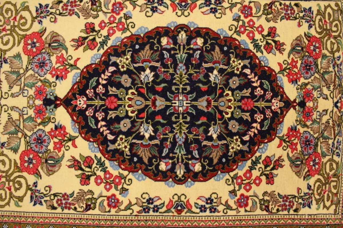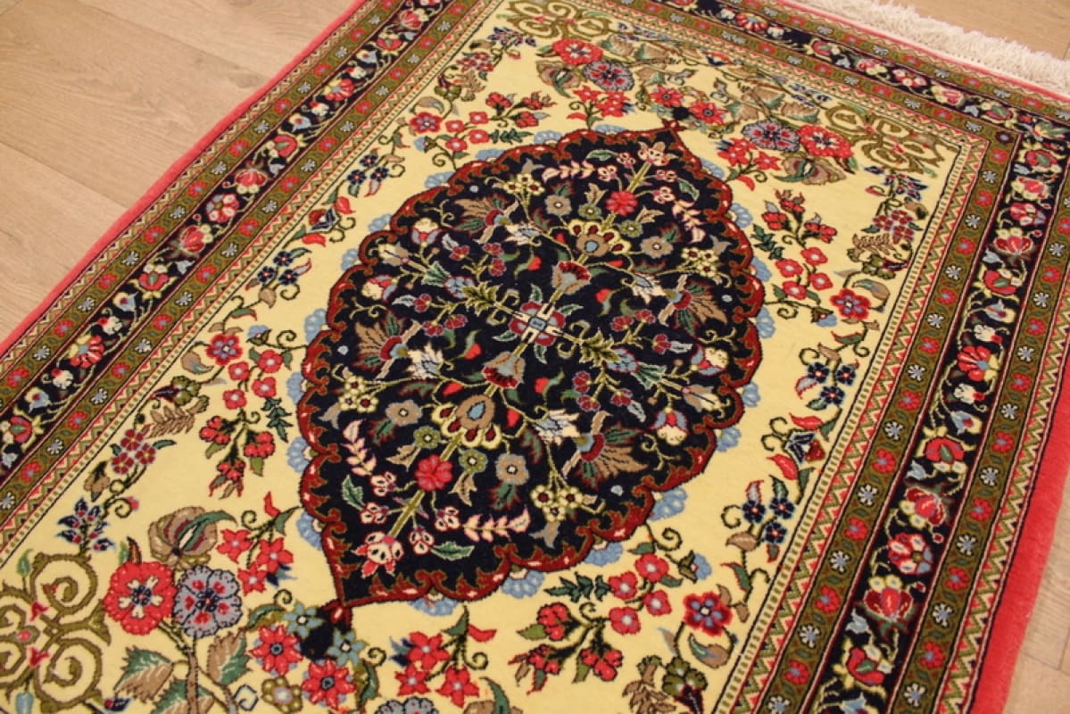 Perser Teppich „Gom“ 110×81 cm Beige, exakte Knüpfung, handgeknüpft