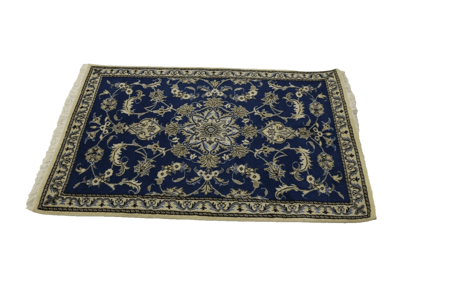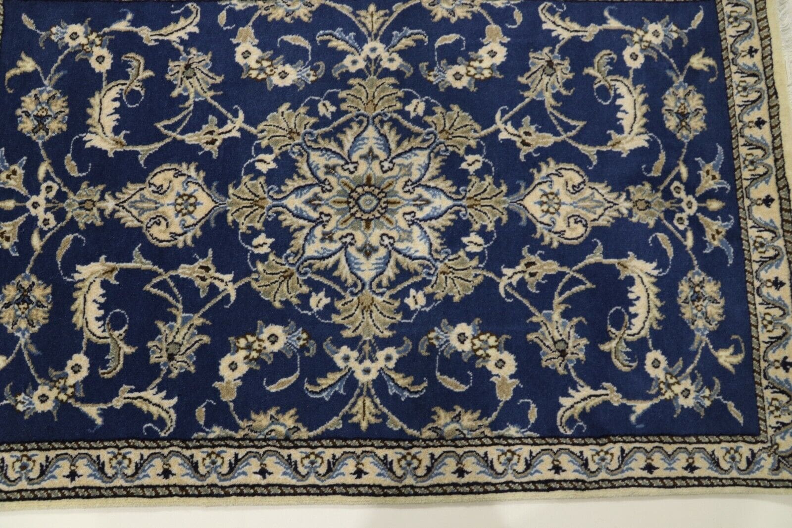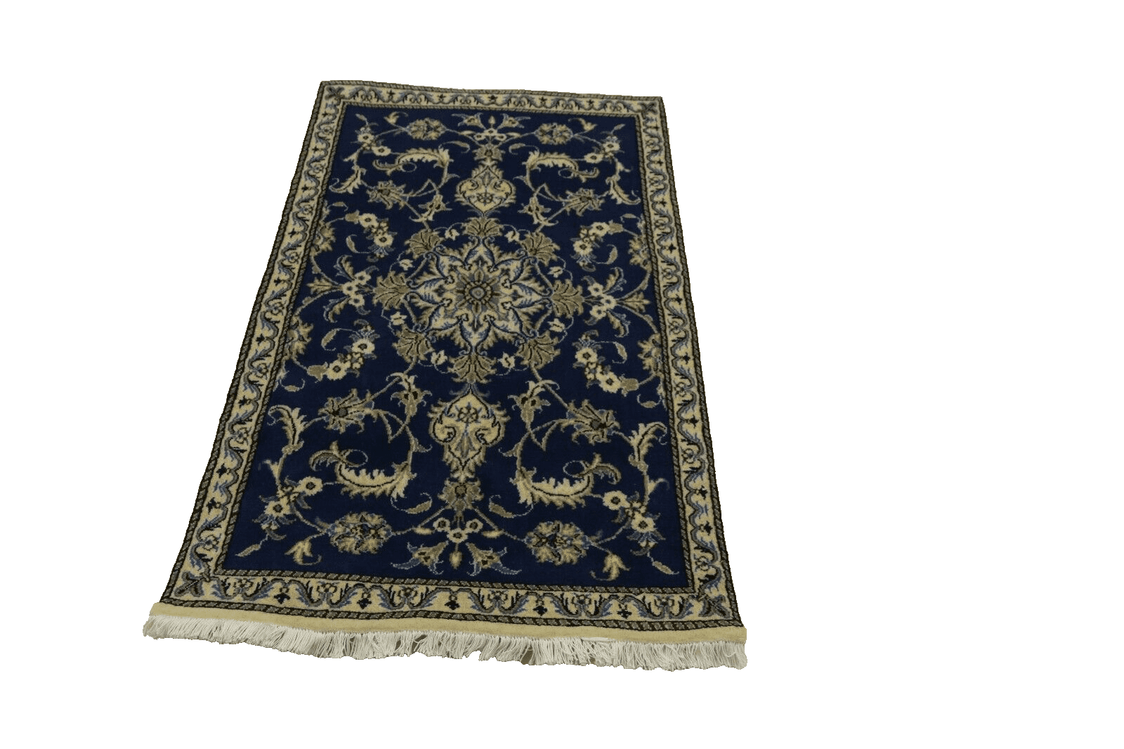 Perserteppich Nain | Größe: 138 x 88 cm | Knotendichte: ca. 300.000 Knoten/m² | Material: 100% Schurwolle und Baumwolle | Zustand: Neu, sehr gut | Herkunft: Persien | Stil: Traditionell Orientalisch/Persisch | Florhöhe: 8 mm | Handgeknüpft | Unikat, Einzelstück | Farben: Blau | Für verschiedene Räume geeignet: Kinderzimmer, Wohnzimmer, Schlafzimmer usw.