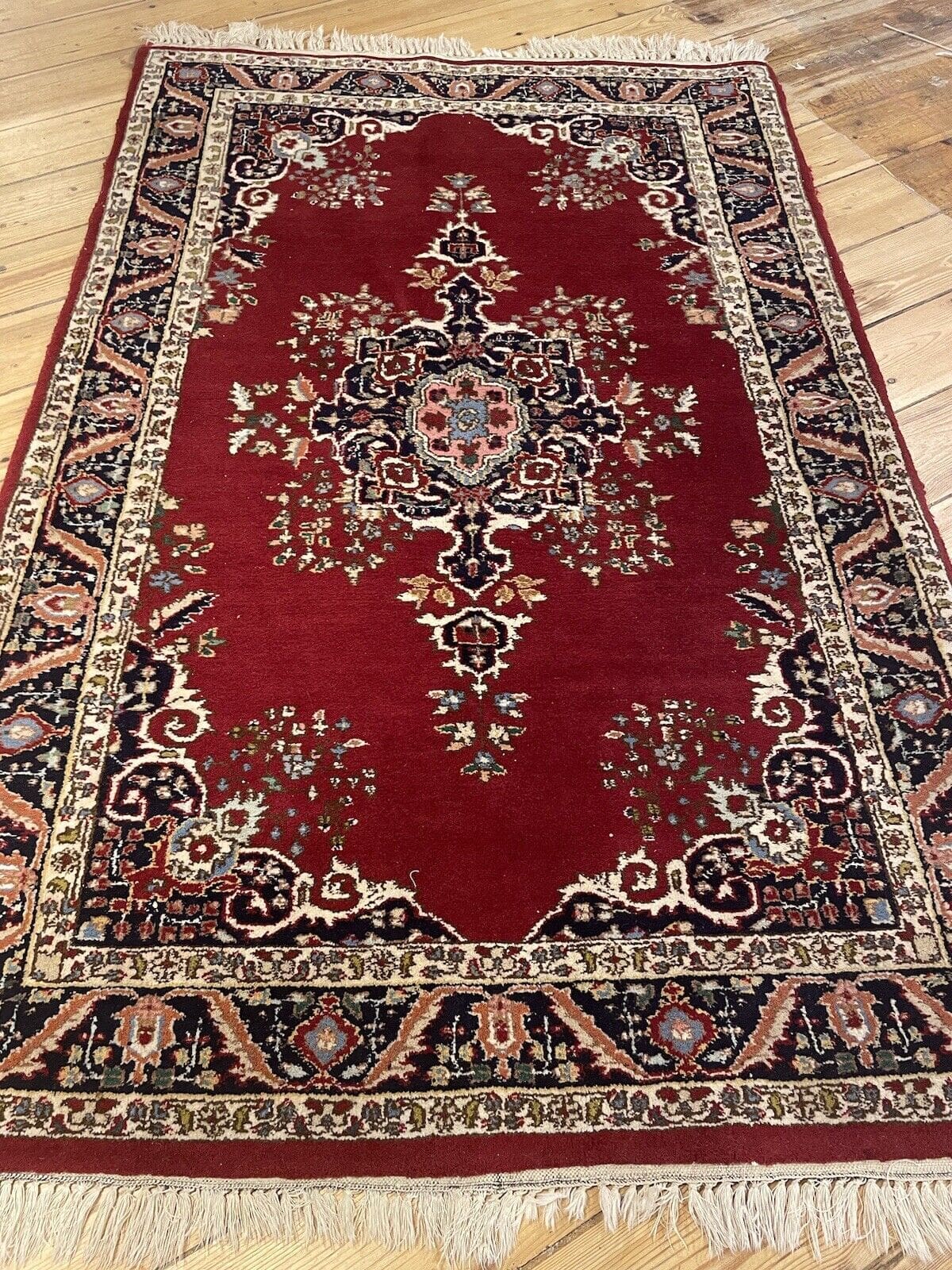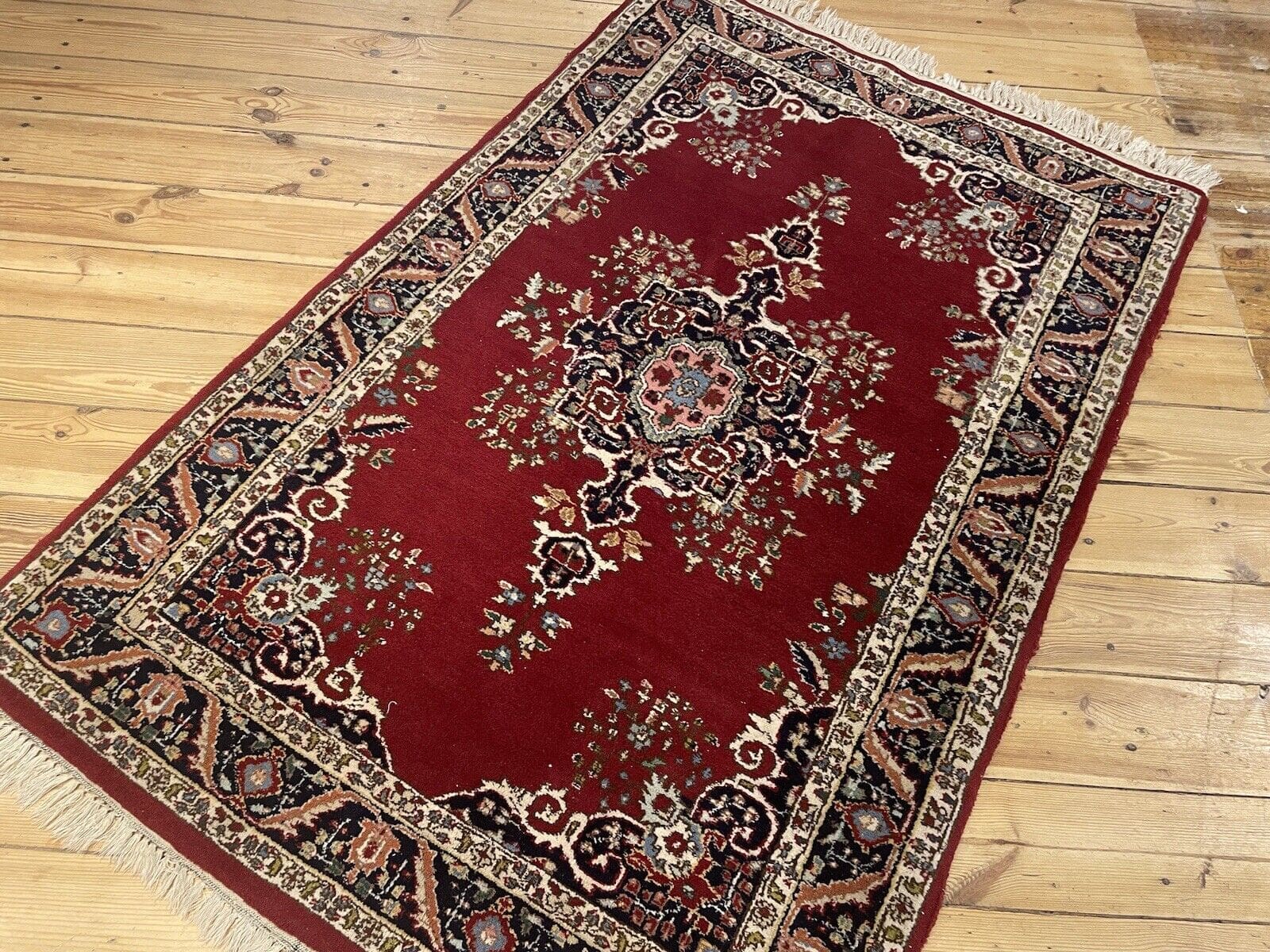 Kaschmir Teppich aus reiner Schurwolle | Handgeknüpft in Top-Qualität | Größe: 160×100 cm | Florhöhe: 8 mm | Muster: Alt rote Anatoluschen Designs | Für Fußbodenheizung geeignet | Zustand: Neu ohne Etikett | Regionales Design: Kaschmir | Material: Wolle und Baumwolle | Stil: Traditionell persisch/orientalisch | Verwendung: Geeignet für Schlafzimmer, Esszimmer, Arbeitszimmer und Wohnzimmer