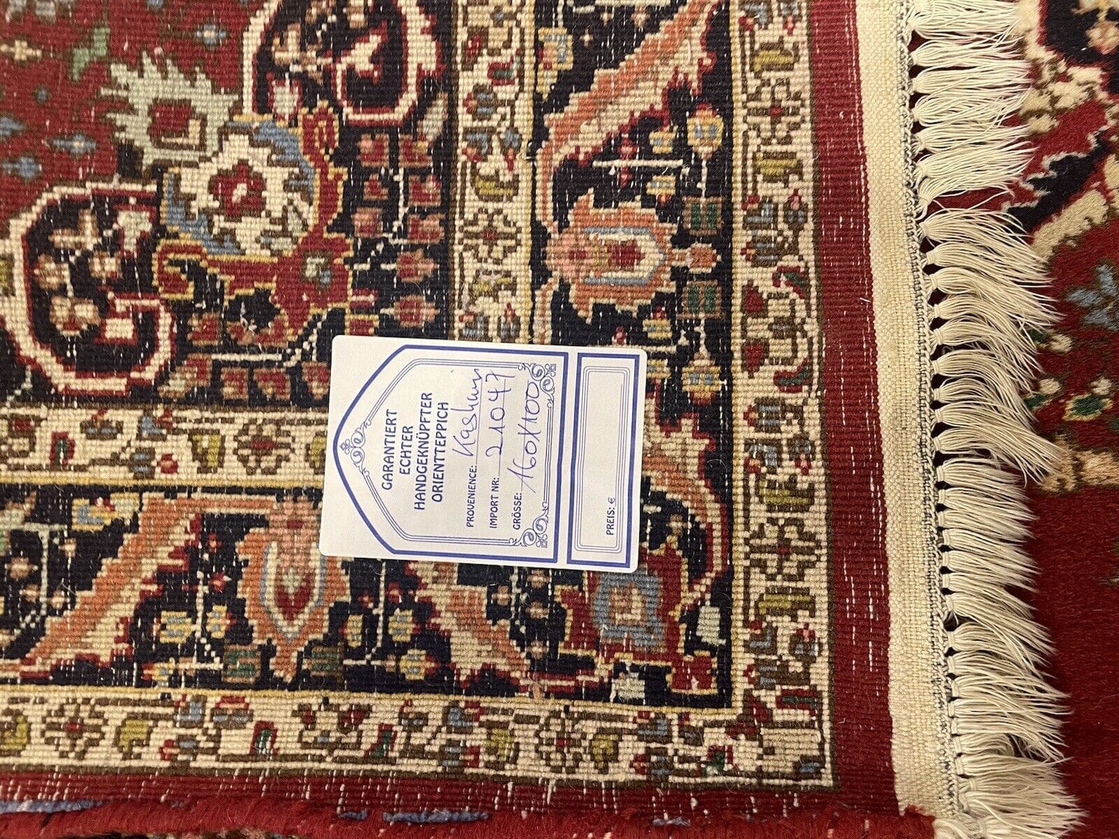 Ein handgeknüpfter Teppich hat typischerweise unregelmäßige Kanten und unterschiedliche Knotendichten. Überprüfen Sie die Rückseite des Teppichs: Bei handgeknüpften Modellen sind die Knoten sichtbar, während maschinell gefertigte Teppiche meist eine einheitliche Rückseite haben.