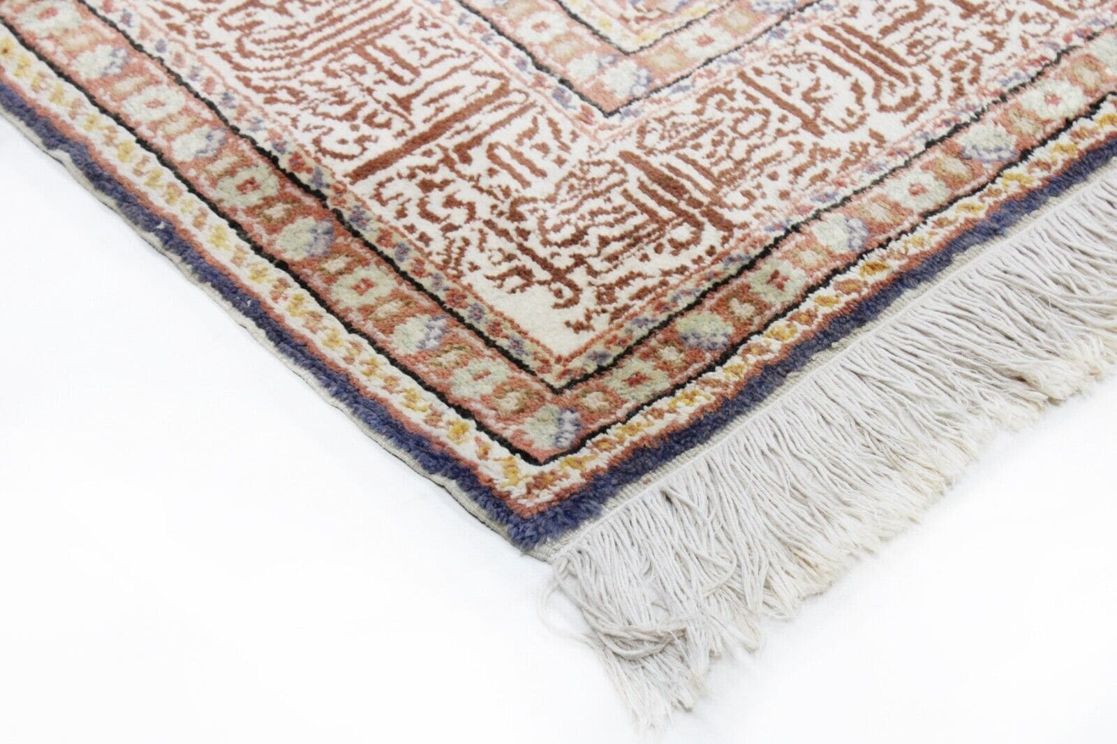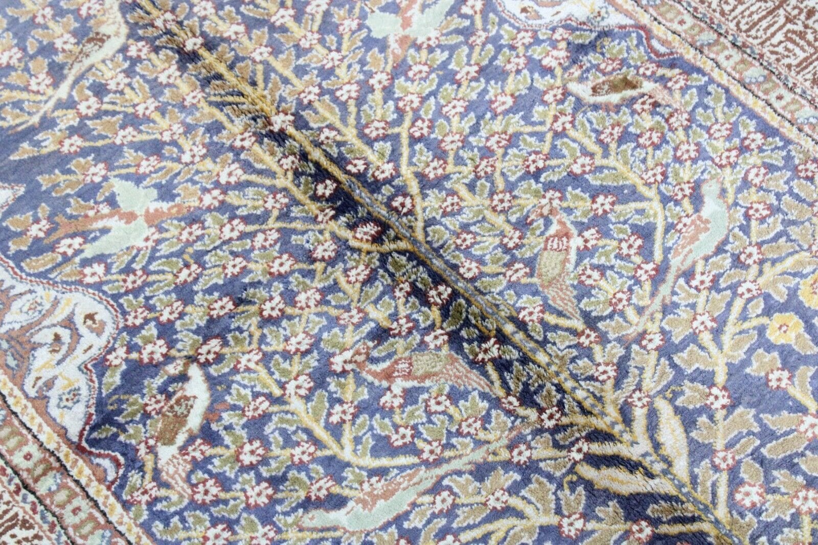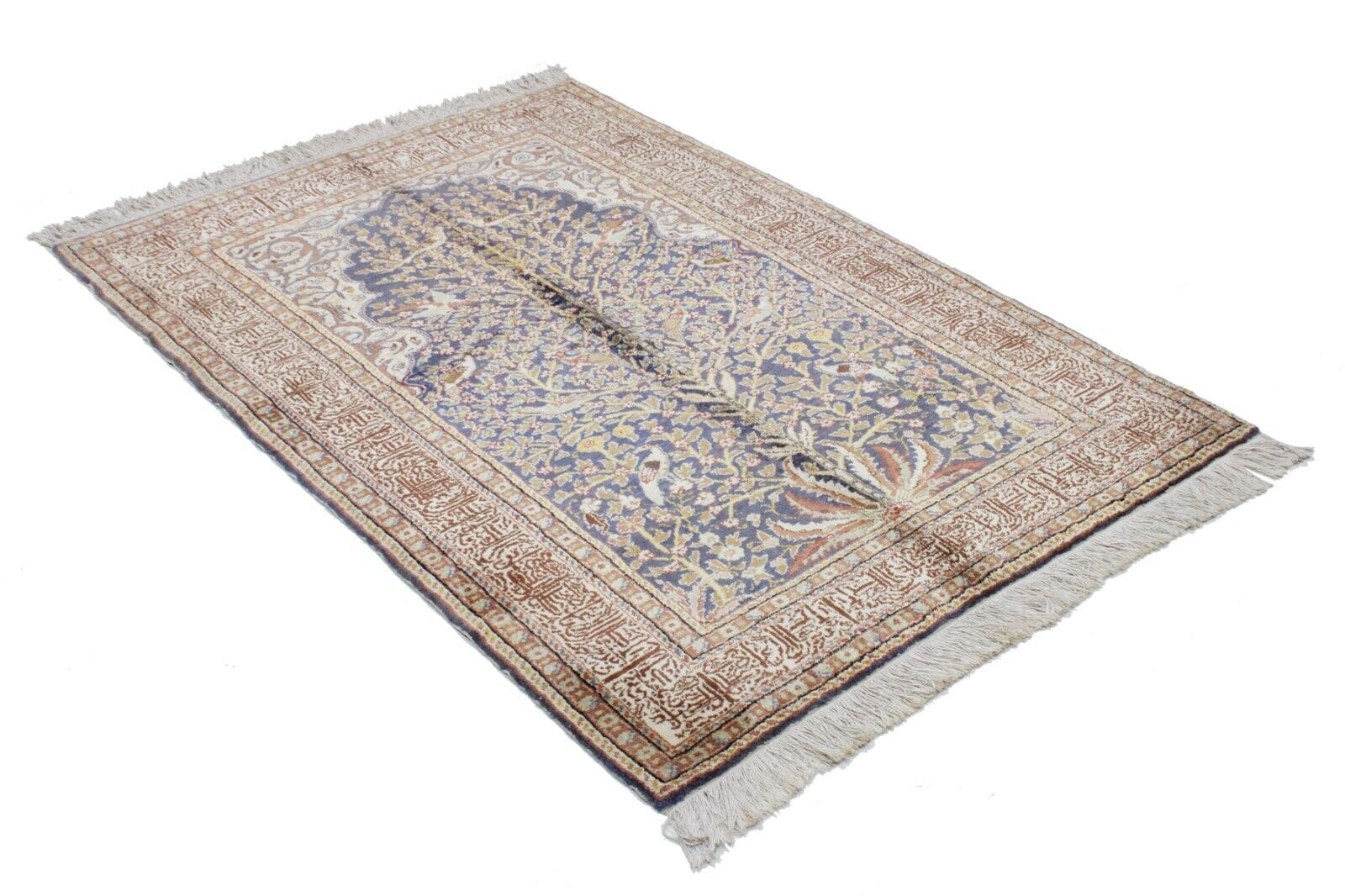Handgeknüpfter Kashmir Teppich | Größe: 178 x 118 cm | Material: 100% Baumwolle und 100% Seide | Muster: Bildmotive | Zustand: Gebraucht, in gutem Zustand | Herkunft: Indien | Florhöhe: Normal | Besonderheiten: Antirutsch, für Fußbodenheizung geeignet, leicht zu reinigen, waschbar | Stil: Kashmir | Epoche: Spätes 20. Jahrhundert (1970-1999)