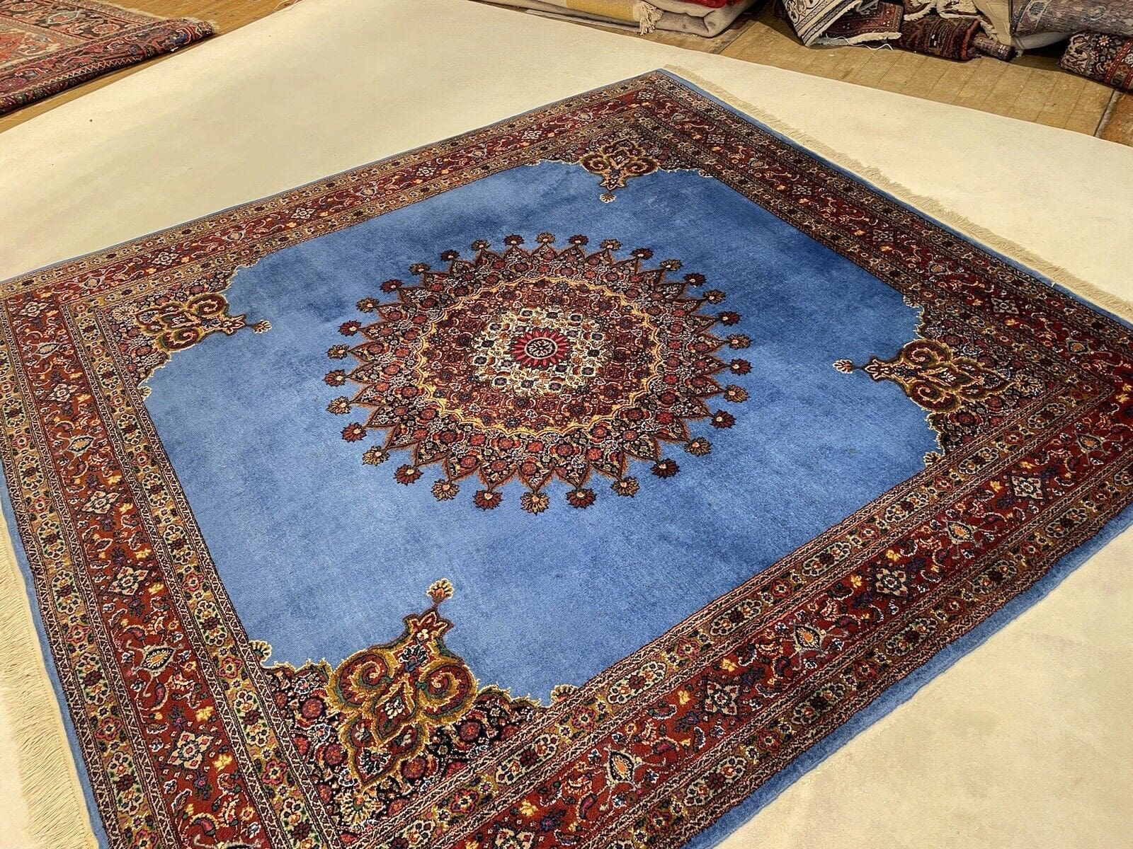 Original Perserteppich Moud mit Seide | Größe: 225×220 cm | Knotendichte: Sehr fein geknüpft | Material: Wolle mit Seide | Zustand: Neu mit Etikett | Muster: Orientalisch | Form: Quadratisch | Für Fußbodenheizung geeignet | Stil: Klassisch | Herkunft: Persisch
