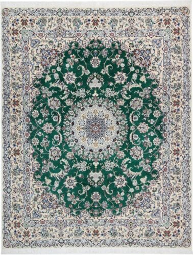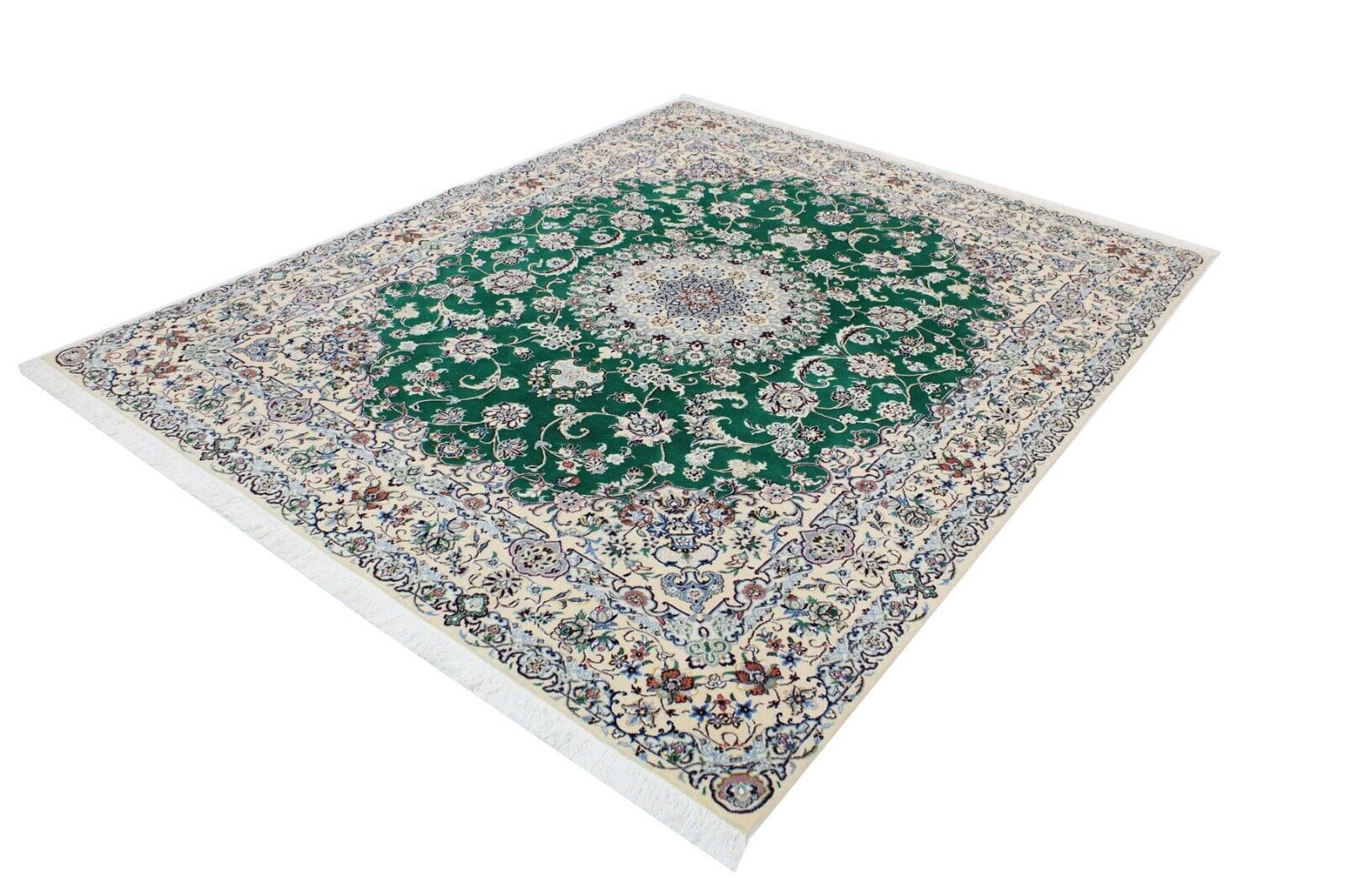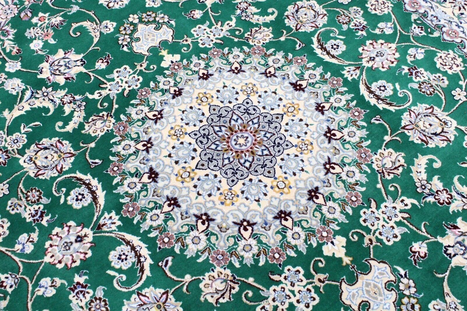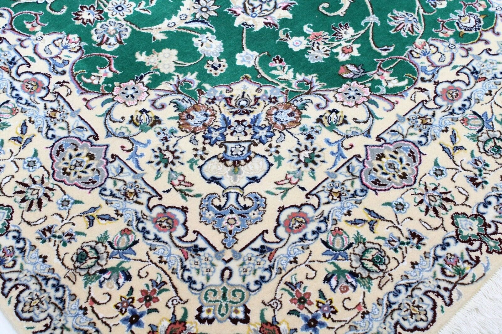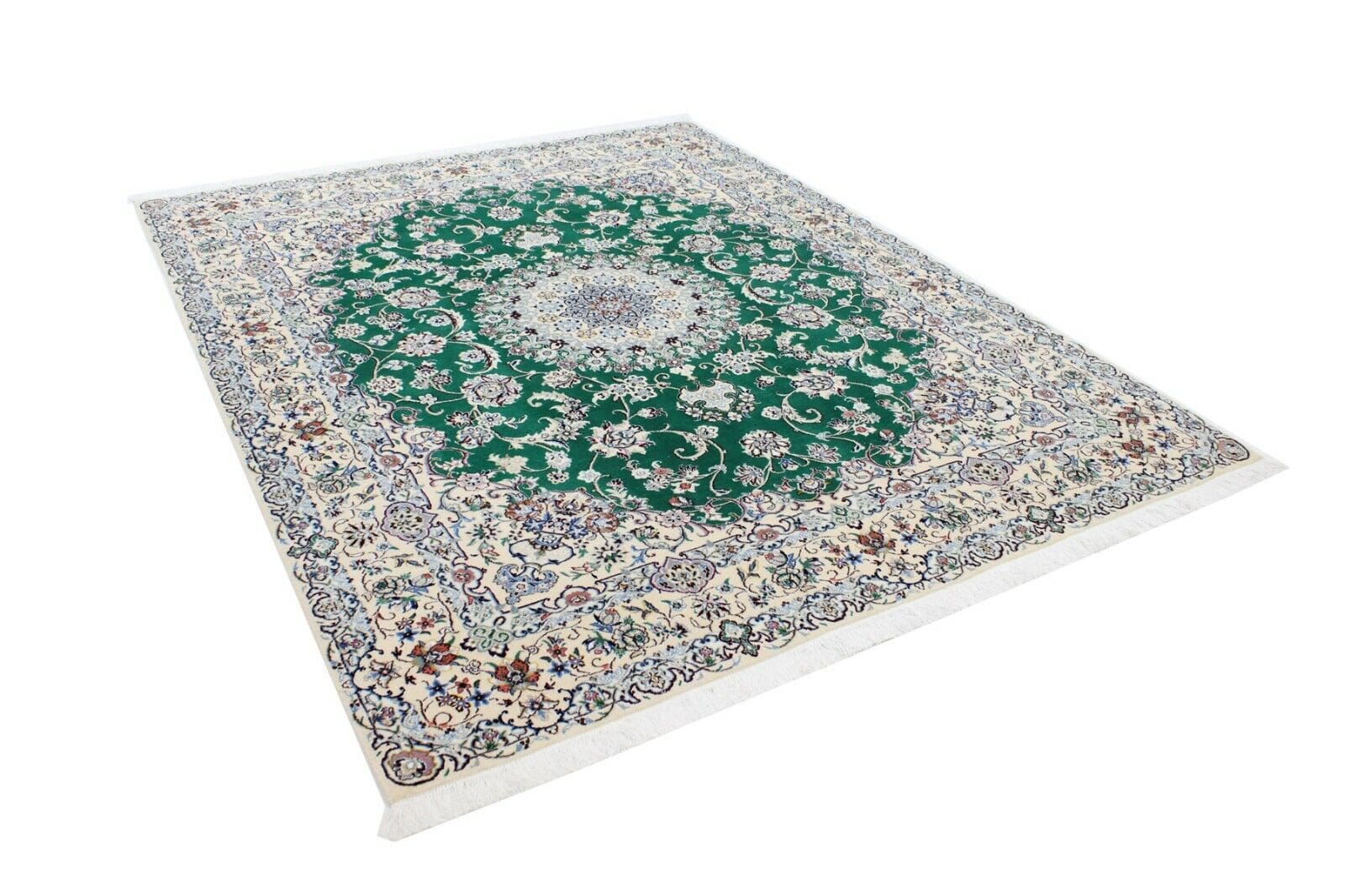 Handgeknüpfter Teppich Nain 9La | Knotendichte: Hochwertig | Material: 100% Baumwolle, 100% Seide, 100% Wolle | Größe: 255 x 203 cm | Zustand: Neu ohne Etikett | Ursprungsregion: Persien | Herstellungszeitraum: Ab 2020 | Farbton: Grün