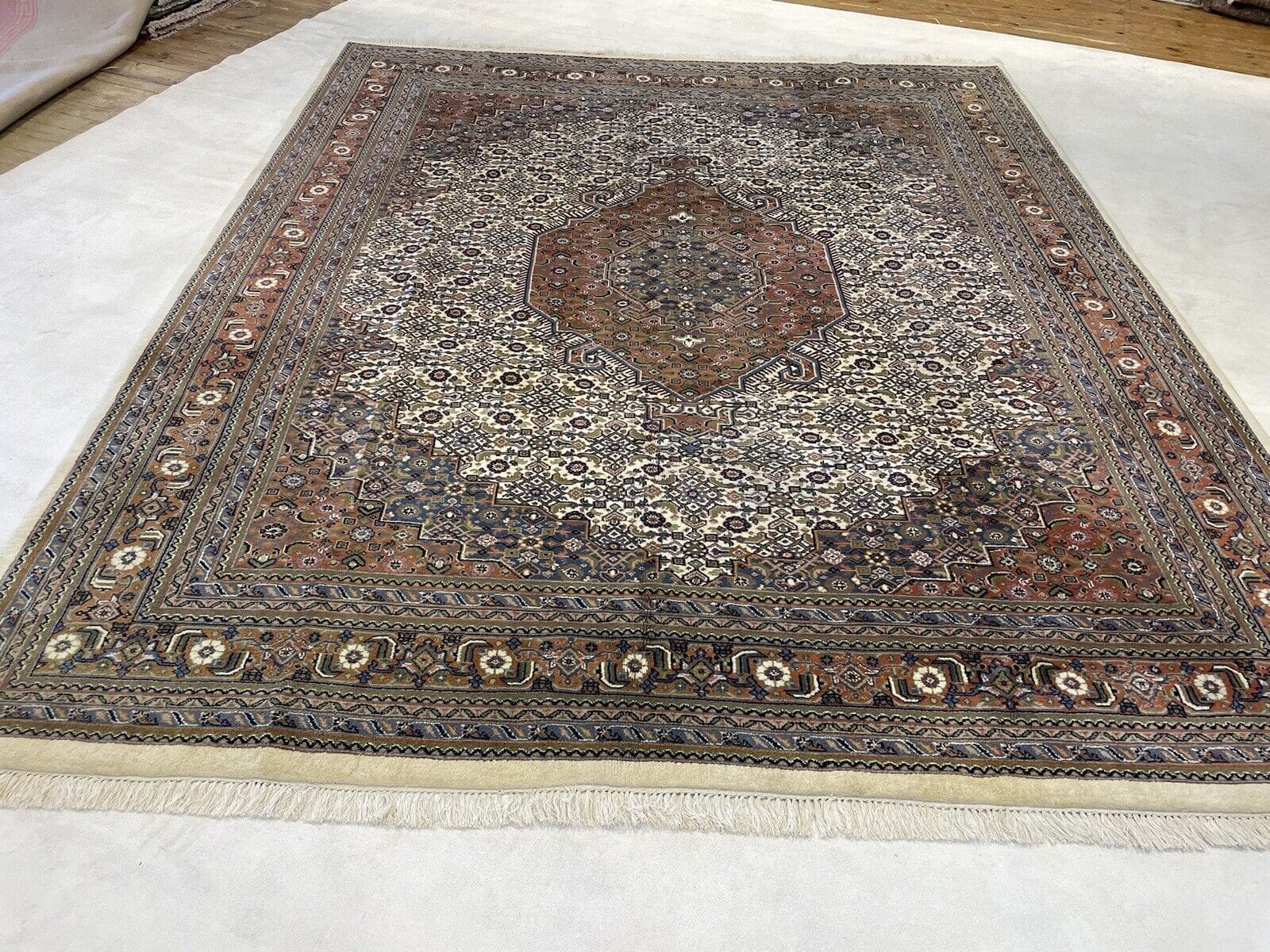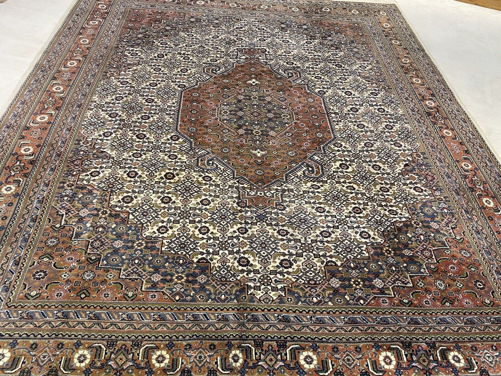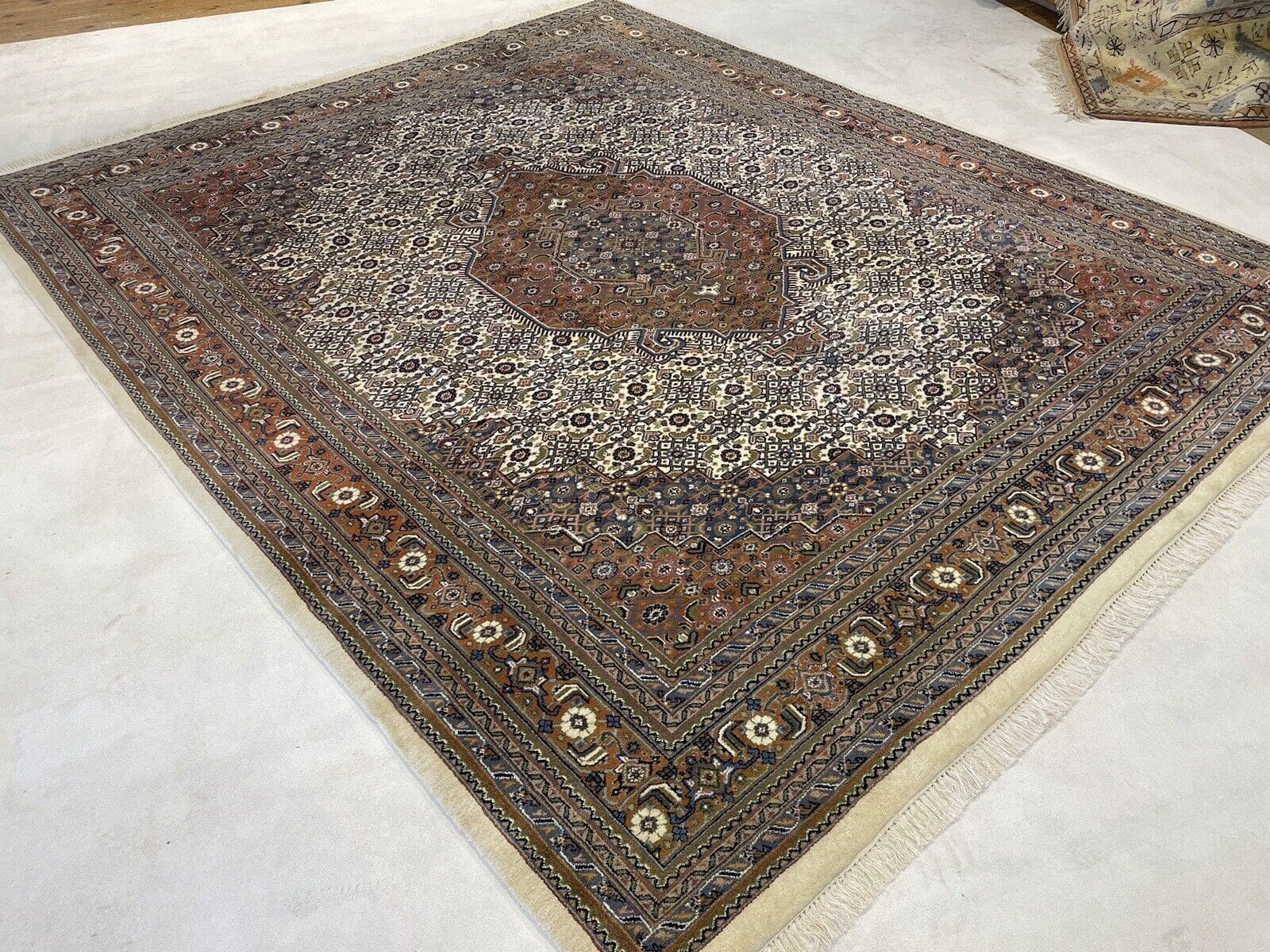 Original Bijar Teppich | Größe: 300×250 cm | Knotendichte: 400.000 Knoten/m² | Material: Wolle und Baumwolle | Farbe: Beige mit floralen Mustern | Zustand: Neu mit Etikett | Handgeknüpft | Für Fußbodenheizung geeignet | Stil: Traditionell Persisch/Orientalisch | Florhöhe: 7 mm | Eignet sich für alle Zimmer