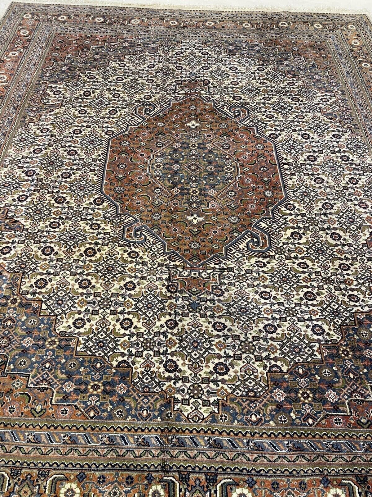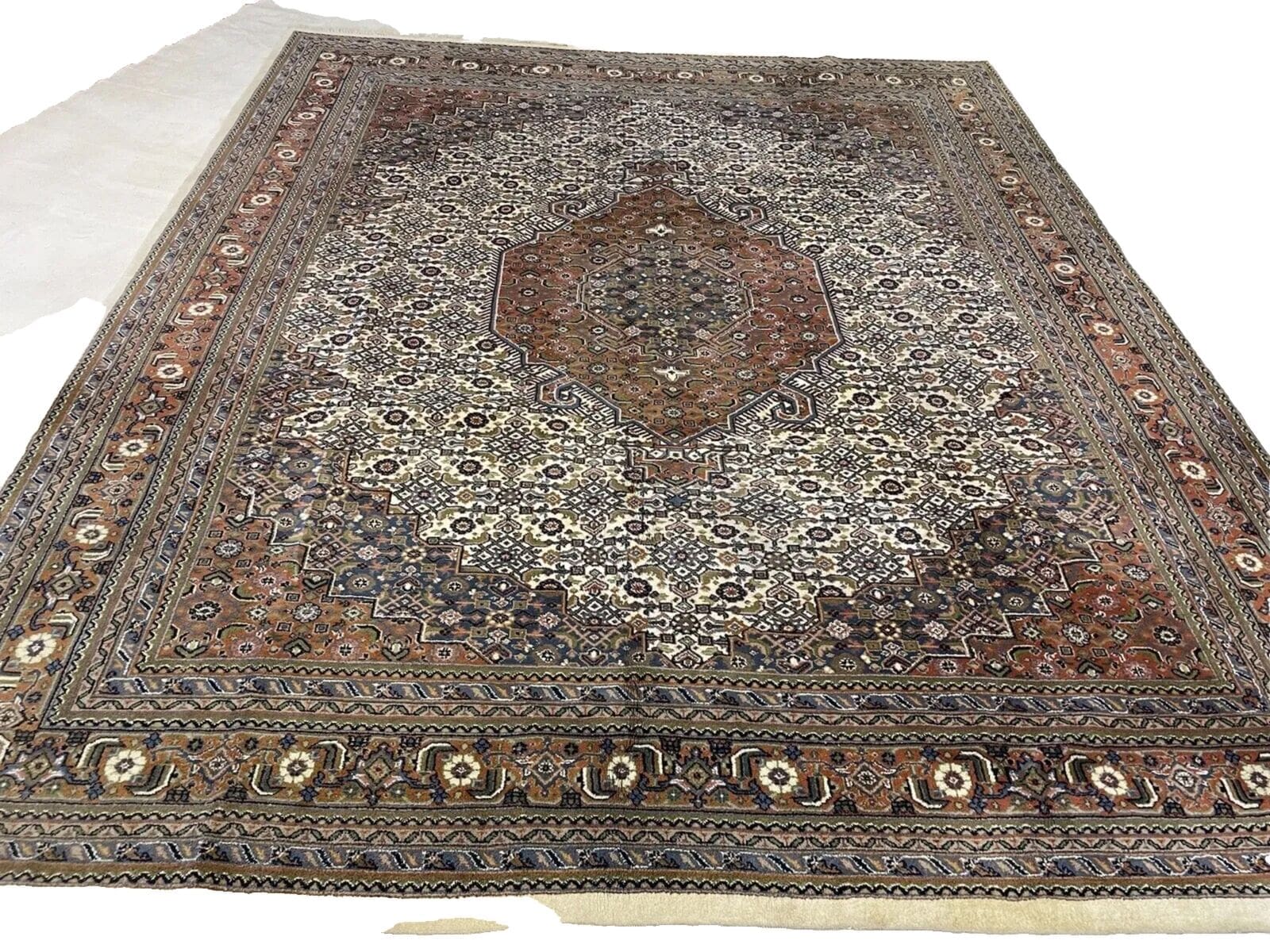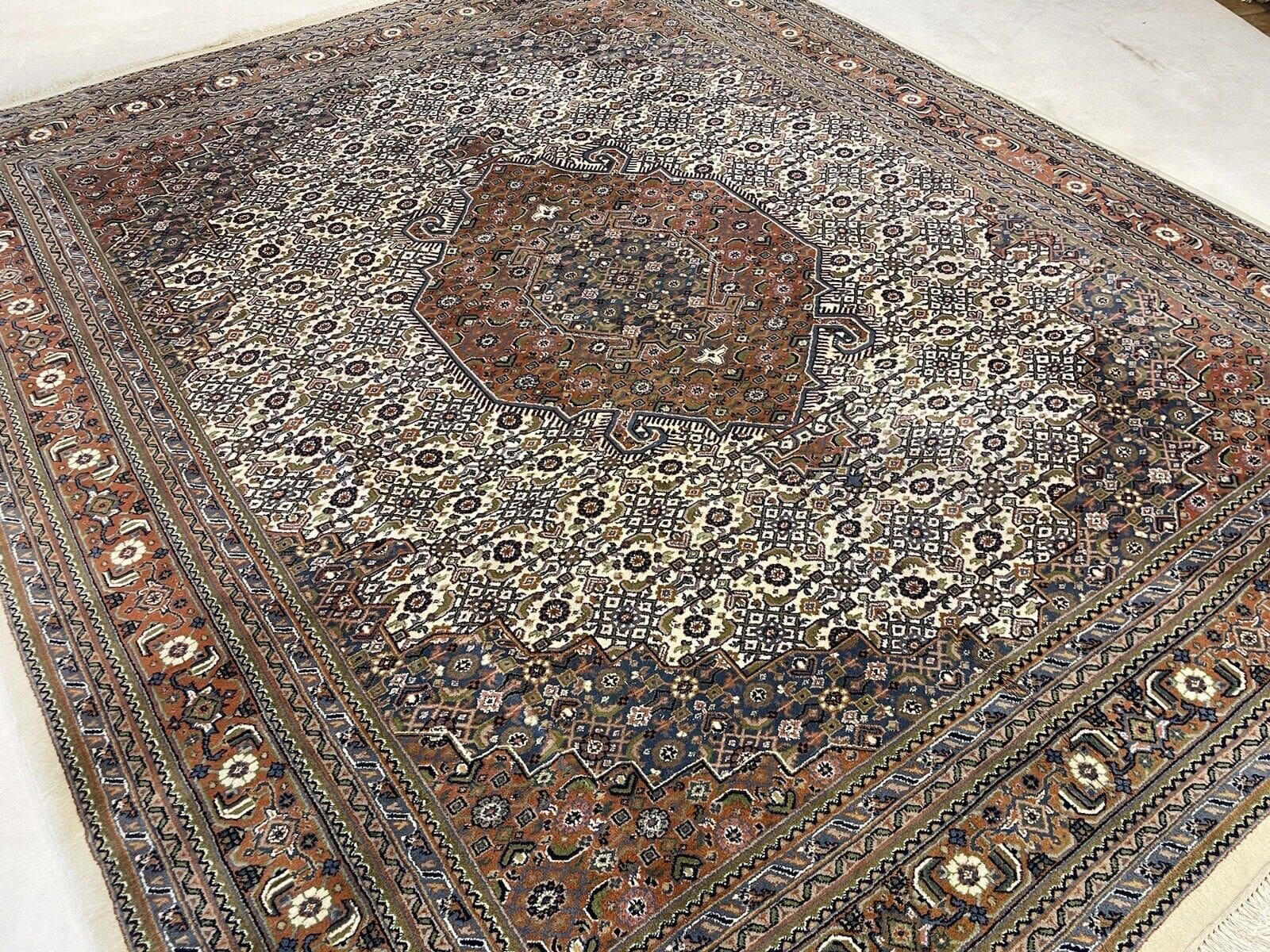 Original Bijar Teppich | Größe: 300×250 cm | Knotendichte: 400.000 Knoten/m² | Material: Wolle und Baumwolle | Farbe: Beige mit floralen Mustern | Zustand: Neu mit Etikett | Handgeknüpft | Für Fußbodenheizung geeignet | Stil: Traditionell Persisch/Orientalisch | Florhöhe: 7 mm | Eignet sich für alle Zimmer