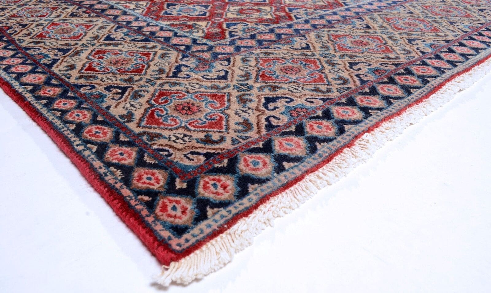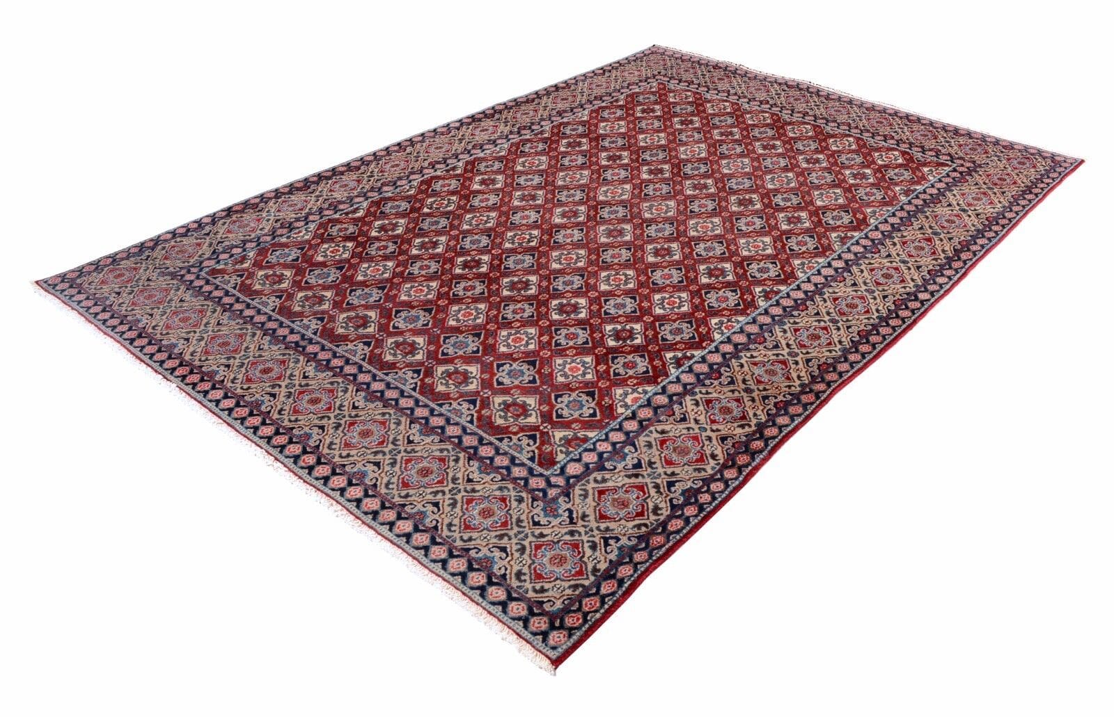 Handgeknüpfter Perserteppich Moud | Größe: 310×208 cm | Knotendichte: 350.000 Knoten/m² | Material: 100% Schurwolle | Zustand: Sehr gut, leichte Gebrauchsspuren | Herkunft: Persien | Muster: Allover Design | Dicke: ca. 8 mm | Für Fußbodenheizung geeignet | Alter: 20-30 Jahre alt