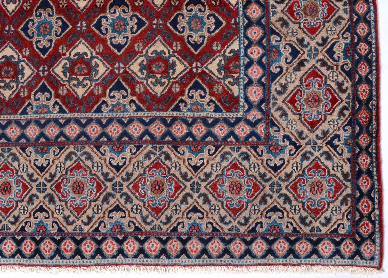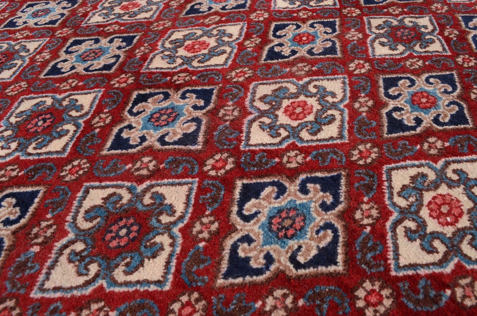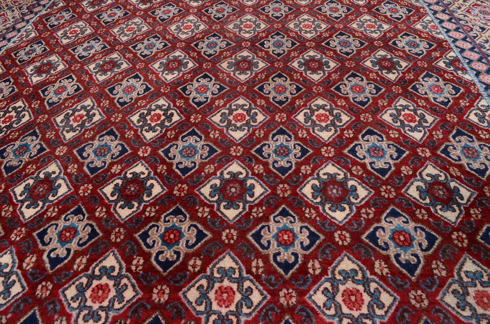 Dieser Teppich stammt aus der Provinz Moud, einer Region im Iran, die für ihre traditionsreiche Teppichknüpfkultur bekannt ist. Moud ist berühmt für seine faszinierenden Designs und die Verwendung lebendiger Farben. Diese Region hat sich einen Namen gemacht durch Teppiche, die oft florale Muster und geometrische Designs kombinieren, wobei jede Linie und jedes Muster eine Geschichte erzählt. Die Handwerker in Moud haben jahrhundertelange Erfahrung, die sich in der Qualität und der Ästhetik ihrer Teppiche widerspiegelt.
