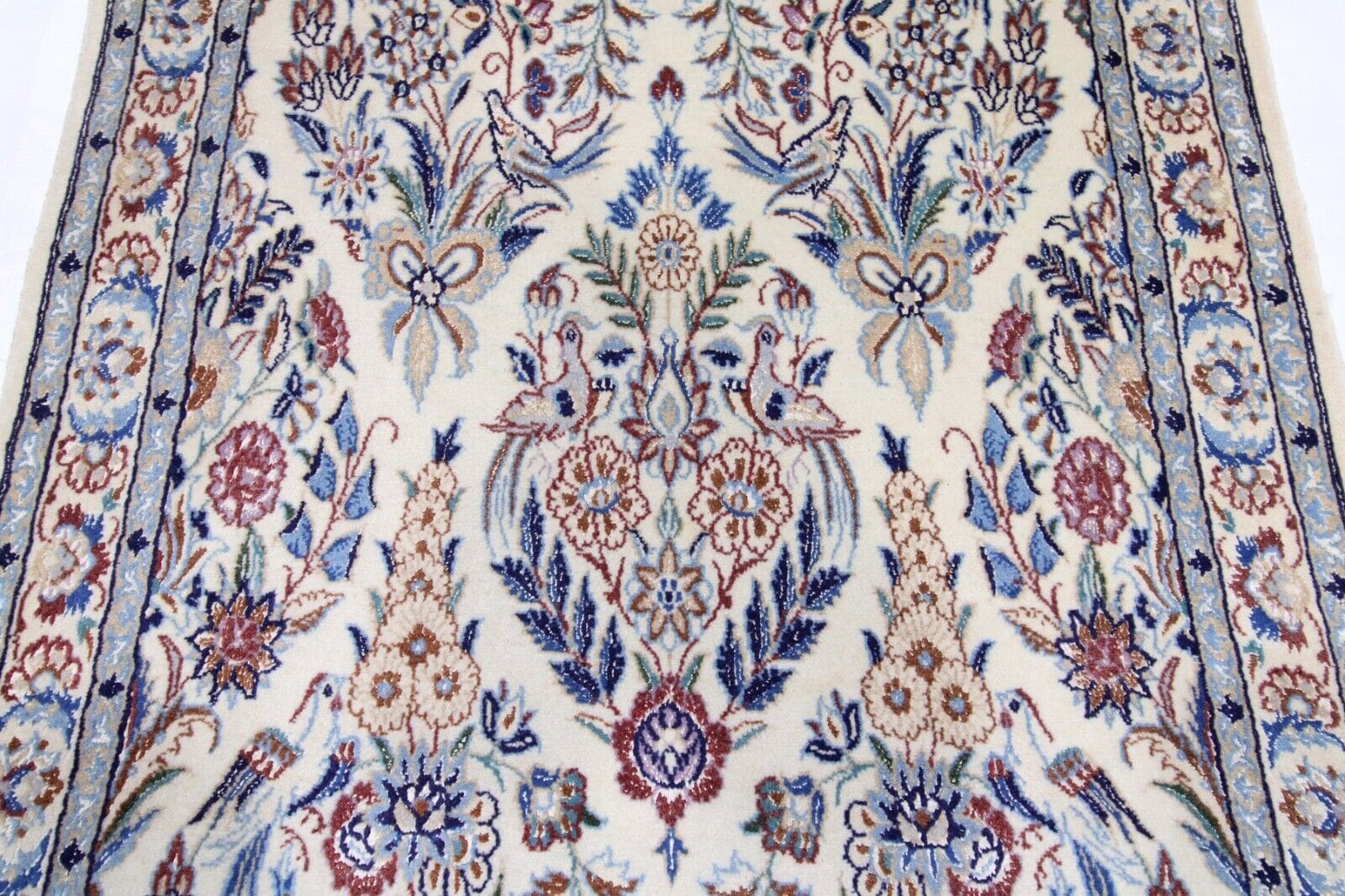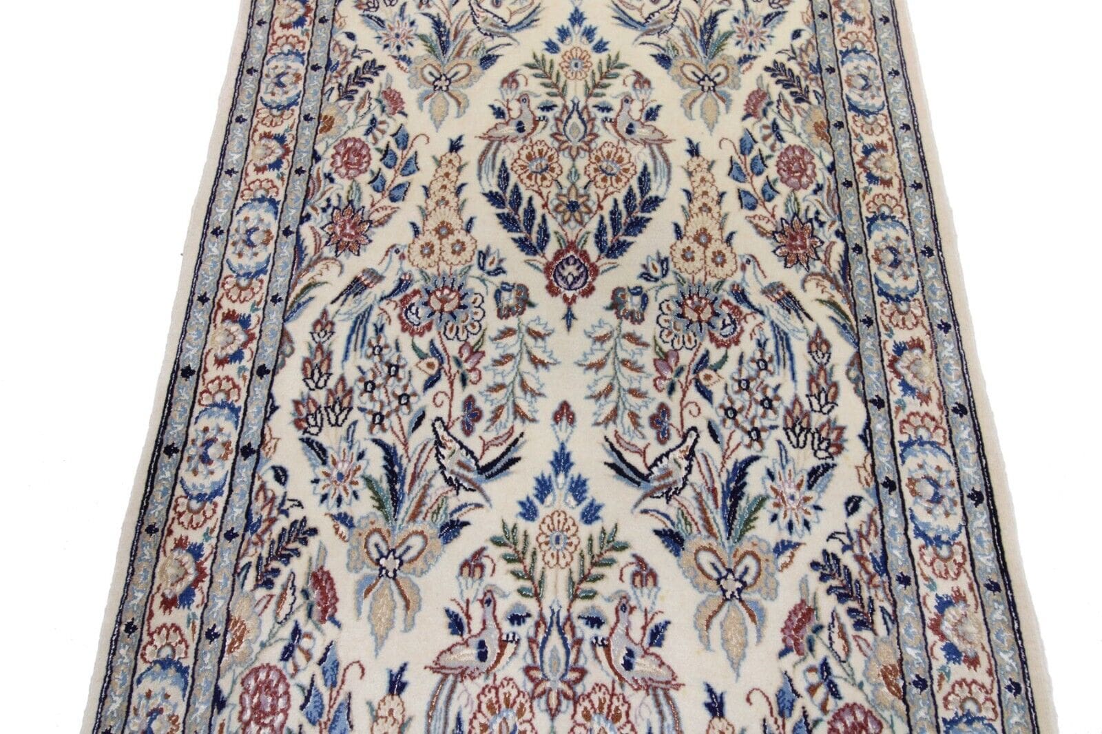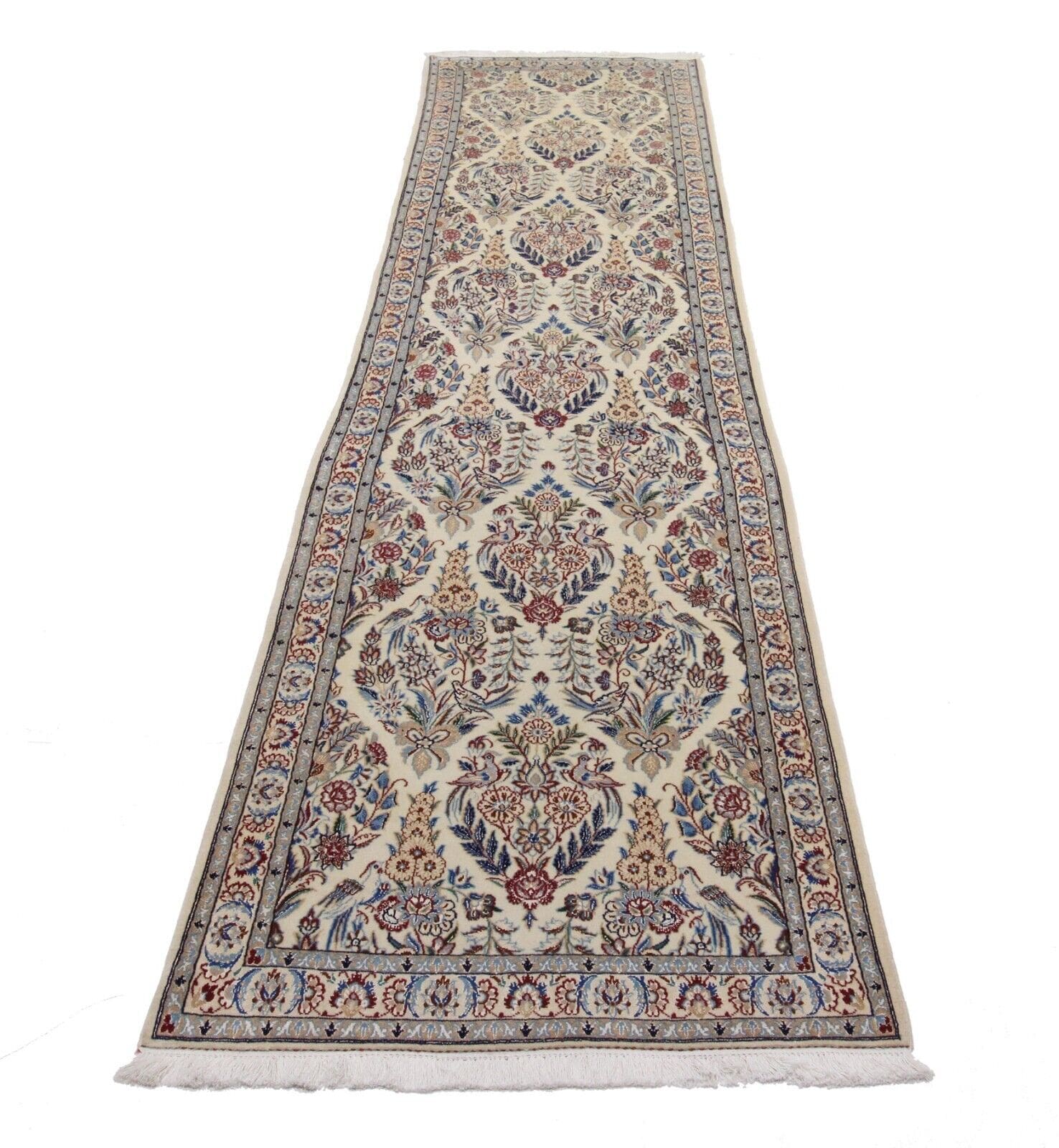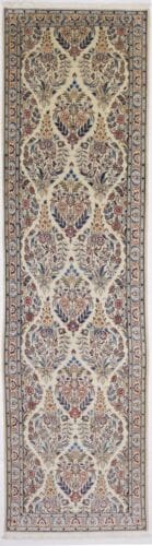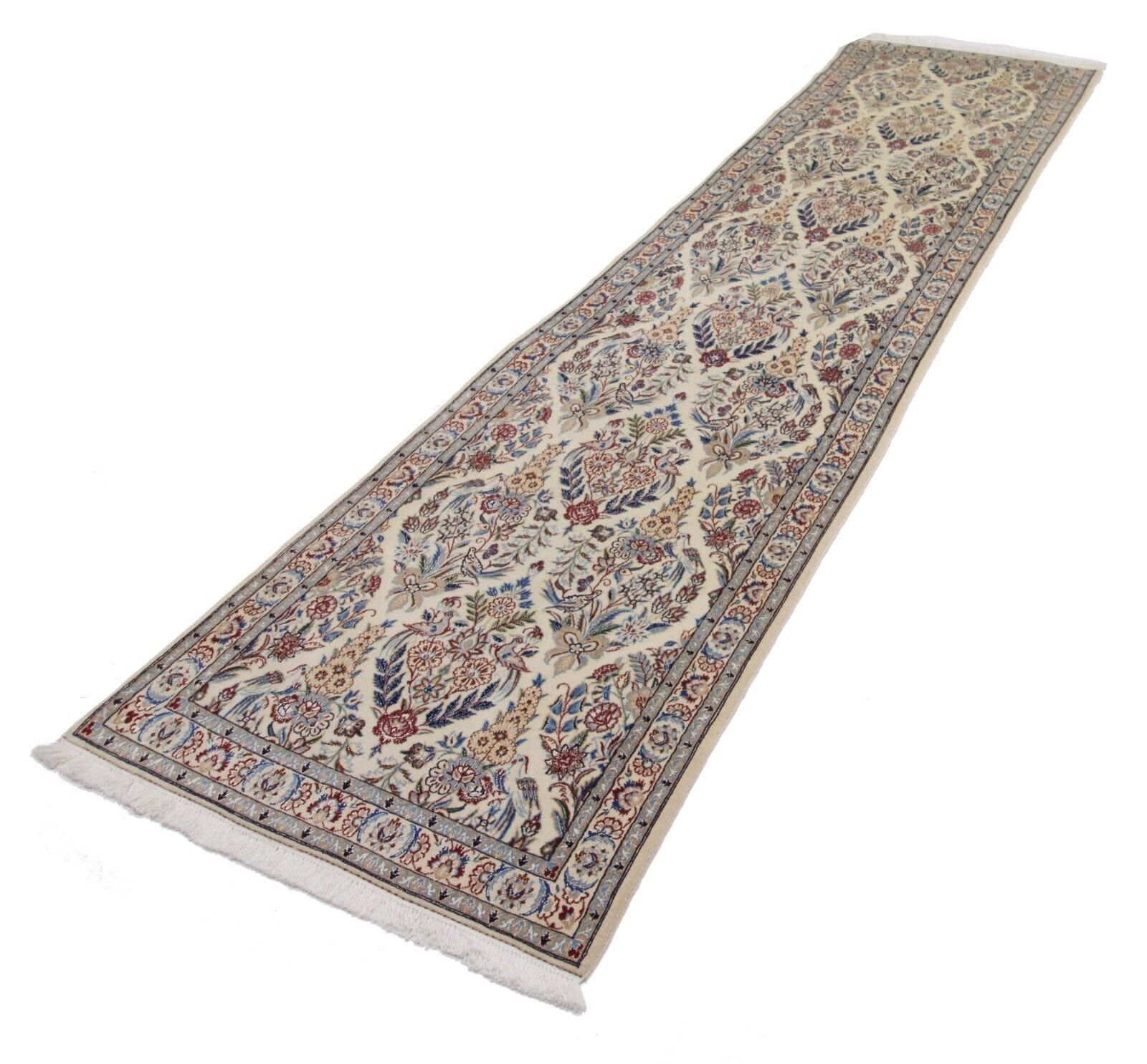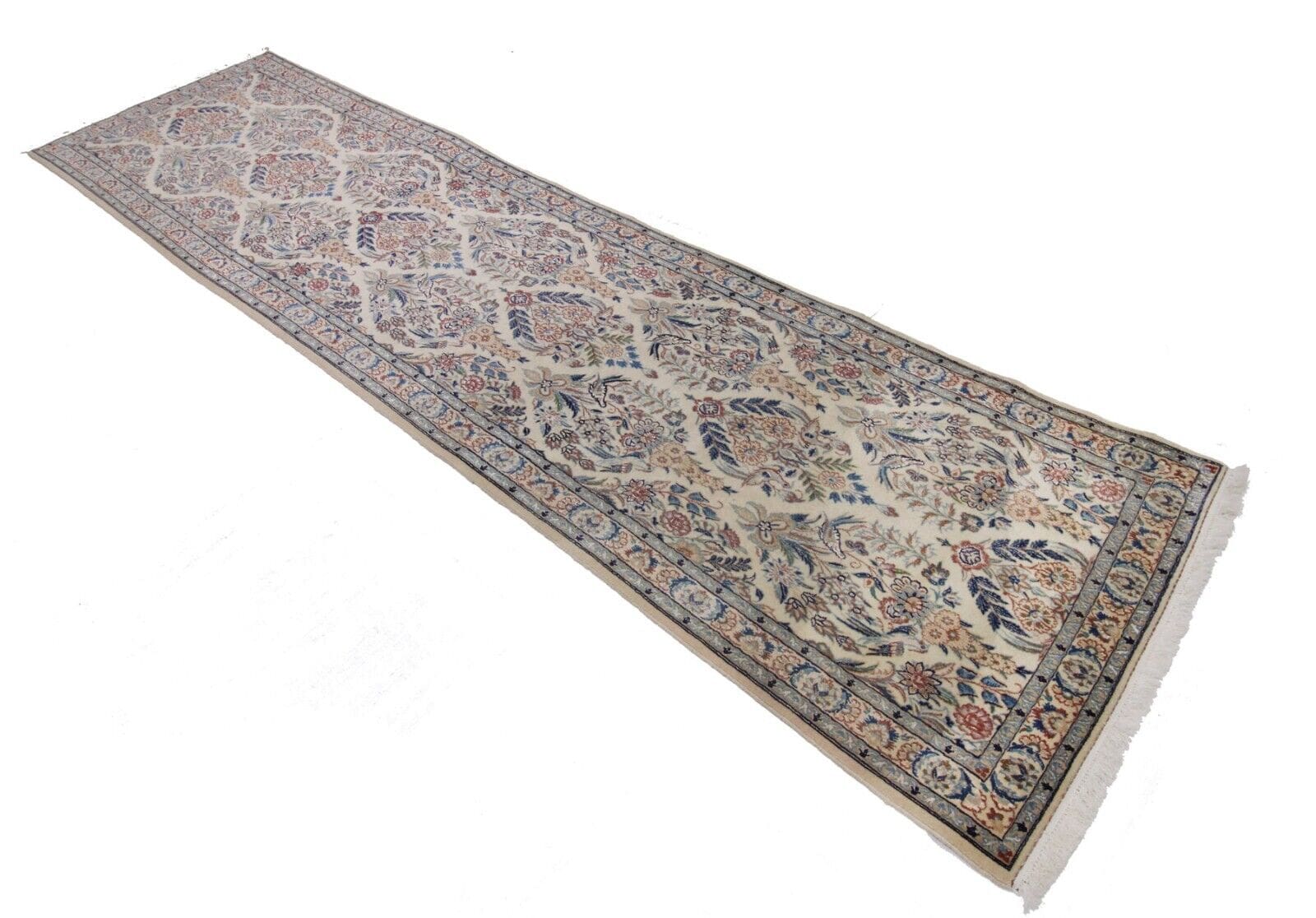 Handgeknüpfter Teppich Nain 9La | Größe: 350 x 85 cm | Material: 100% Baumwolle, 100% Seide, 100% Wolle | Muster: Orientalisch, Beige | Zustand: Neu ohne Etikett, gewaschen | Knotendichte: Sehr fein | Herkunft: Persien, Iran | Besonderheiten: Allergikerfreundlich, Antirutsch, Antistatisch, für Fußbodenheizung geeignet