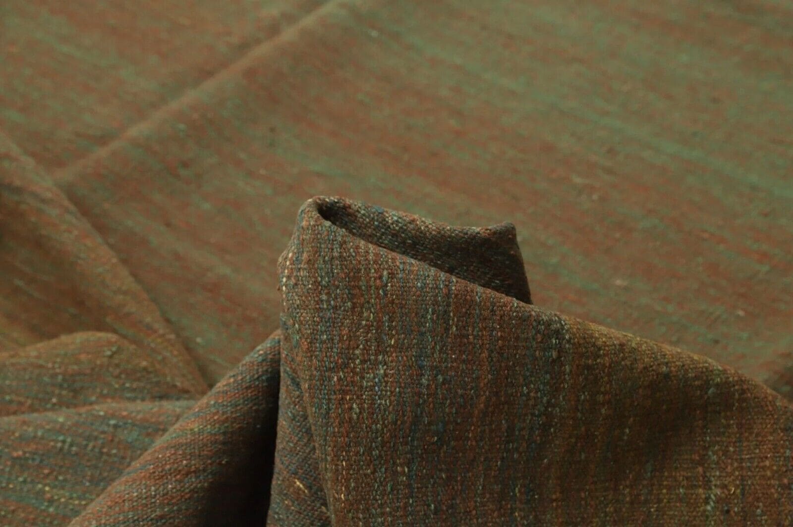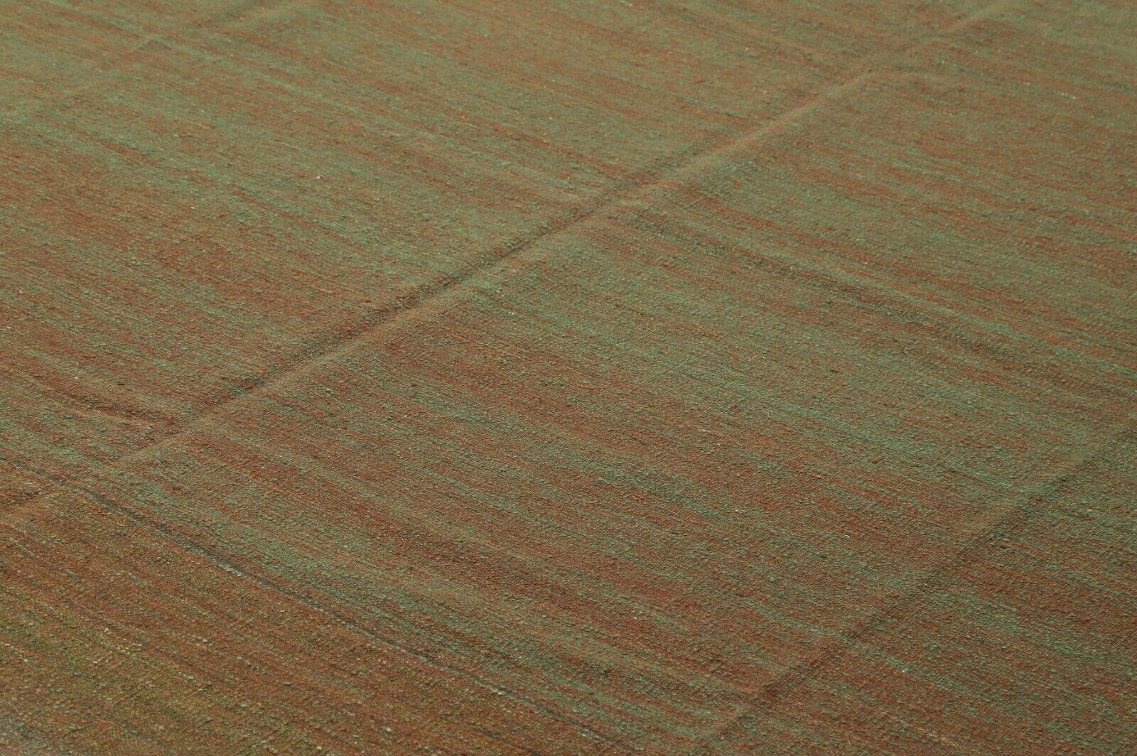 Handgewebter Kelim | Größe: 381 x 295 cm | Material: Wolle | Muster: Einfarbig in Grün | Zustand: Neu mit Etikett | Besonderheiten: Abriebfest, antirutsch, für Fußbodenheizung geeignet | Stil: Modern | Herkunft: Unbekannt | Florhöhe: Kurz | Geeignet für alle Zimmer