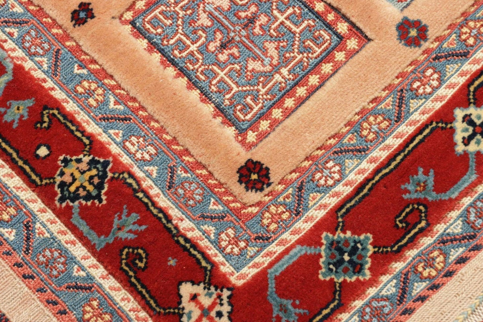 Die handgeknüpfte Technik bedeutet, dass jeder Teppich mit großem Geschick und Liebe zum Detail hergestellt wurde. Im Gegensatz zu maschinell hergestellten Teppichen garantiert diese Methode ein einzigartiges Produkt, das mit jedem Knotensatz an Qualität und Charakter gewinnt. Die hohe Knotendichte sorgt dafür, dass das florale Muster intensiv zur Geltung kommt und die Farben lebendig bleiben, während der Teppich eine herausragende Strapazierfähigkeit aufweist.