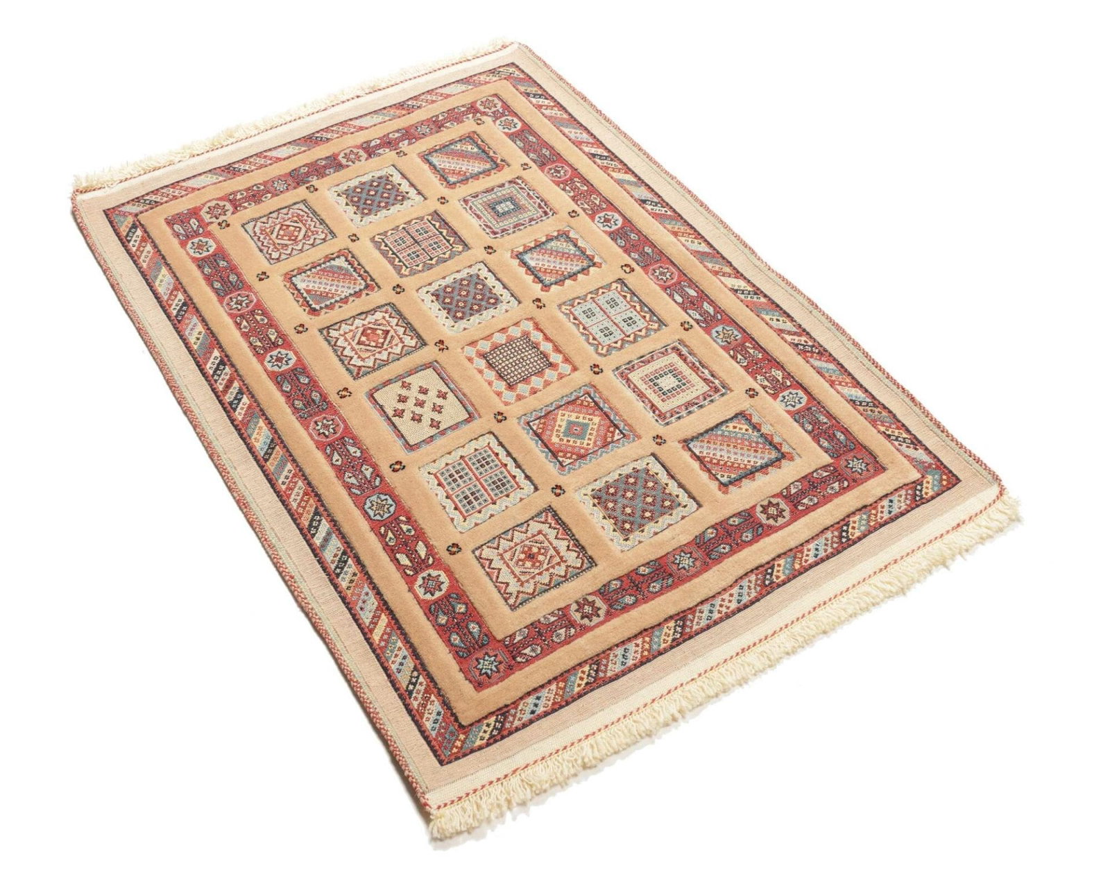 1001$Ursprünglicher Preis war: 1001$797$Aktueller Preis ist: 797$Handgeknüpfter persischer Teppich | Knotendichte: ca. 200.000 Knoten/m² | Material: 100% Schurwolle im Flor, 100% Baumwolle in der Kette | Größe: 88 x 118 cm | Herkunft: Iran | Höhe: ca. 7-10 mm | Aufwändiges florales und geometrisches Muster