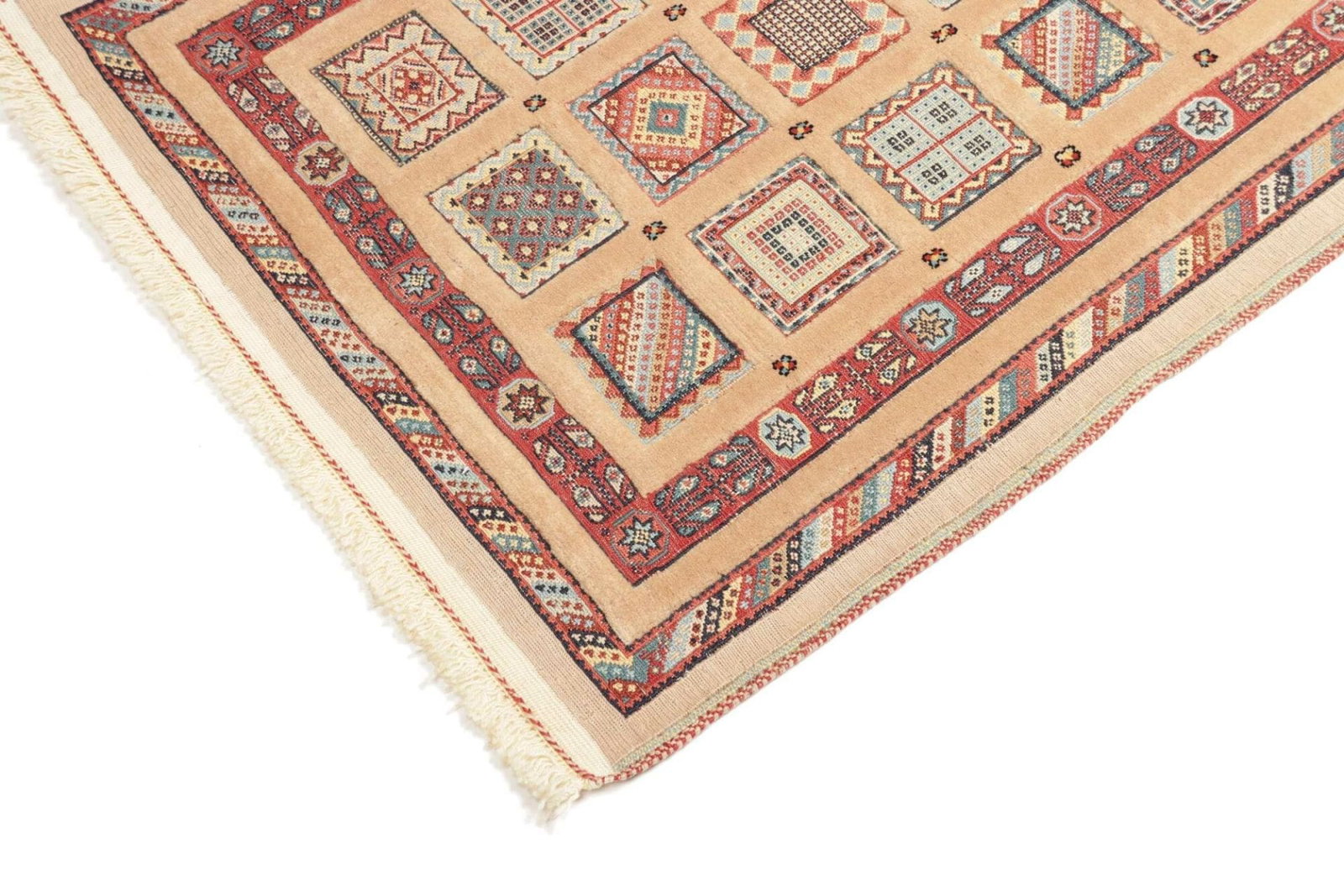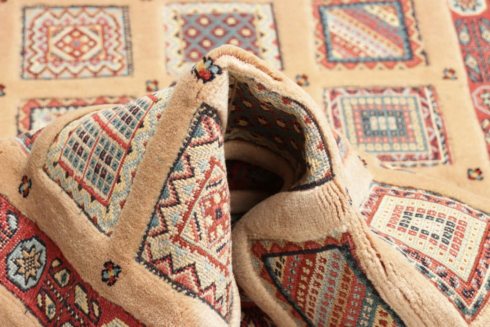 Der Perserteppich ist aus feinstem Schafswolle gefertigt, welches nicht nur für seine weiche Haptik, sondern auch für seine Langlebigkeit bekannt ist. Wolle hat die Eigenschaft, sowohl Wärme zu speichern als auch Feuchtigkeit zu regulieren, was diesen Teppich zu einer idealen Wahl für jedes Zuhause macht. Die handgeknüpfte Technik sorgt für eine hohe Knotendichte, die in Kombination mit hochwertigen Materialien zu einer beeindruckenden Strapazierfähigkeit führt. Dadurch bleibt der Teppich selbst bei intensiver Nutzung in einem hervorragenden Zustand.
