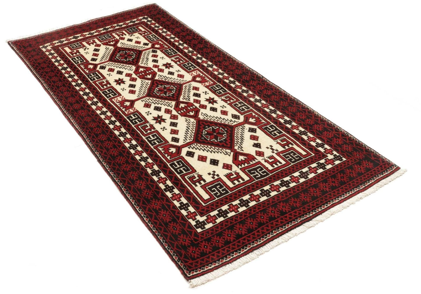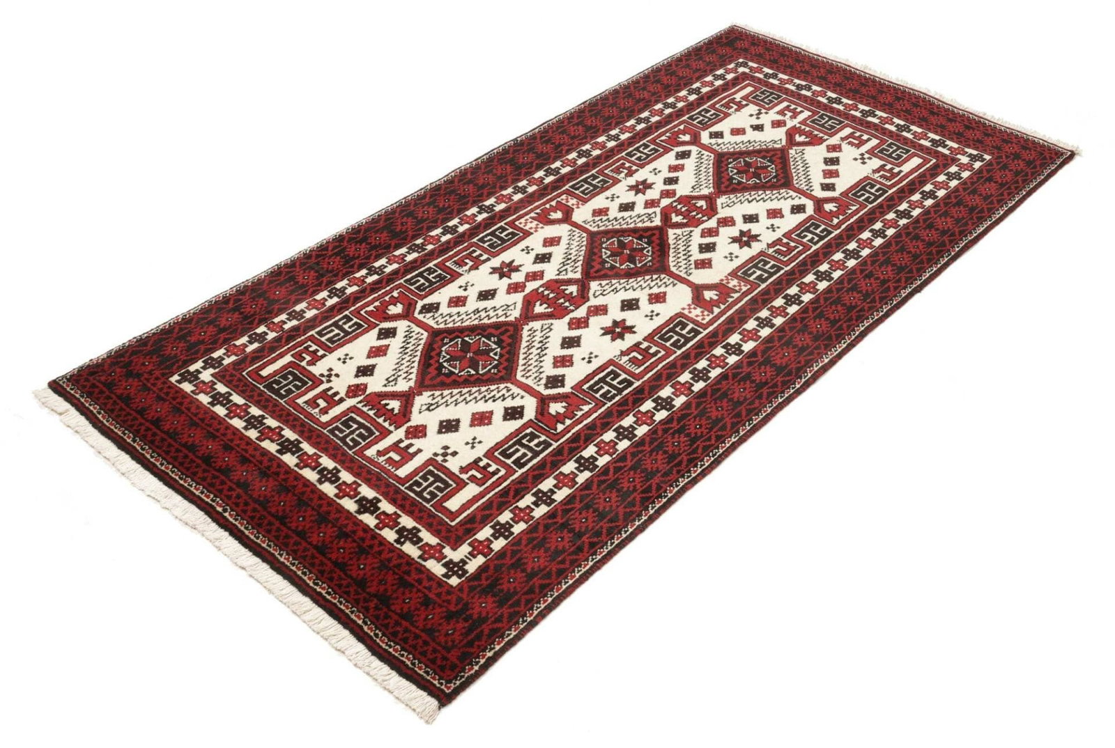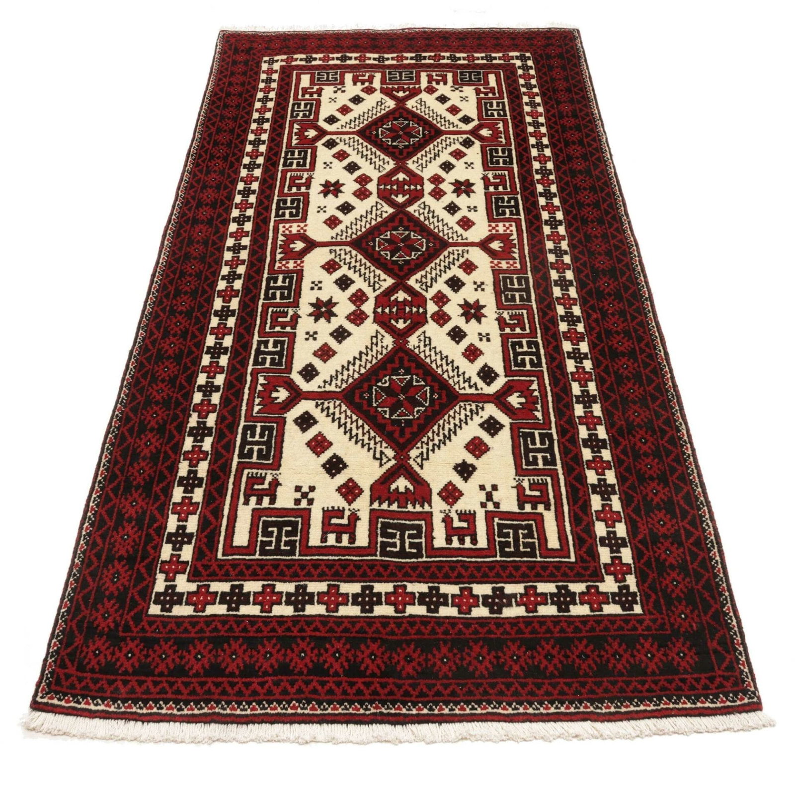 Perserteppich 98 x 197cm, florales Muster, handgeknüpft