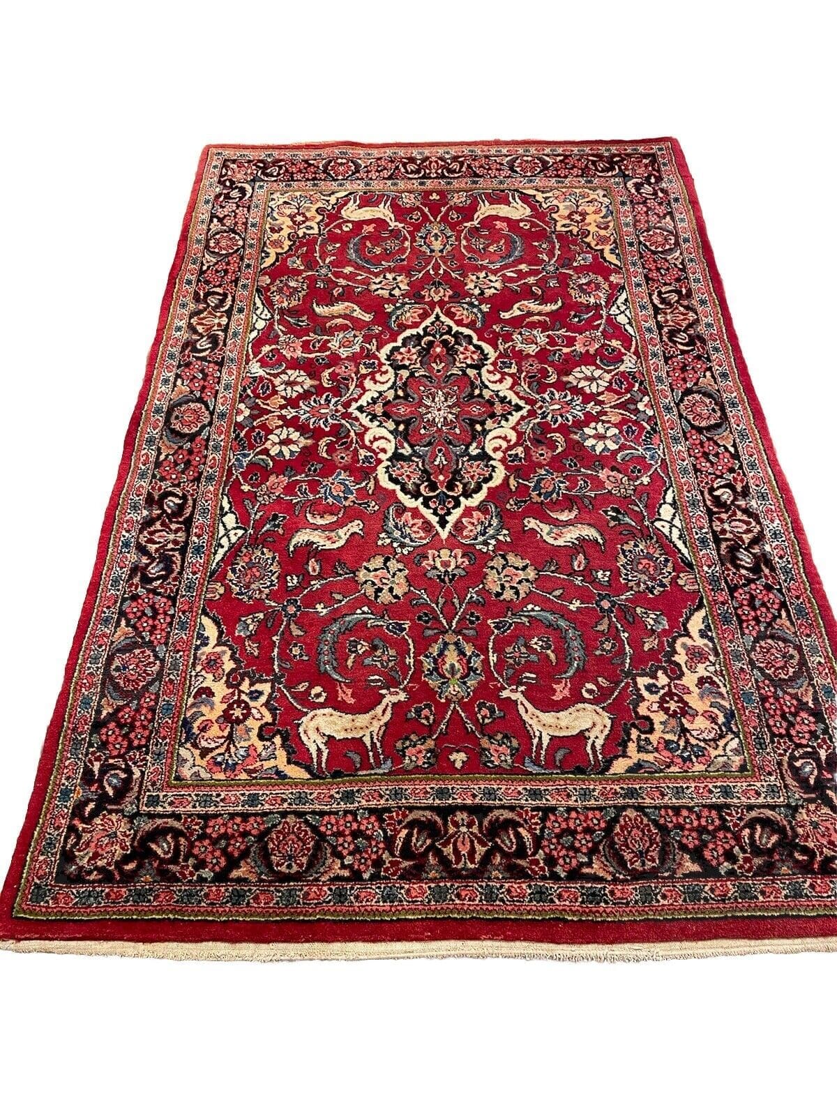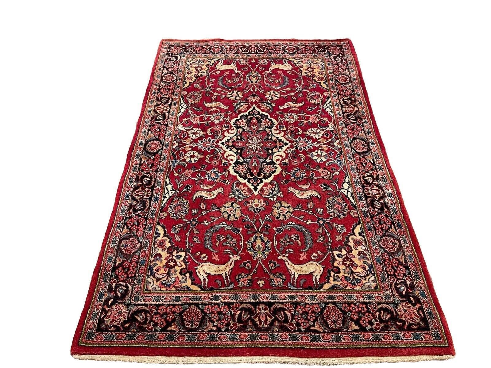 Perserteppich Antiker Sarough 200×120 cm – Seltenes Design mit schönem Medallion und schmaler Rosenbordüre, traditionelles Nomaden-Design, Florhöhe 5-9mm, handgeknüpft