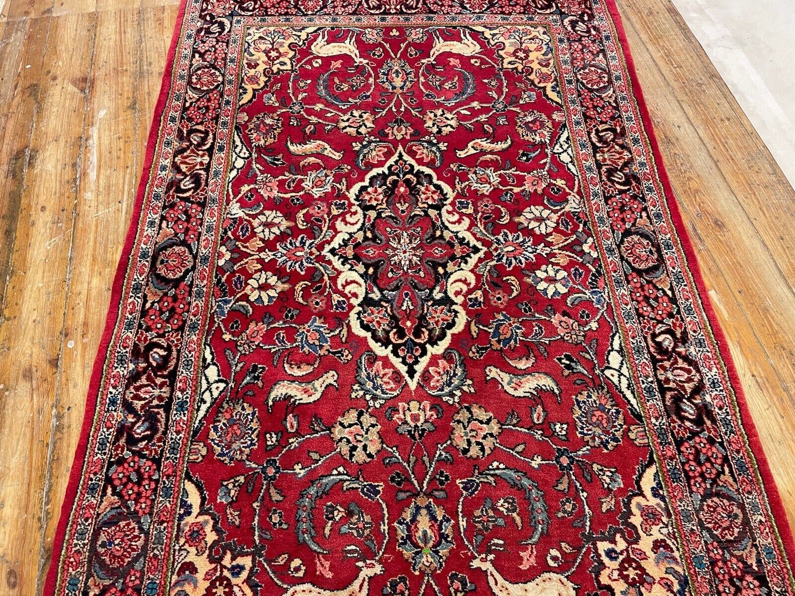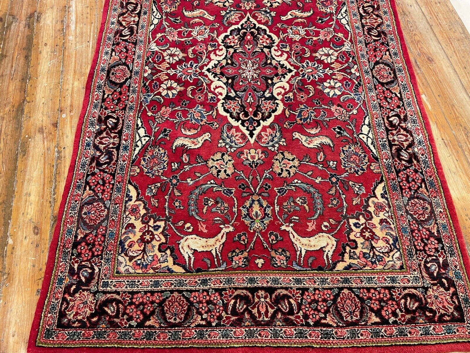 Antiker Perserteppich Sarough | Größe: 210×120 cm | Knotendichte: Hochwertige Handknüpfung | Material: Wolle | Florhöhe: 6 mm | Zustand: Gebraucht, in sehr gutem Zustand | Design: Rustikale Bordüre mit Medaillon-Muster | Geeignet für Fußbodenheizung | Epoche: 21. Jahrhundert | Stil: Traditionell Persisch/Orientalisch
