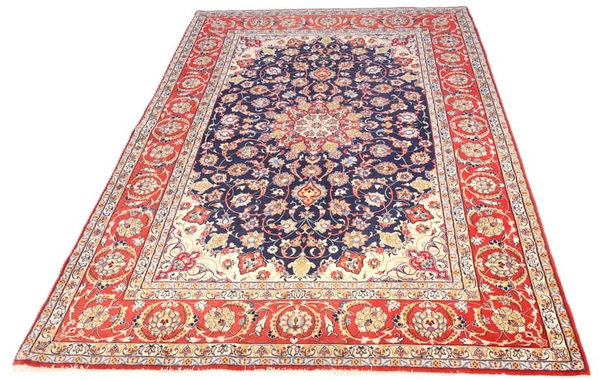 Der Teppich stammt aus Esfahan, einer der bekanntesten Provinzen im Iran, die für ihre traditionelle Teppichknüpfkunst berühmt ist. Esfahan hat eine reiche Geschichte und war während der Safawiden-Dynastie ein Zentrum für Kunst und Kultur, was sich auch in der Teppichproduktion widerspiegelt. Die Region ist bekannt für ihre aufwendigen Designs und feinen Materialien. Die Teppiche aus Esfahan sind oft mit komplexen Mustern und lebendigen Farben gestaltet, die ihre Herkunft und kulturellen Einflüsse widerspiegeln. Diese Tradition wird bis heute fortgeführt, und viele Meisterknüpfer sind in der Lage, sowohl klassische als auch moderne Designs zu kreieren.