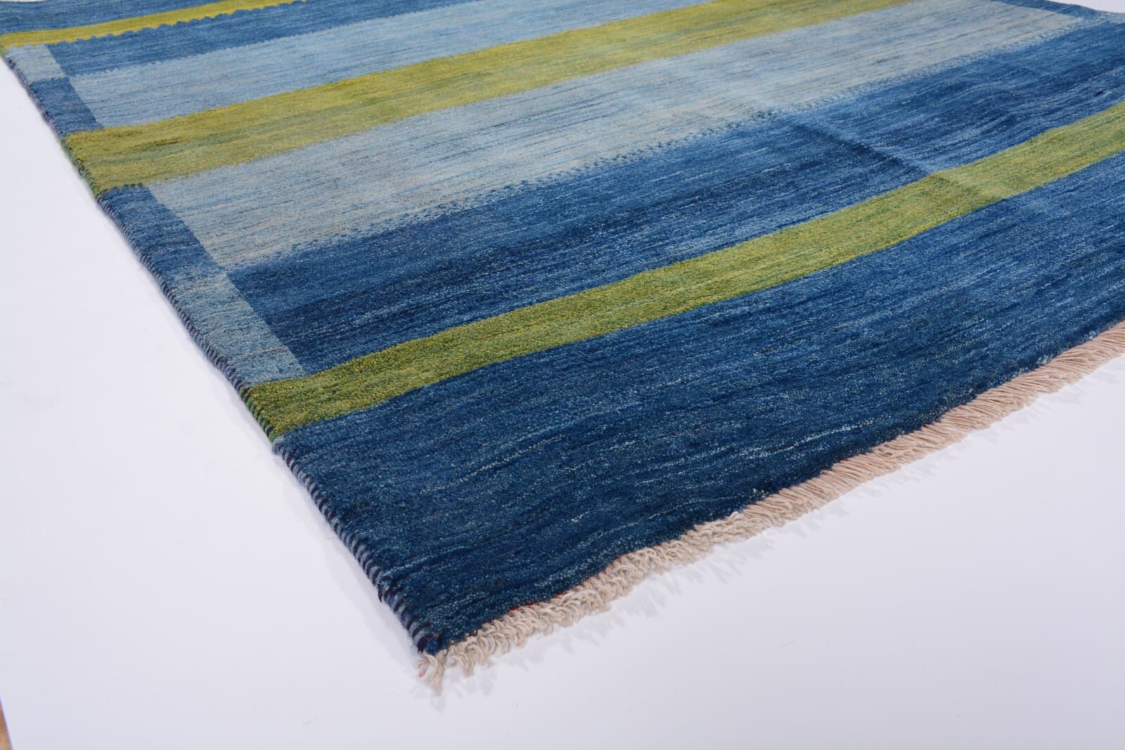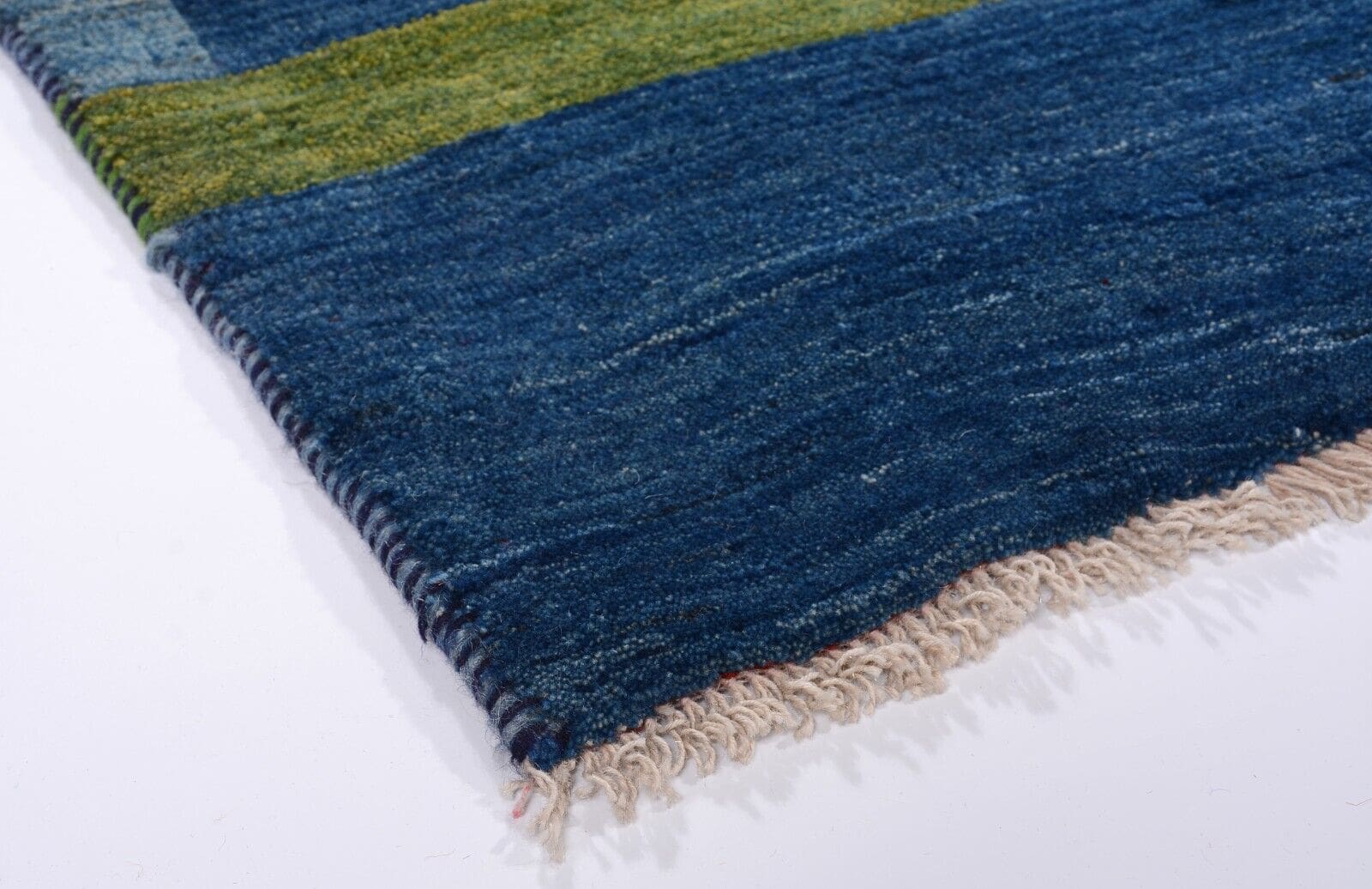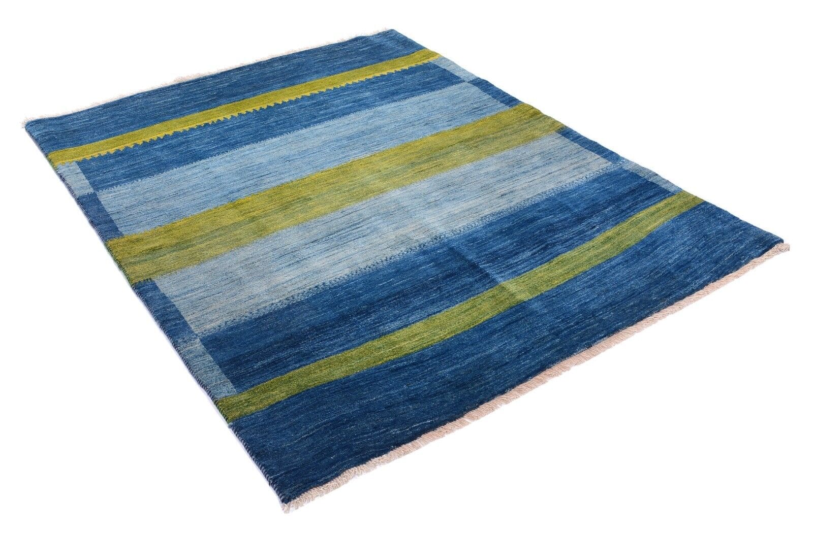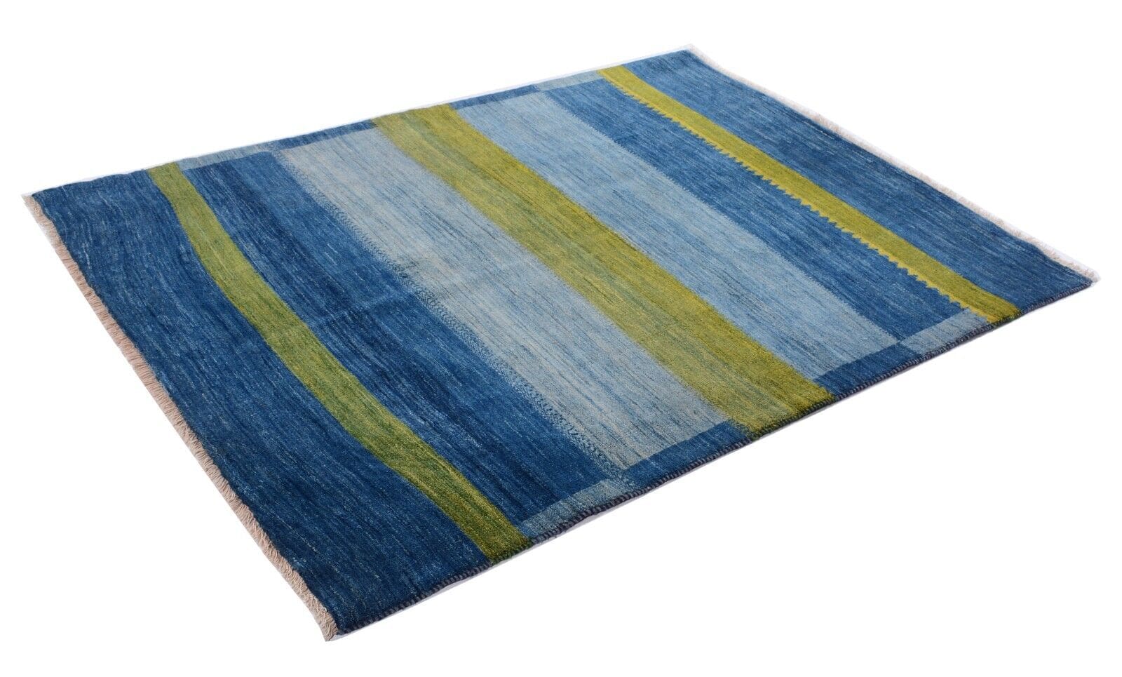Handgeknüpfter Perserteppich Gabbeh | Größe: 197 x 150 cm | Knotendichte: 300.000 Knoten/m² | Material: 100% Schurwolle, handgesponnen und handgefärbt | Zustand: Neu, perfekt | Dicke: ca. 12 mm | Herkunft: Persien | Stil: Modern | Muster: Gestreift | Für Fußbodenheizung geeignet | Gewicht: ca. 4 kg/m²