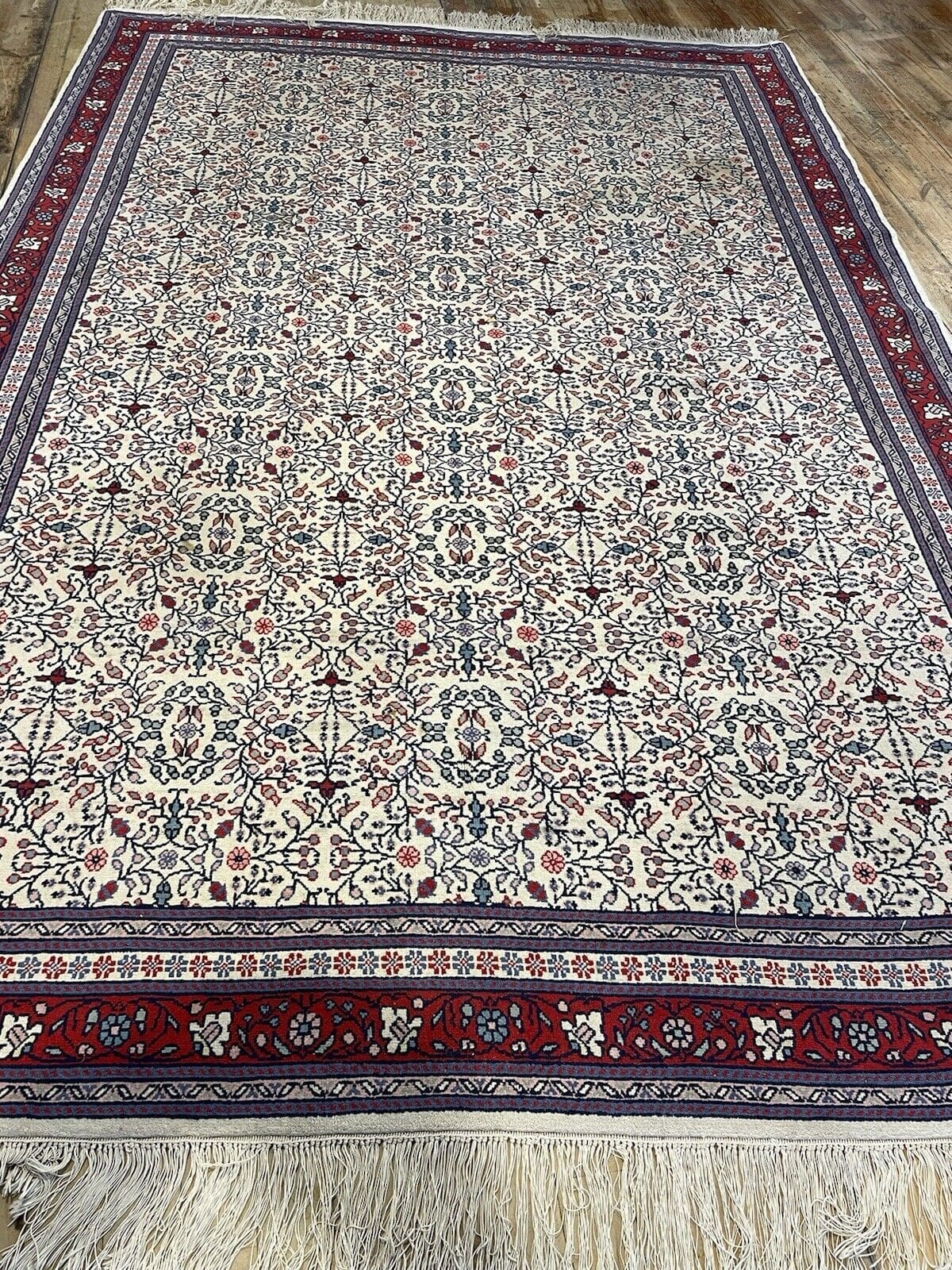 Darüber hinaus ist der Teppich in einem ausgezeichneten Zustand, was ihn zu einer interessanten Investmentoption macht. Ein solch hochwertiger Teppich kann von Generation zu Generation weitergegeben werden und bewahrt dabei seinen Wert.