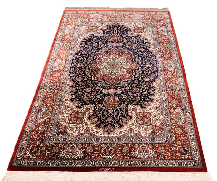 Handgeknüpfter Ghom Orientteppich | Knotendichte: ca. 925.000 / m² | Material: Seide | Größe: 154 x 102 cm | Herkunft: Iran | Zustand: Neu | Farbe: Rot/Orange