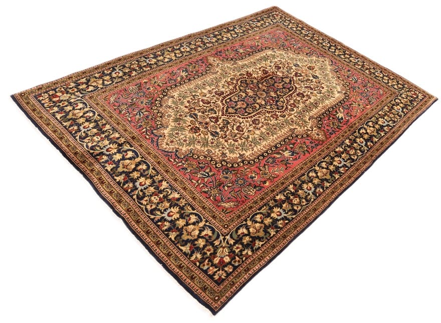 Der Ghom Kork Teppich stammt aus der Region Ghom im Iran, die für ihre lange Tradition der Teppichknüpfkunst bekannt ist. Ghom, auch Qom genannt, ist eine der bedeutendsten Teppichproduktionsstätten im Iran und hat sich einen Ruf für die Herstellung von exquisiten, handgeknüpften Teppichen erarbeitet. Die Region ist reich an kulturellen Einflüssen und historischen Traditionen, die sich in den Designs und Mustern der Teppiche widerspiegeln. Typische Merkmale der Ghom Teppiche sind ihre feine Verarbeitung und die Verwendung hochwertiger Materialien, die durch ihre Langlebigkeit und Pflegeleichtigkeit überzeugen. Die Teppiche aus dieser Region sind oft mit klassischen und eleganten Motiven gestaltet, die sowohl in traditionellen als auch in modernen Wohnräumen eine harmonische Ergänzung darstellen.