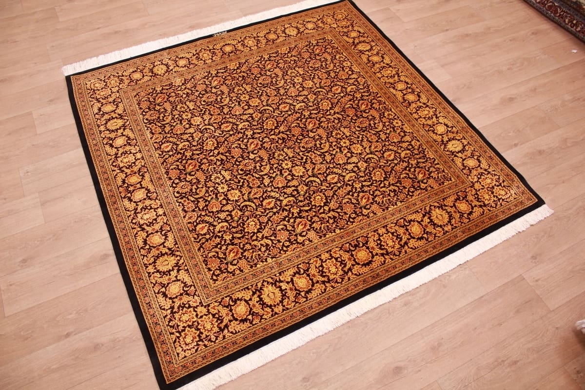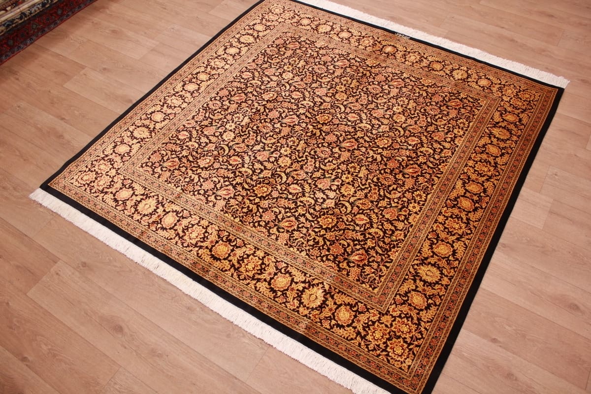 Perserteppich Ghom 202×201 cm Schwarz-Gold, Seidenteppich handgeknüpft