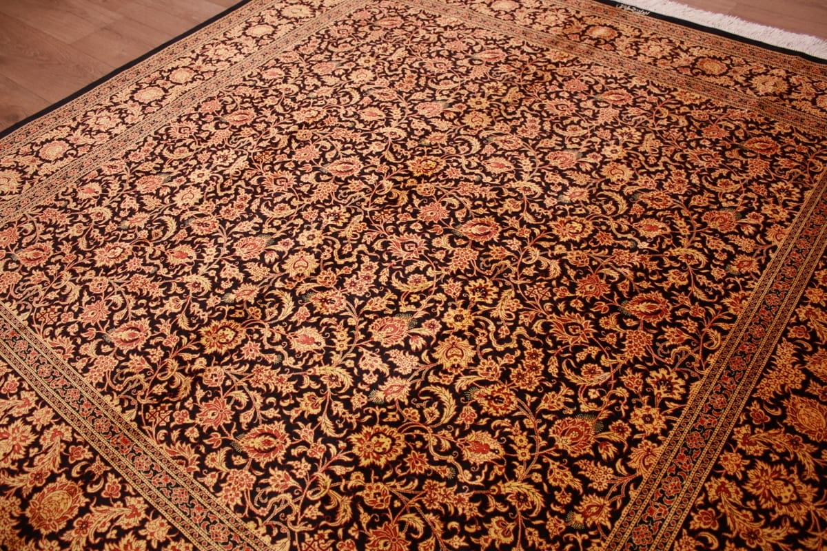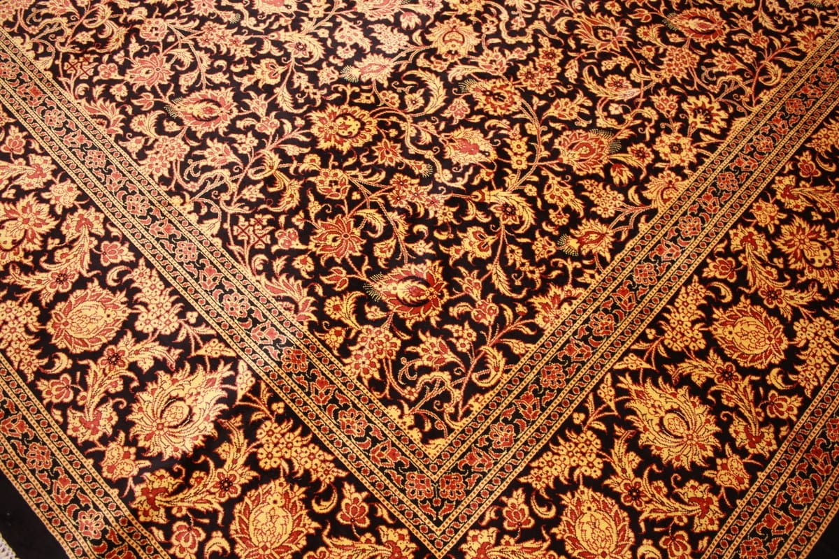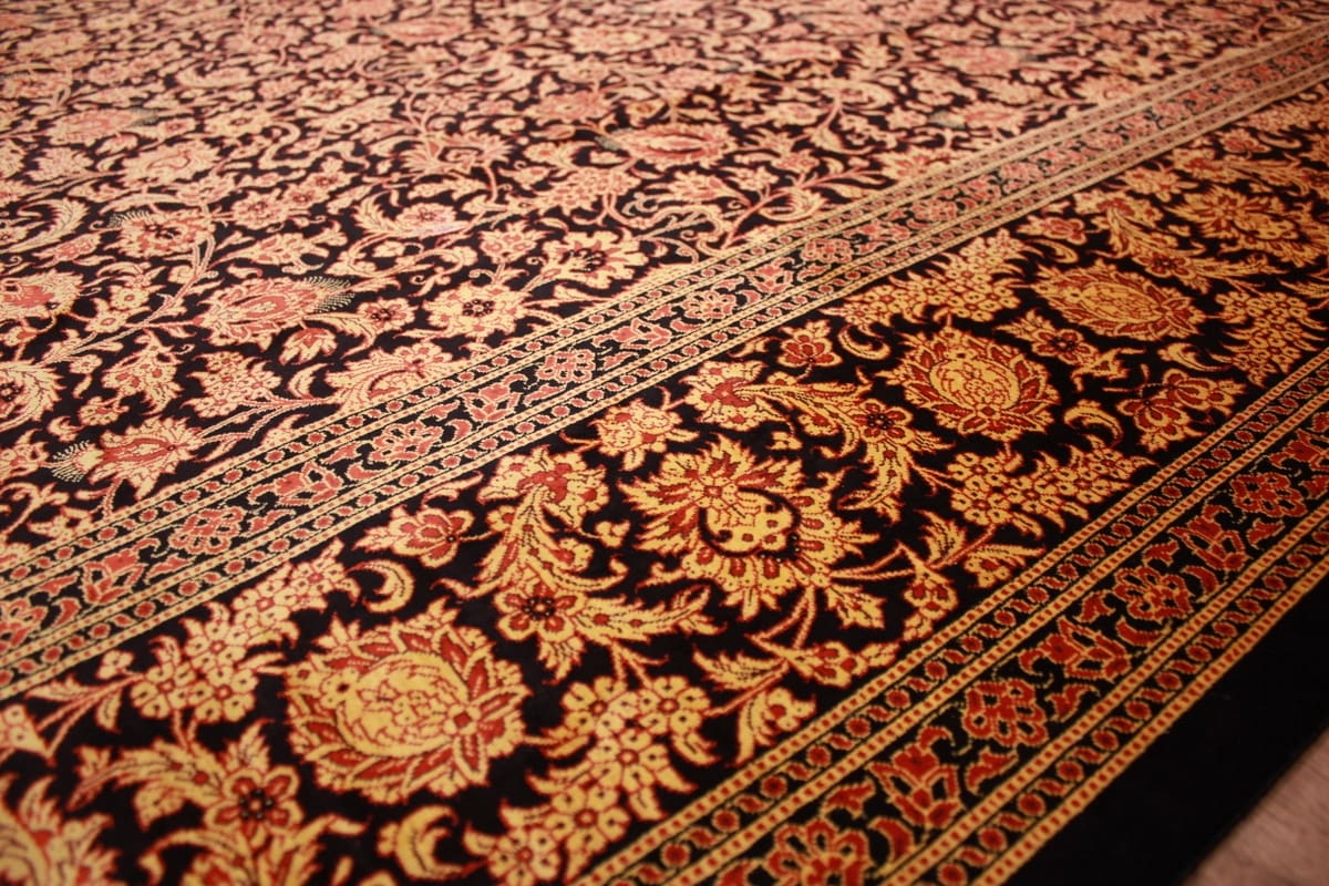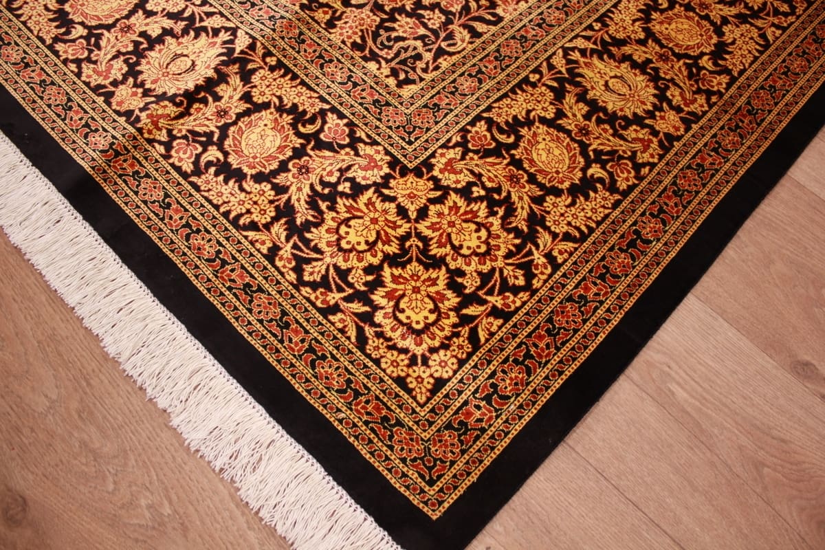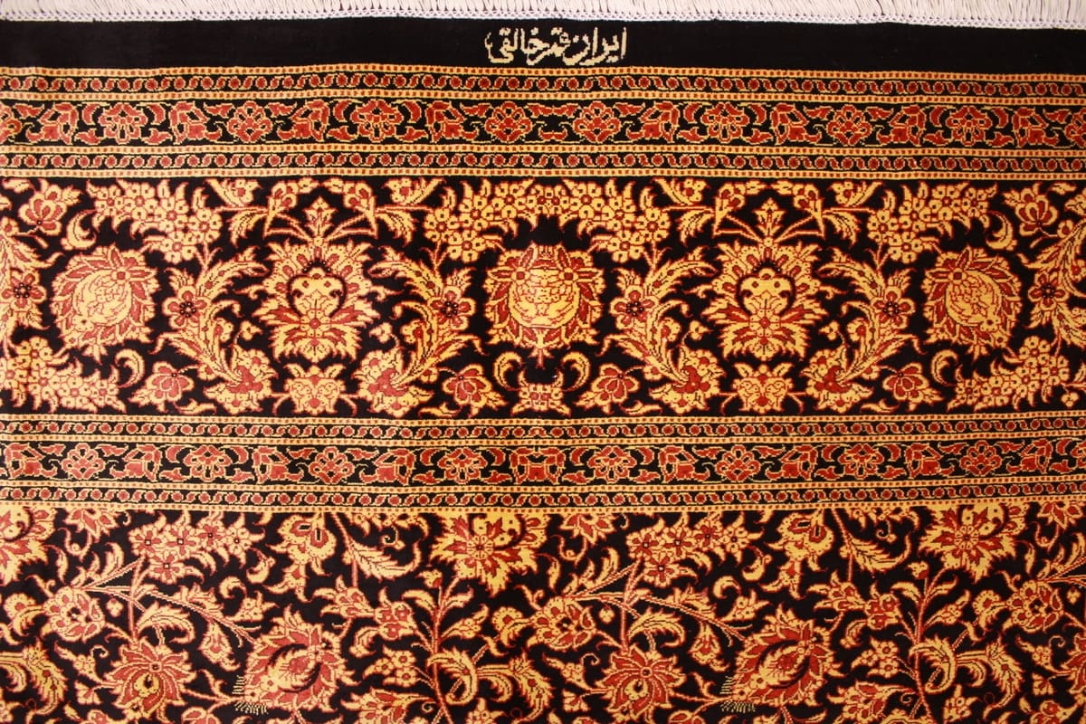 Perserteppich Ghom Schwarz-Gold, Seidenteppich handgeknüpft
