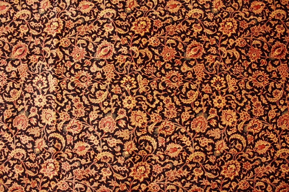 Die beeindruckenden Muster und das raffinierte Design des Ghom Teppichs sind Ausdruck von Ästhetik und Kunstfertigkeit. Mit einem eleganten Schwarz als Grundfarbe und goldenen Akzenten wird dieser Teppich zum Blickfang in jedem Raum. Die feinen, floralen Muster und geometrischen Formen, die traditionell in Ghom Teppichen vorkommen, sind perfekt kombiniert und reflektieren die Schönheit und Harmonie der persischen Kultur. Die Verwendung von Wärme und Kontrast verleiht dem Teppich eine unverwechselbare Ausstrahlung, die sowohl moderne als auch klassische Einrichtungsstile ergänzt.