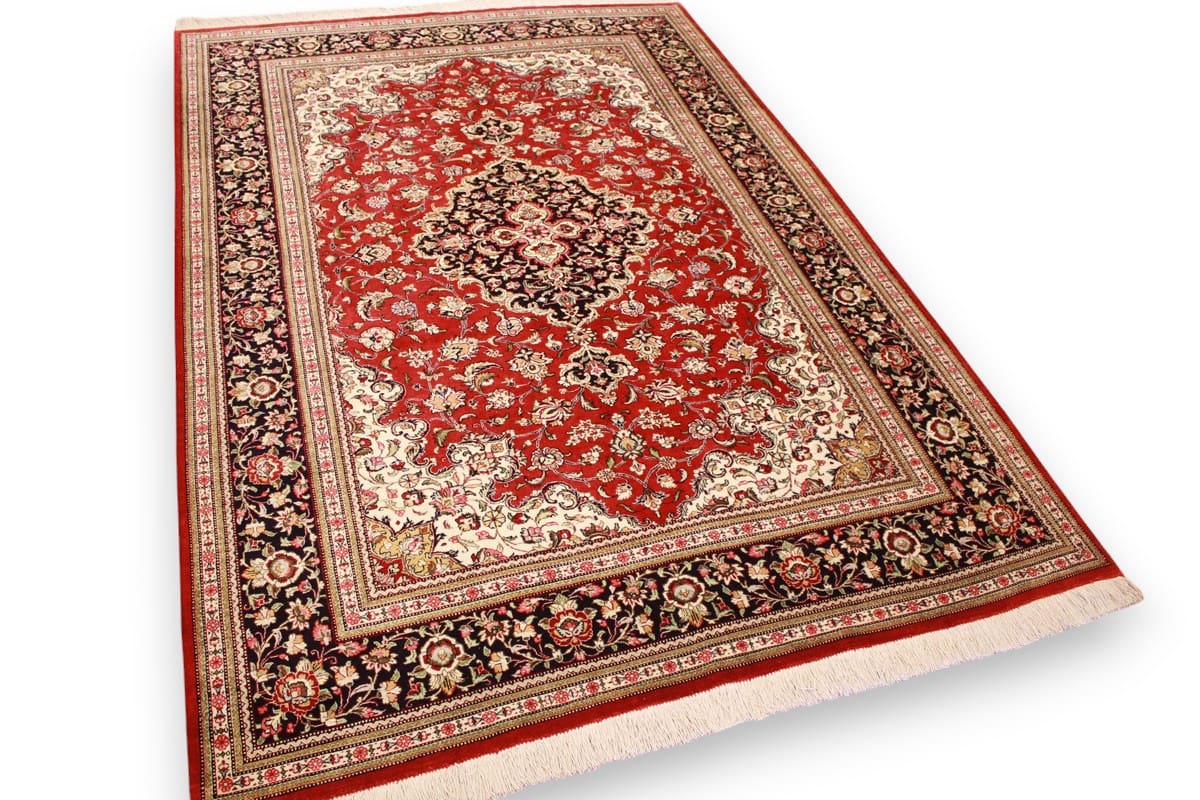 Perserteppich Ghom 203×141 cm Rot, Seidenteppich, handgeknüpft