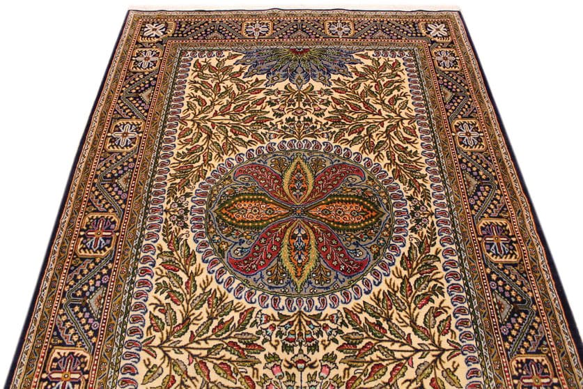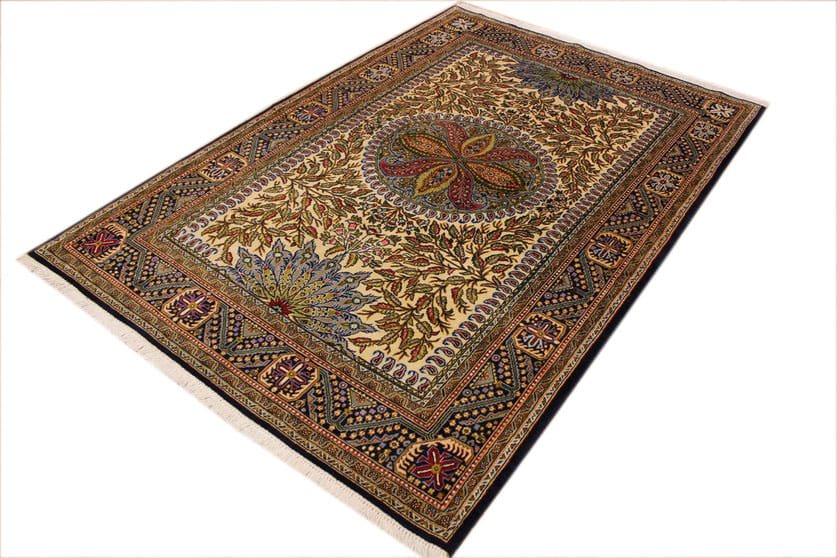 Perserteppich Ghom 207×136 cm, Seide, Naturfarben, handgeknüpft
