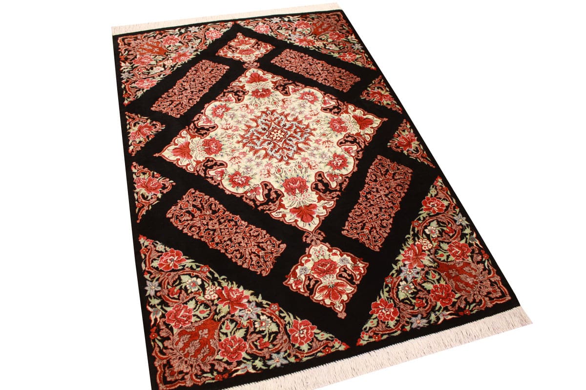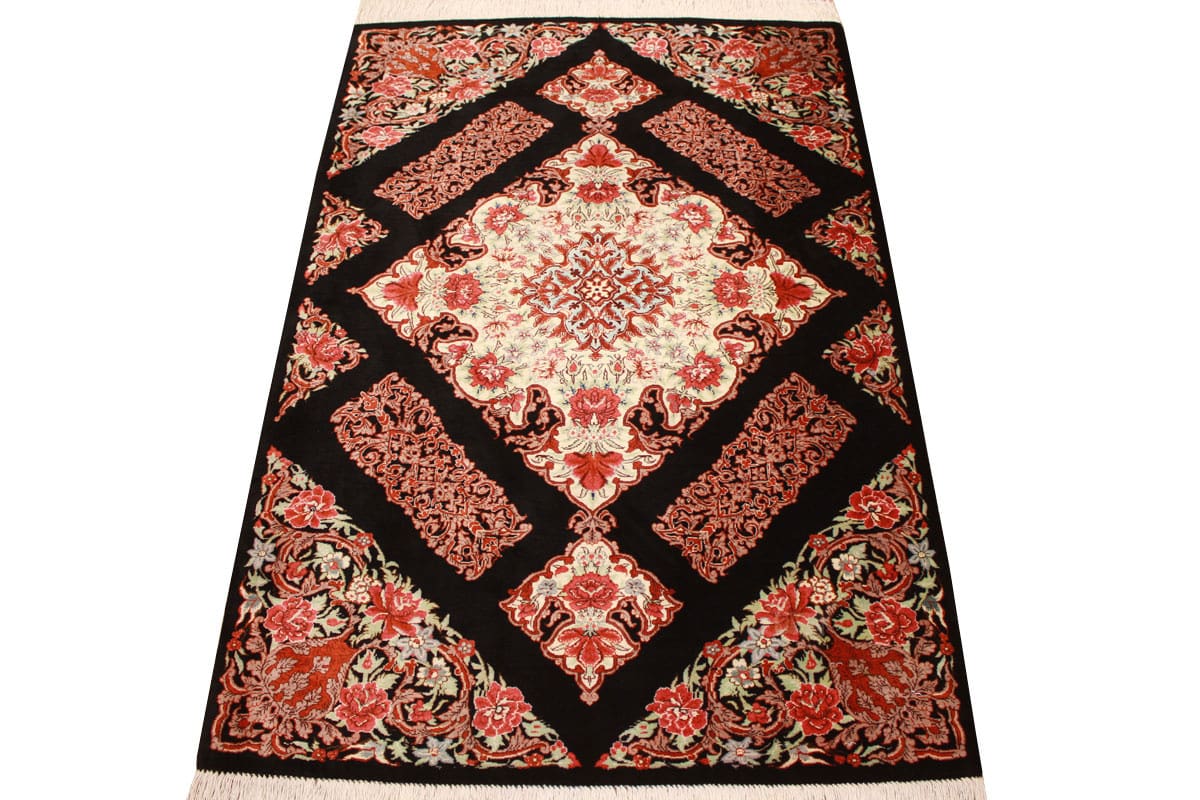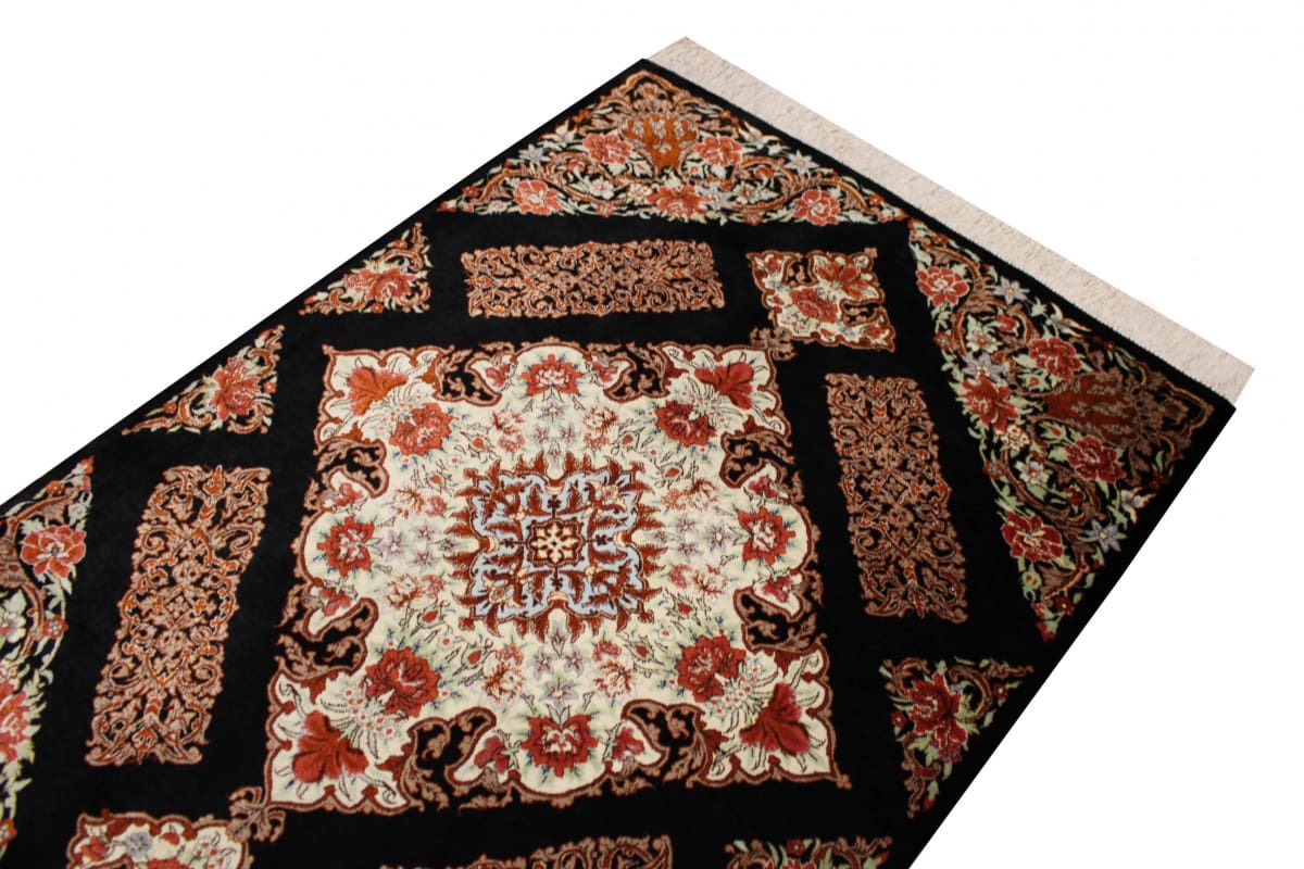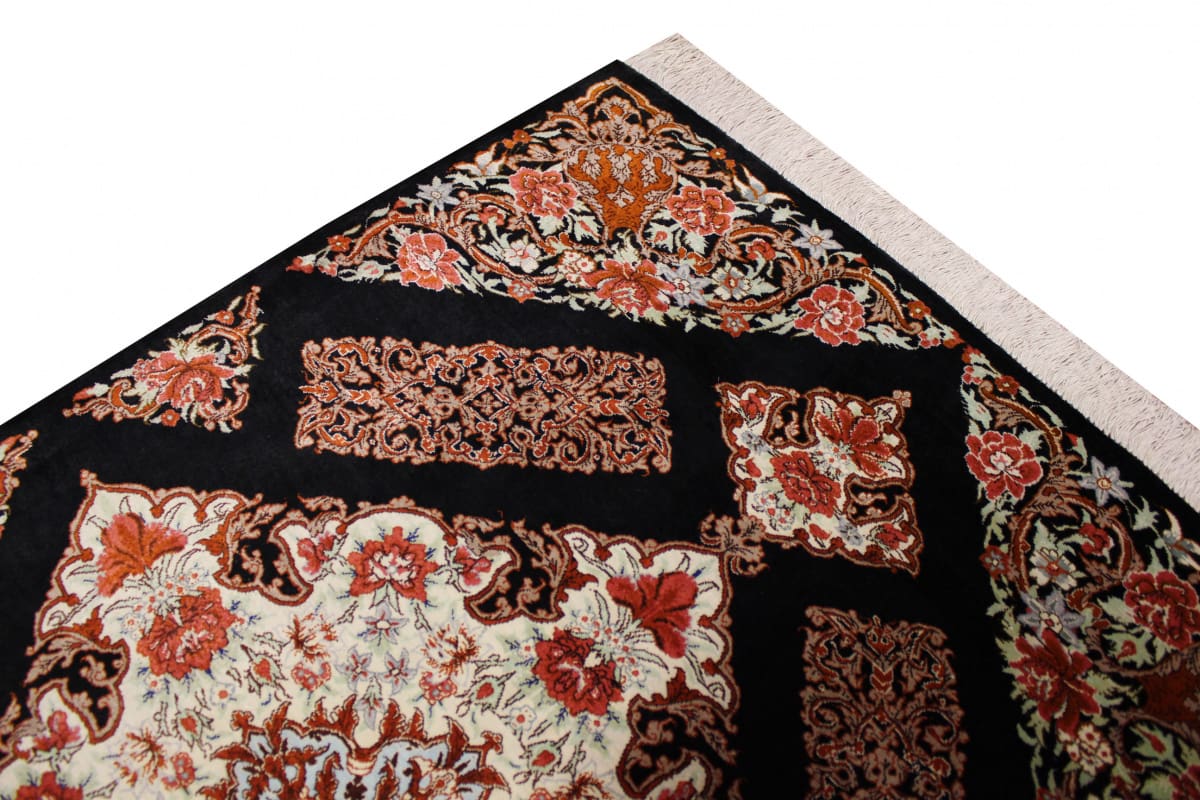 Perserteppich Ghom Seidenteppich 122×81 cm Schwarz, handgeknüpft