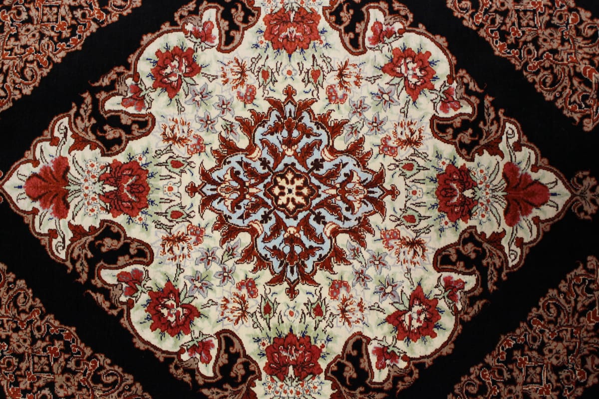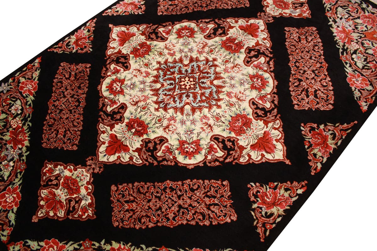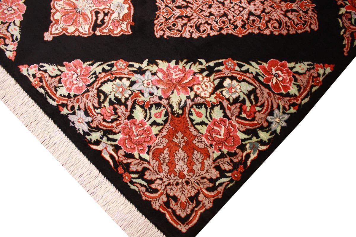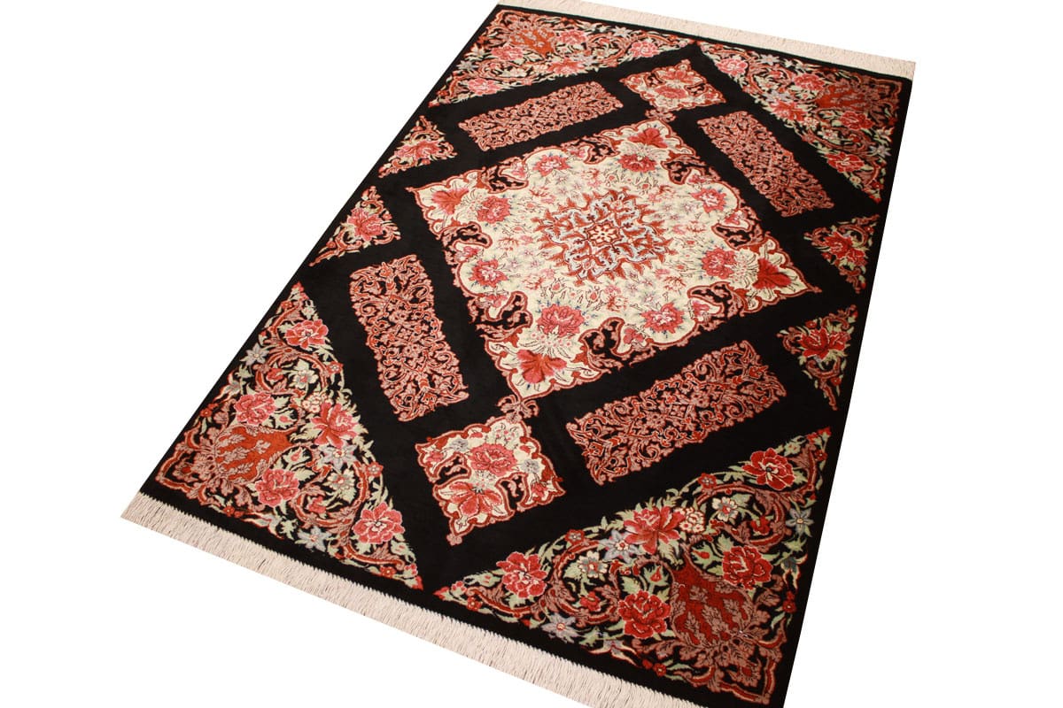 Perserteppich Ghom Seidenteppich 122×81 cm Schwarz, handgeknüpft