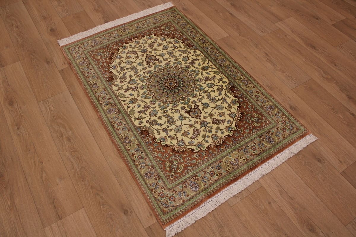 Handgeknüpfter Ghom Seidenteppich 82×59 cm – antik, elegant, Perserteppich