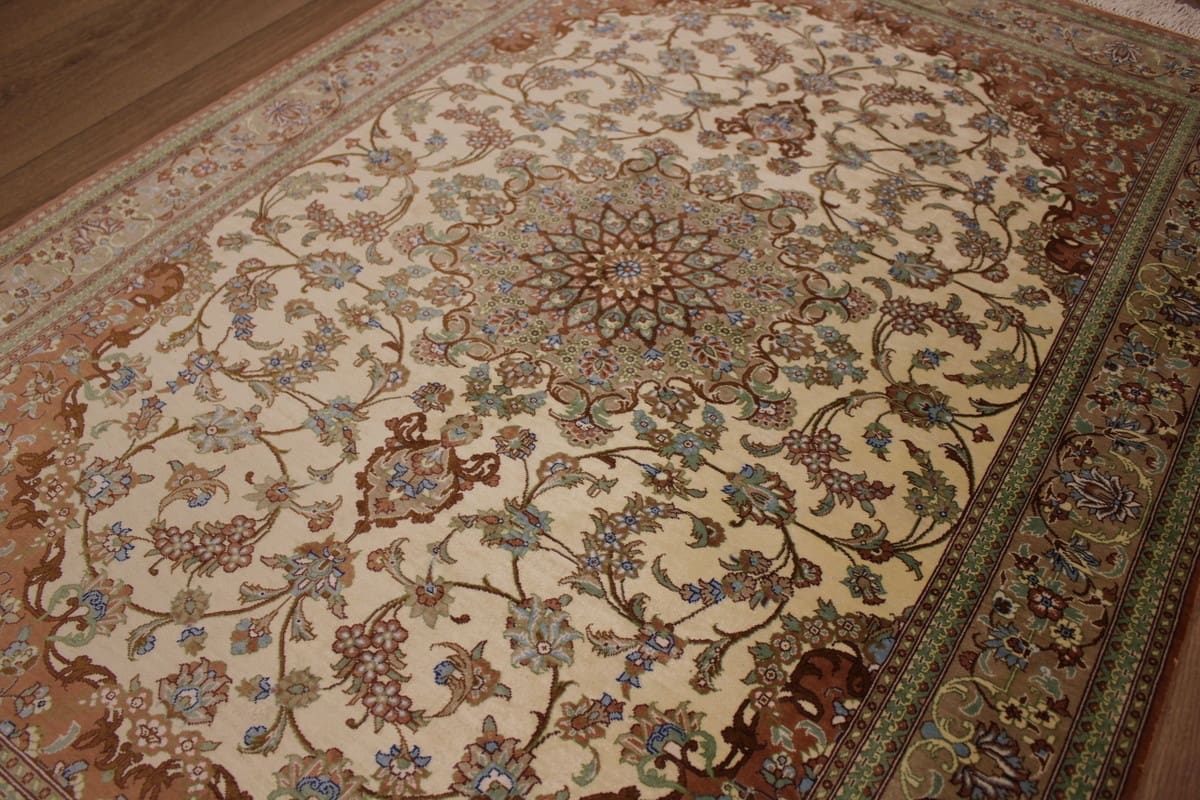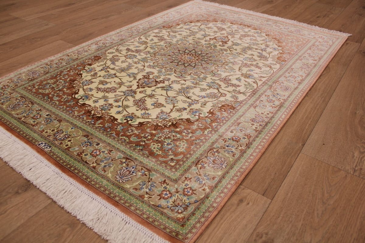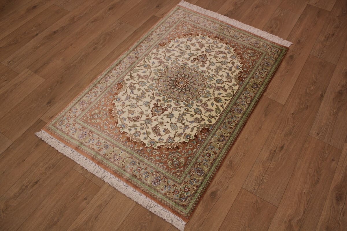 Perserteppich „Gom“ Seidenteppich 150×99 cm, Naturfarben, handgeknüpft