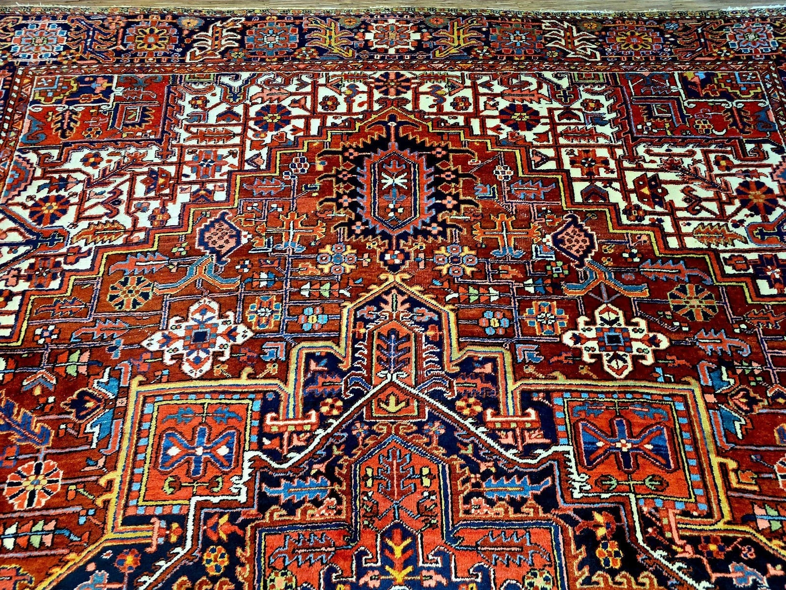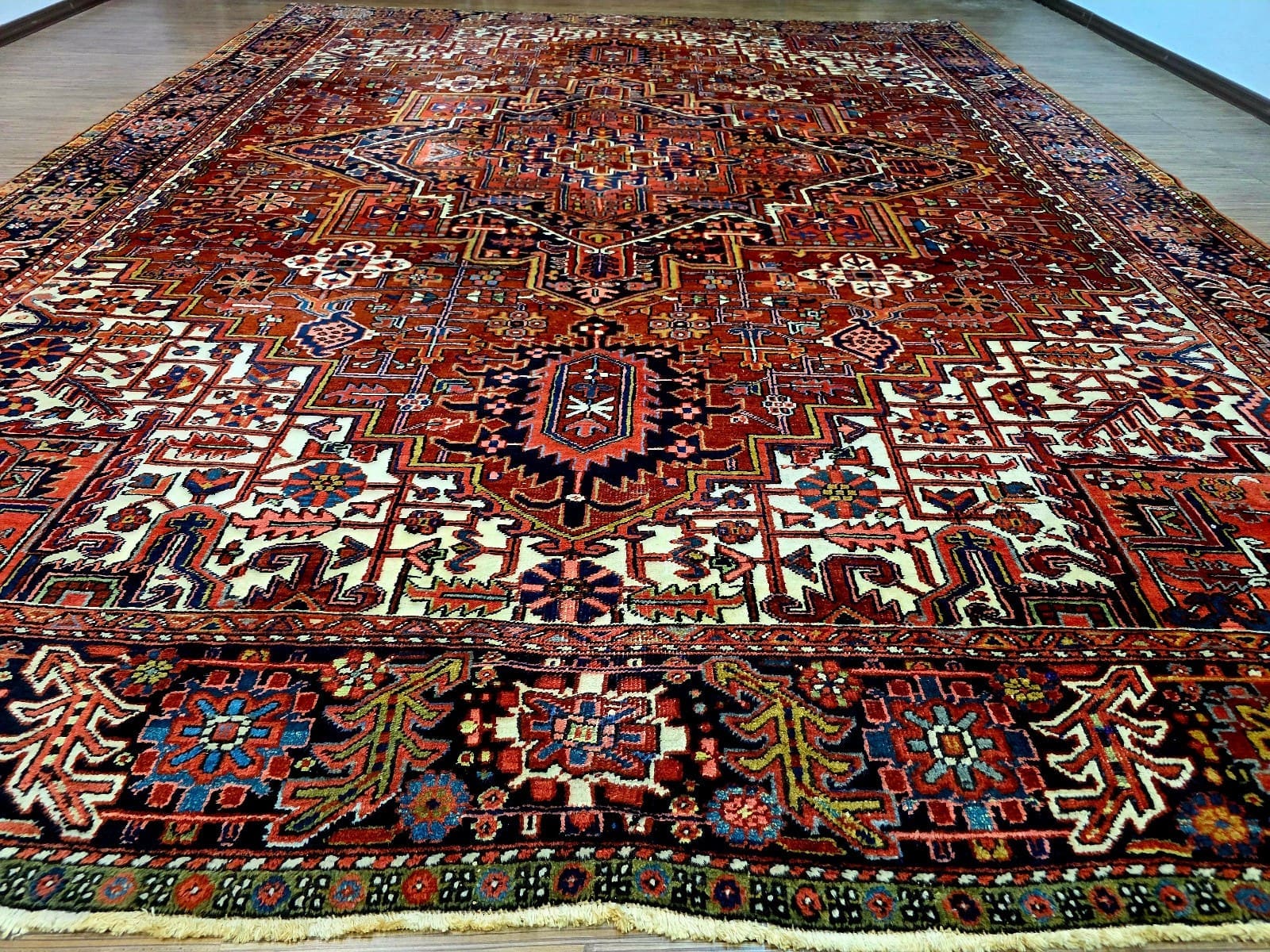 Perserteppich Heriz 398 x 305 cm Schurwolle handgeknüpft antik
