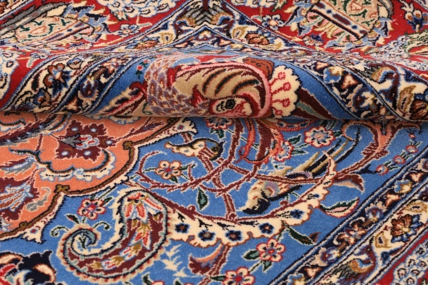 Die Knotendichte des Isfehan Teppichs liegt zwischen 450.000 und 500.000 Knoten pro Quadratmeter, was ihn zu einem der edelsten Teppiche seiner Art macht.