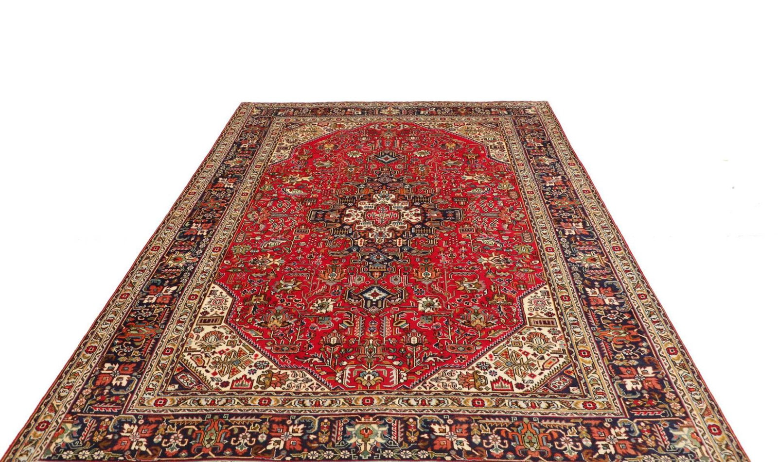 1434$Ursprünglicher Preis war: 1434$1136$Aktueller Preis ist: 1136$Perserteppich handgeknüpft Täbriz | Knotendichte: 200.000 Knoten/m² | Material: 100 % Schurwolle, 100 % Baumwolle | Größe: 206 x 296 cm | Herkunft: Iran | In sehr gutem Zustand | Exquisite Verarbeitung mit floralen und geometrischen Mustern, ideal für das Wohnzimmer