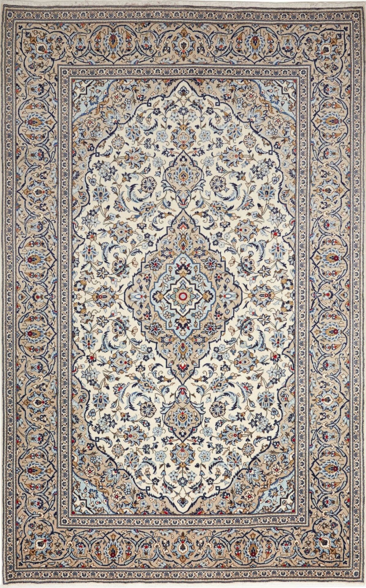 Kashan Teppiche stammen aus der renommierten Stadt Keshan im Herzen des Iran. Diese Teppiche sind bekannt für ihre strapazierfähigen Eigenschaften und ihre Langlebigkeit, die gewährleisten, dass sie über mehrere Jahrzehnte hinweg ihre Schönheit bewahren. Der Flor des Teppichs besteht zu 100% aus Schurwolle, die mit natürlichen Pflanzenfarben gefärbt wird. Schurwolle sorgt für eine weiche Haptik und trägt zur Schall- und Feuchtigkeitsregulierung in Innenräumen bei. Das Grundgewebe besteht aus 100% Baumwolle, was zusätzliche Stabilität und Widerstandsfähigkeit verleiht. Die Kette ist sorgsam verarbeitet und sorgt für die notwendige Festigkeit des Teppichs.