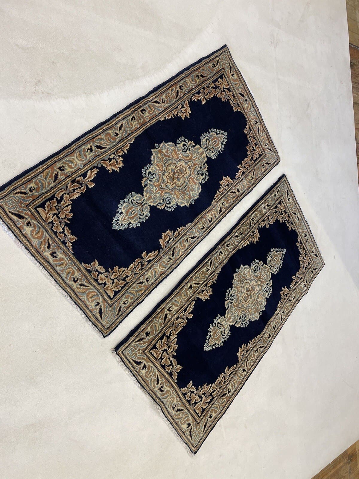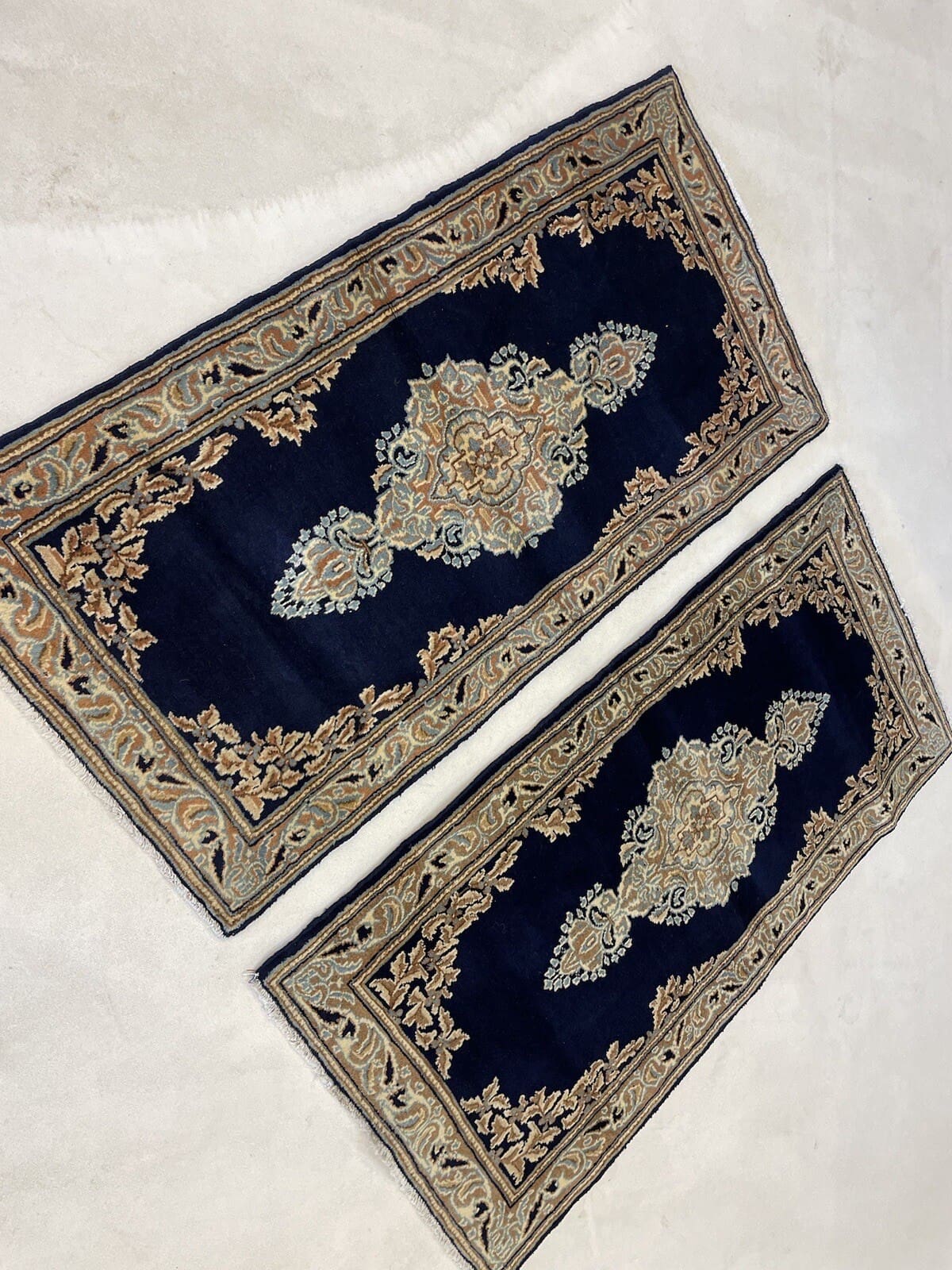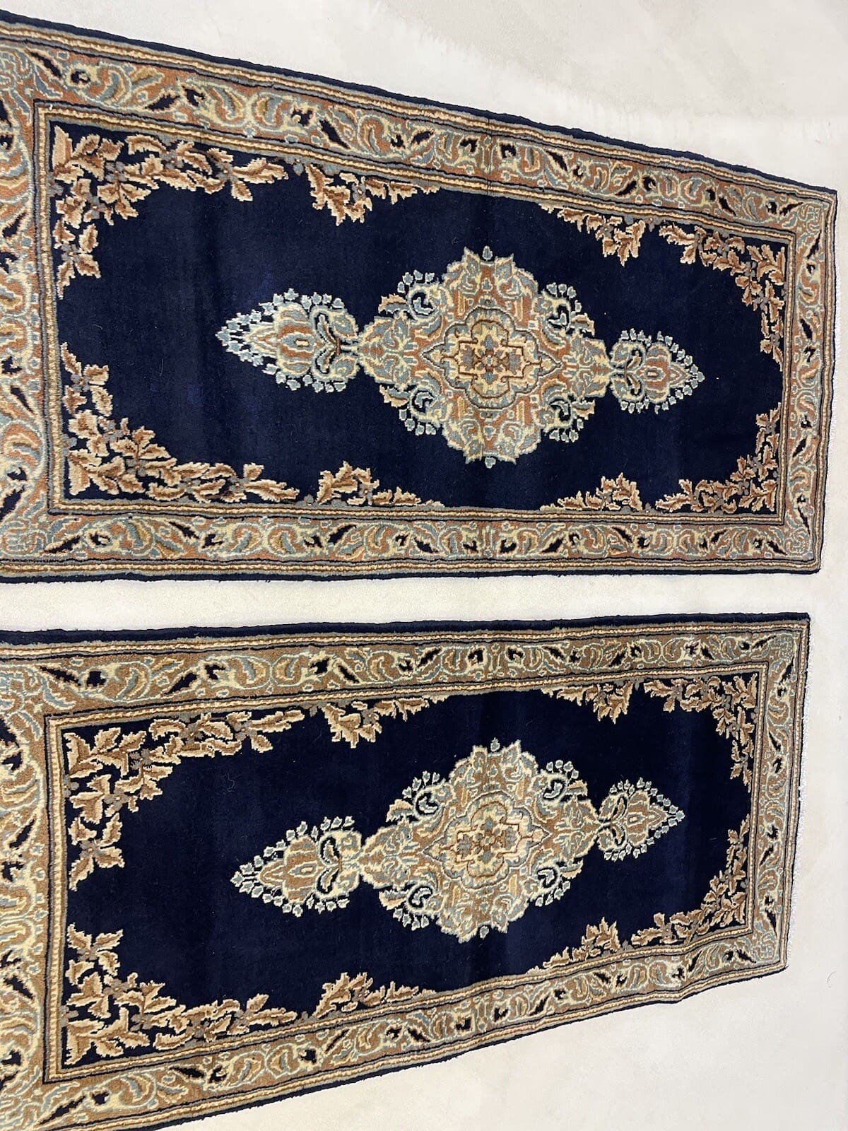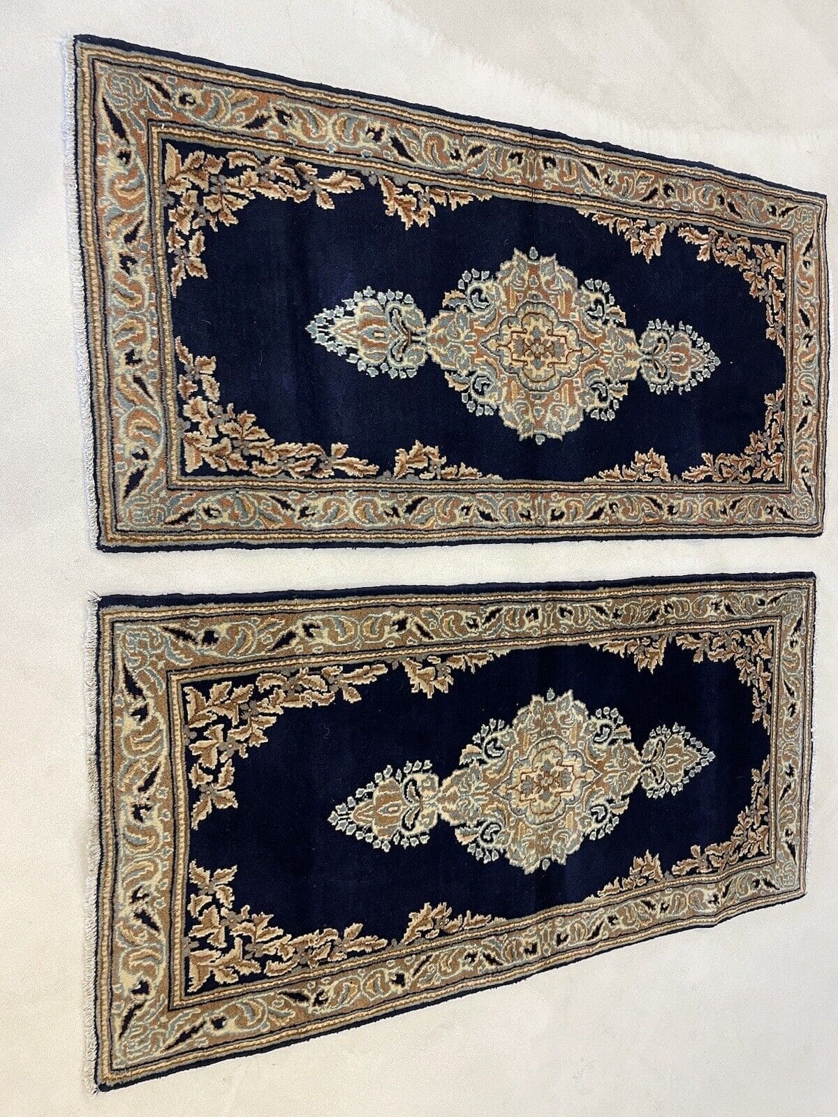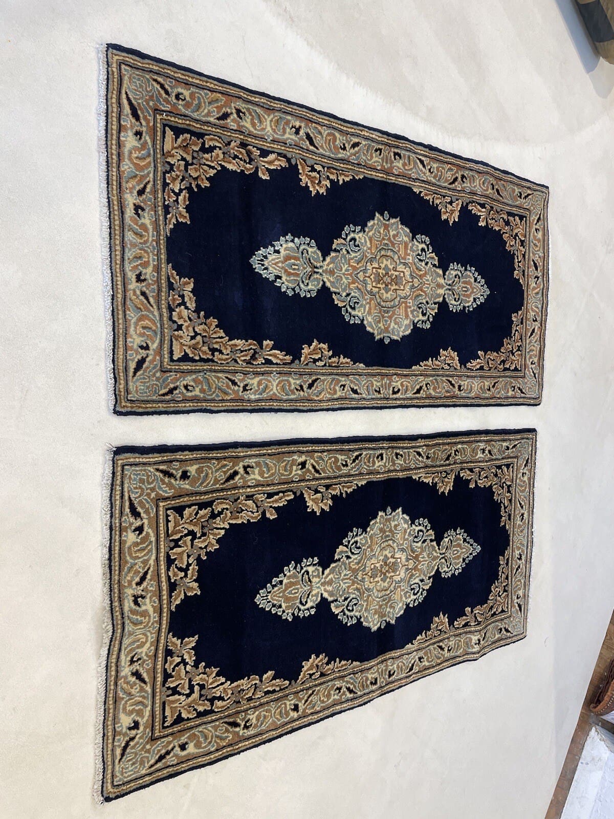 Perserteppich Kerman 132x64cm Blau, reine Schurwolle, handgeknüpft