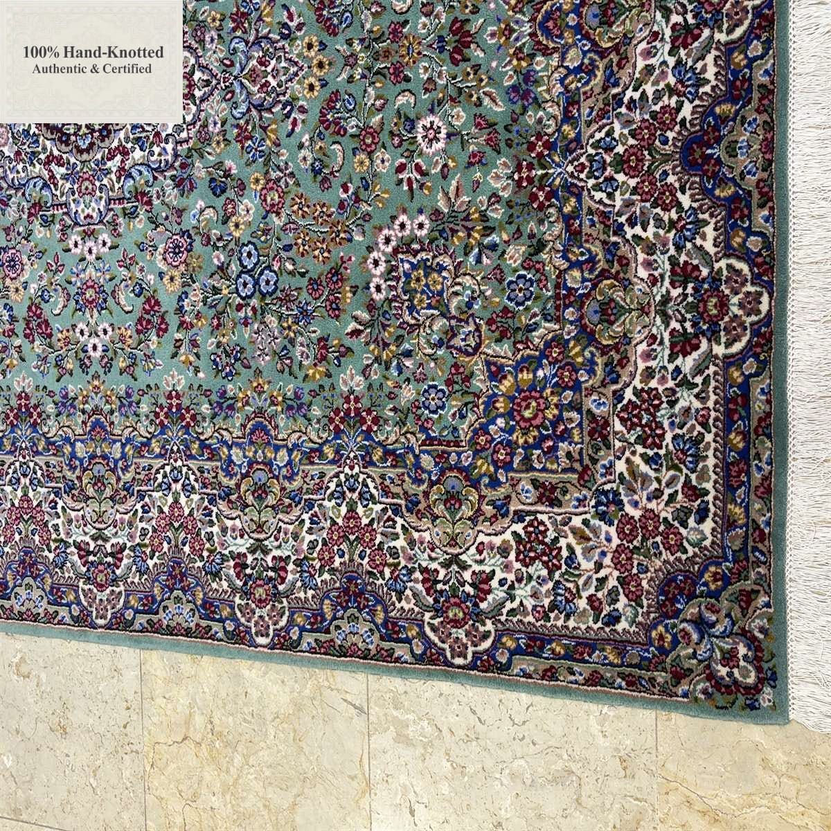 Handgeknüpfter Kerman Orientteppich | Knotendichte: 350.000 / m² | Material: Flor: Schurwolle | Größe: 307 x 202 cm | Herkunft: Kerman | Farbe: grün